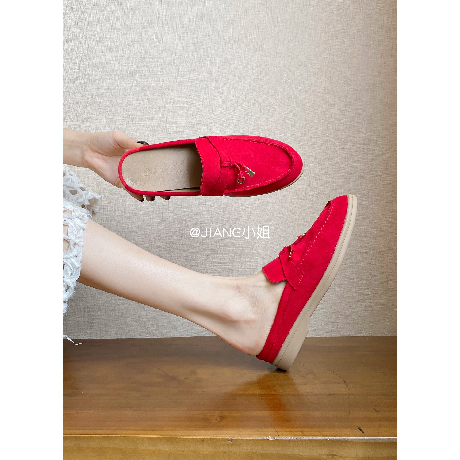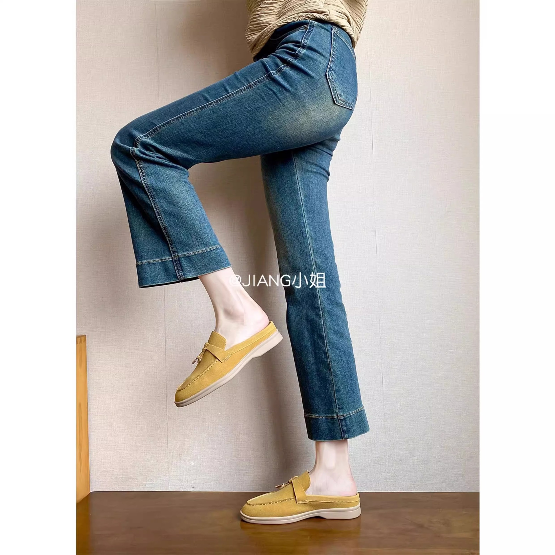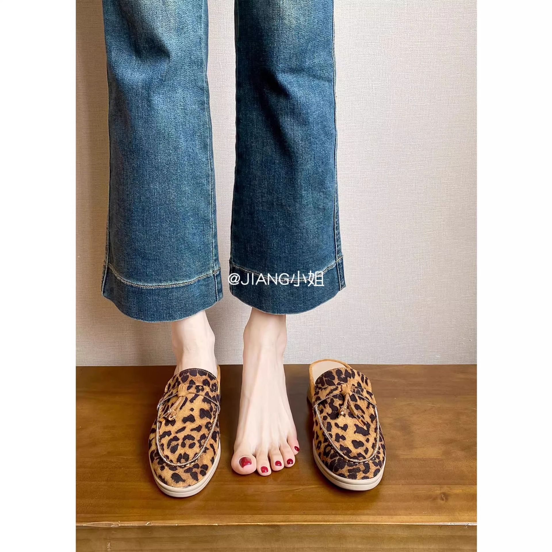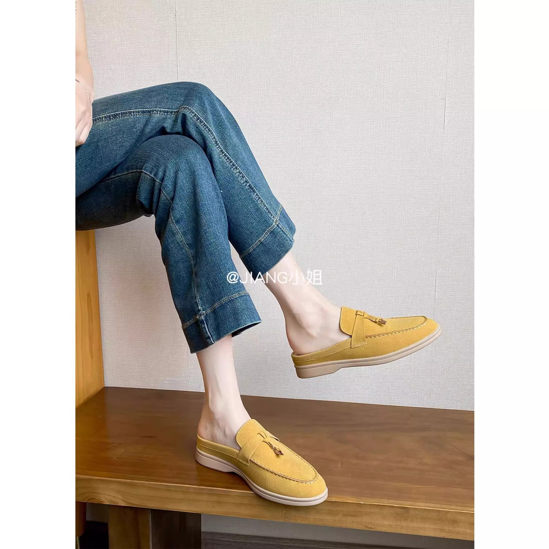 양가죽 버전 ~ 5cm 작은 사이즈 여성용 키높이 발가락 하프 슬리퍼, 로퍼, 게으른 신발, 슬립온스토어 가기