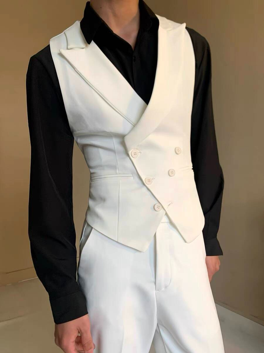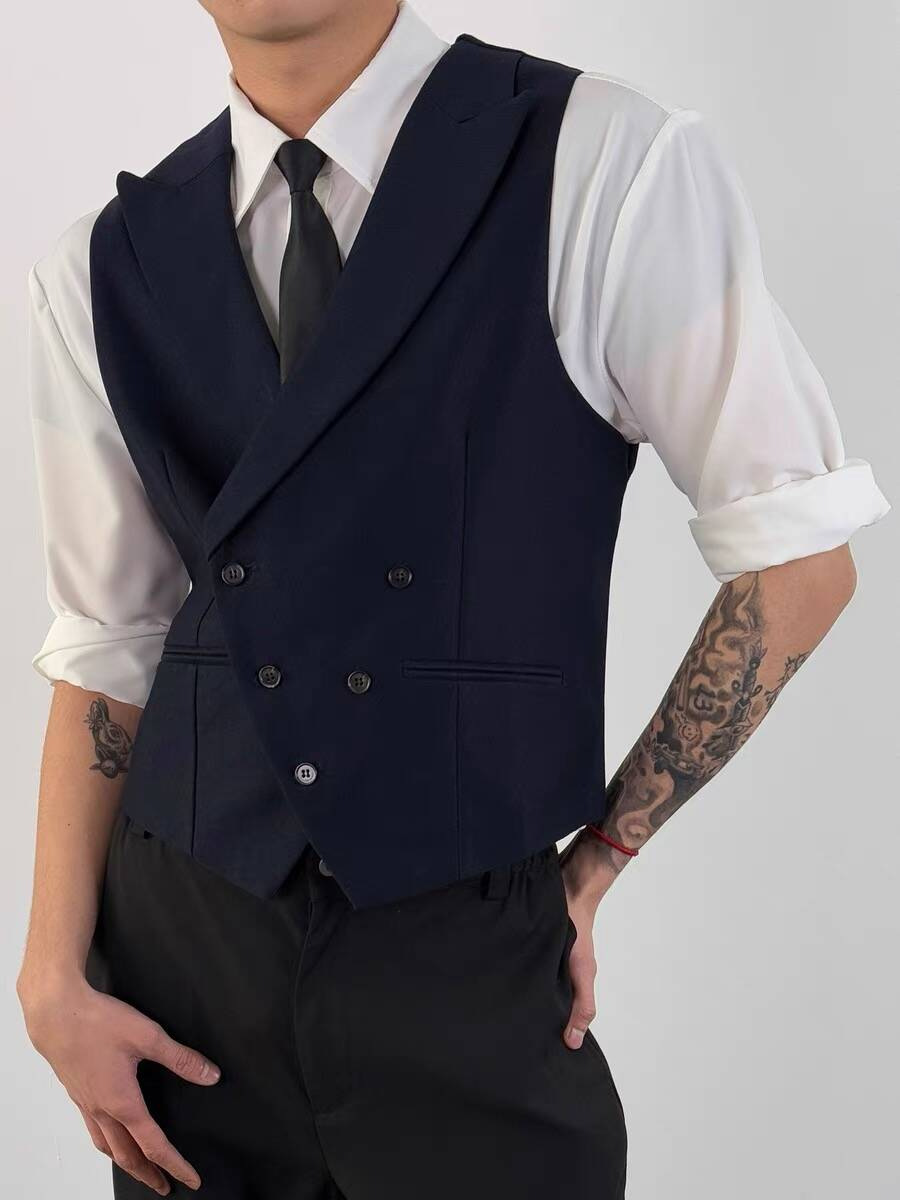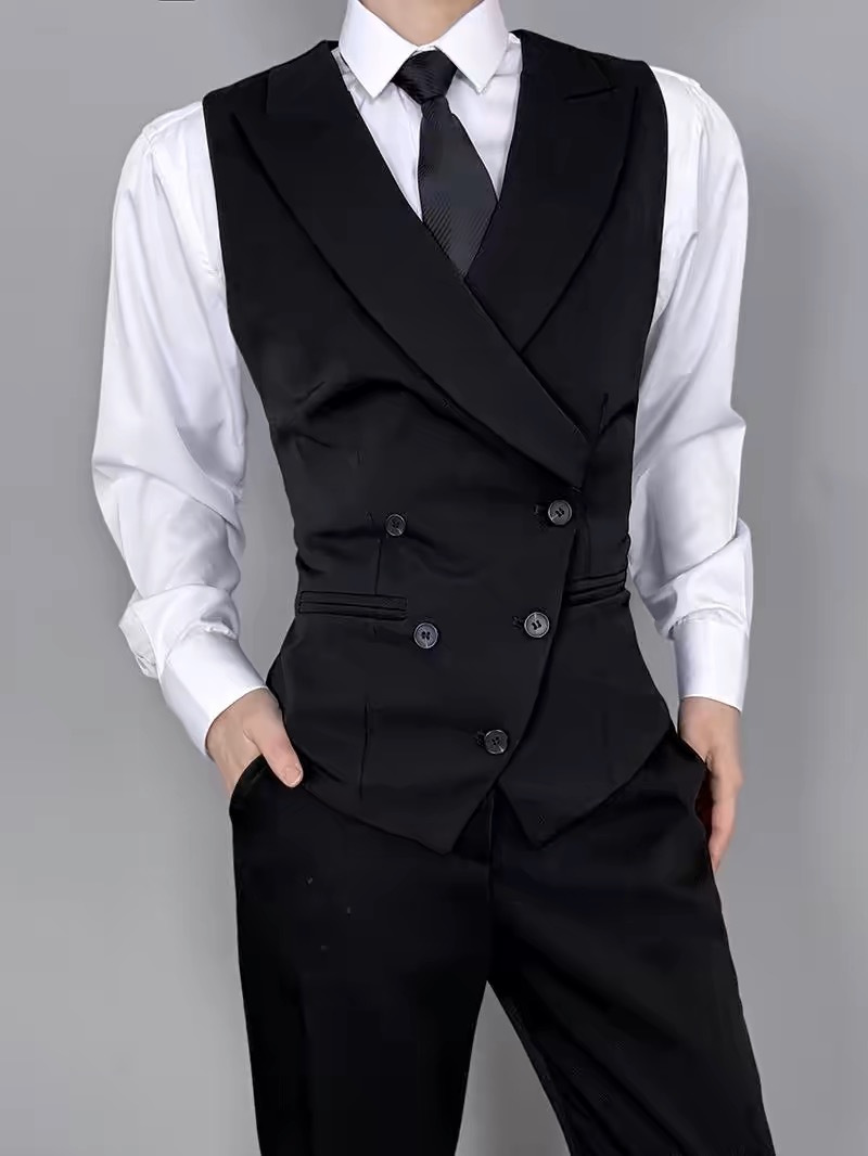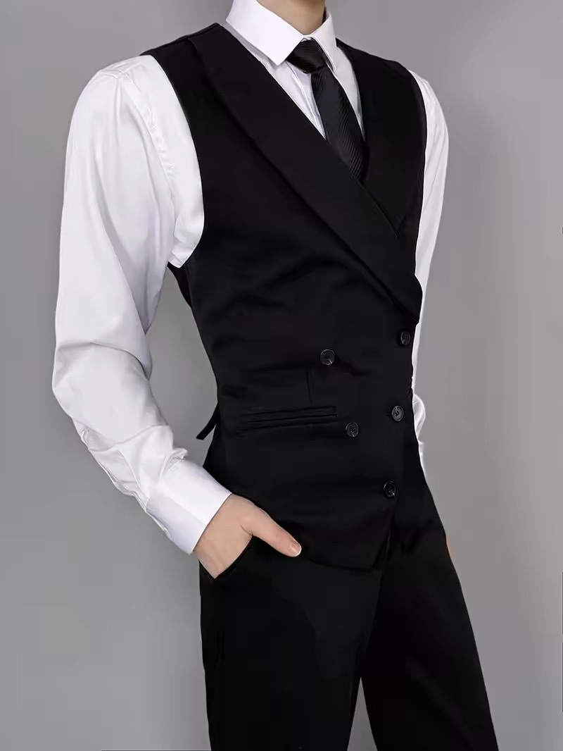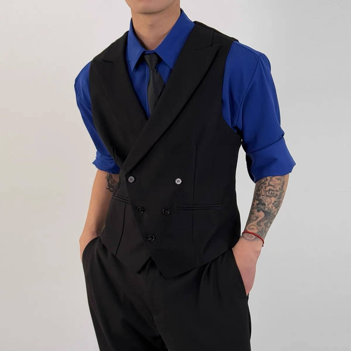 고급 남성 슬림핏, 다재다능하고 패셔너블한 스트라이프 더블브레스트 조끼, 그린 과일 칼라 수트 조끼, 한국 스타일 트렌디스토어 가기