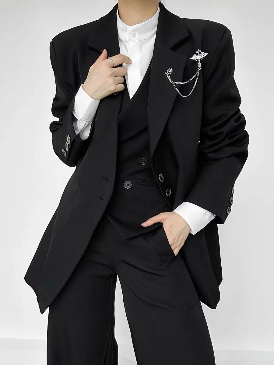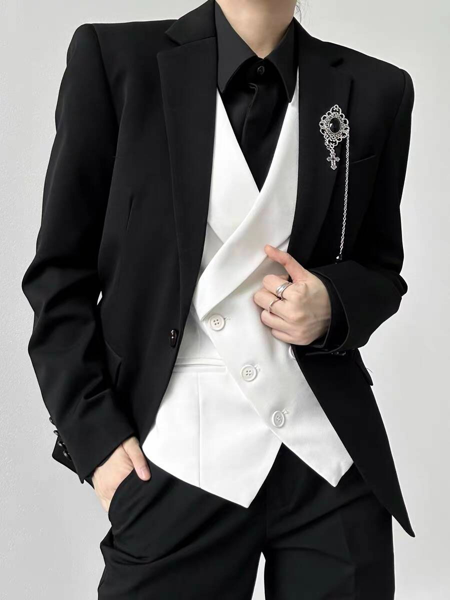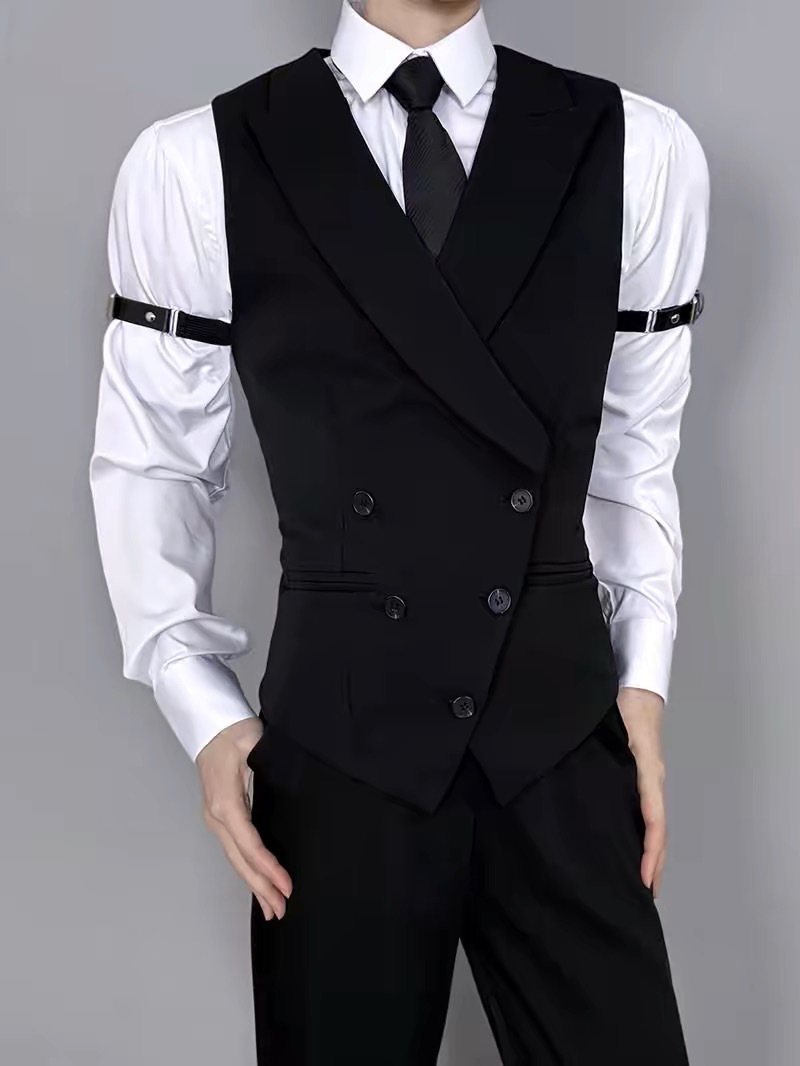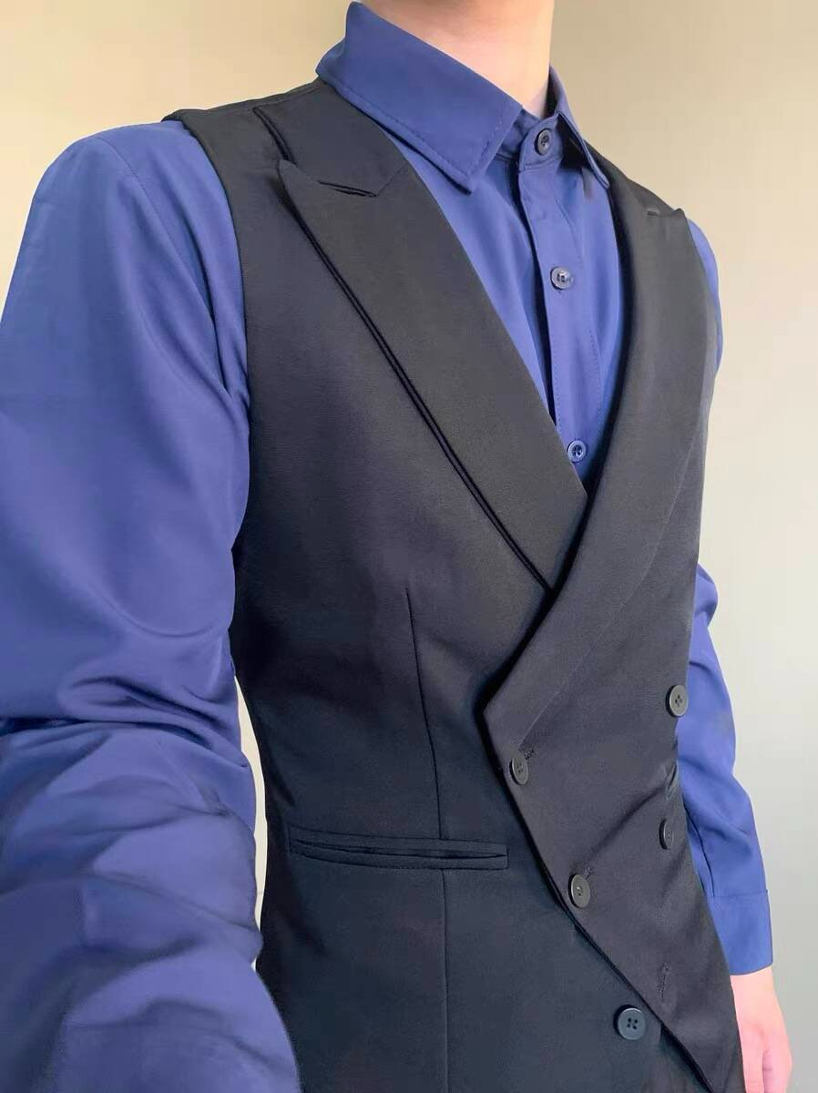 고급 남성 슬림핏, 다재다능하고 패셔너블한 스트라이프 더블브레스트 조끼, 그린 과일 칼라 수트 조끼, 한국 스타일 트렌디스토어 가기
