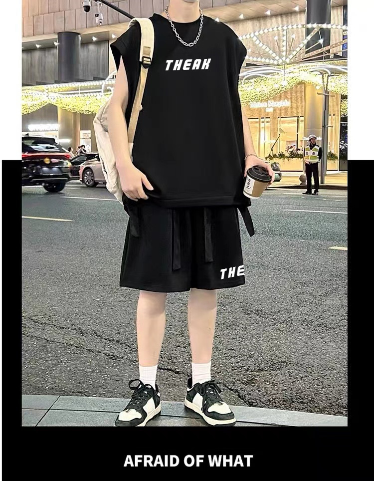 뚱뚱한 남자 여름 정장 여름 유행 플러스 사이즈 의류 2025 새로운 남성 느슨한 양복 조끼 피트니스 의류스토어 가기
