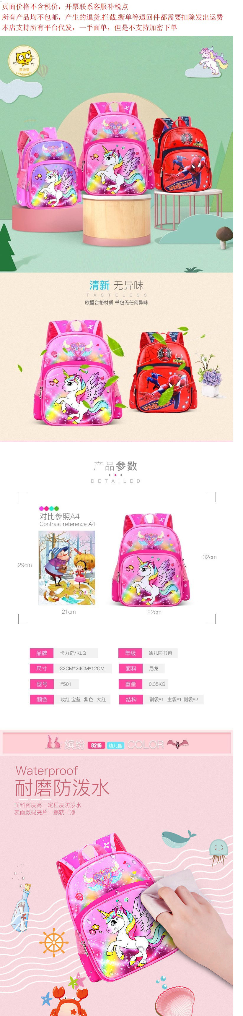 Schoolbag 어린이 유치원 유니콘 1 학년 아기 어깨 Schoolbag 공주 야외 배낭 유치원 Schoolbag스토어 가기