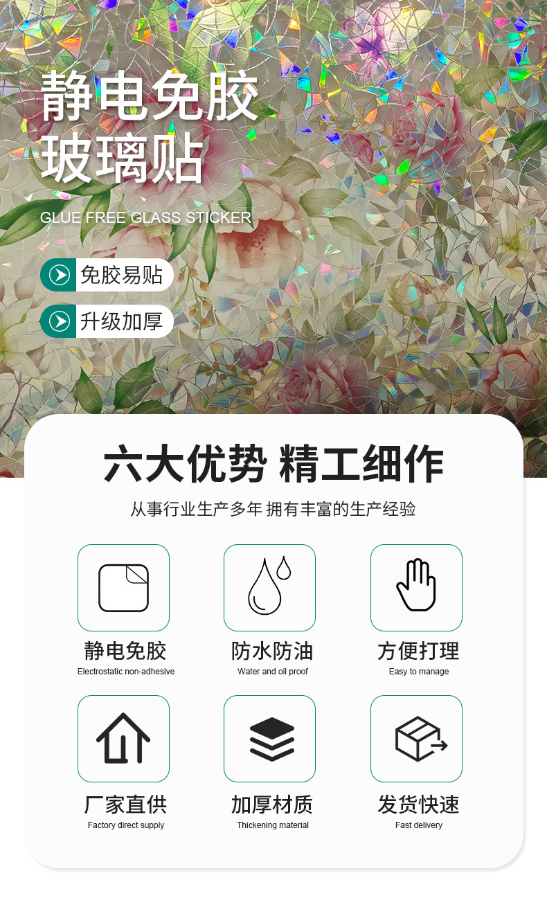 레트로 정전기 유리 필름 다채로운 레이저 창 스티커 서리로 썬 차양 단열 태양 보호 창 재고