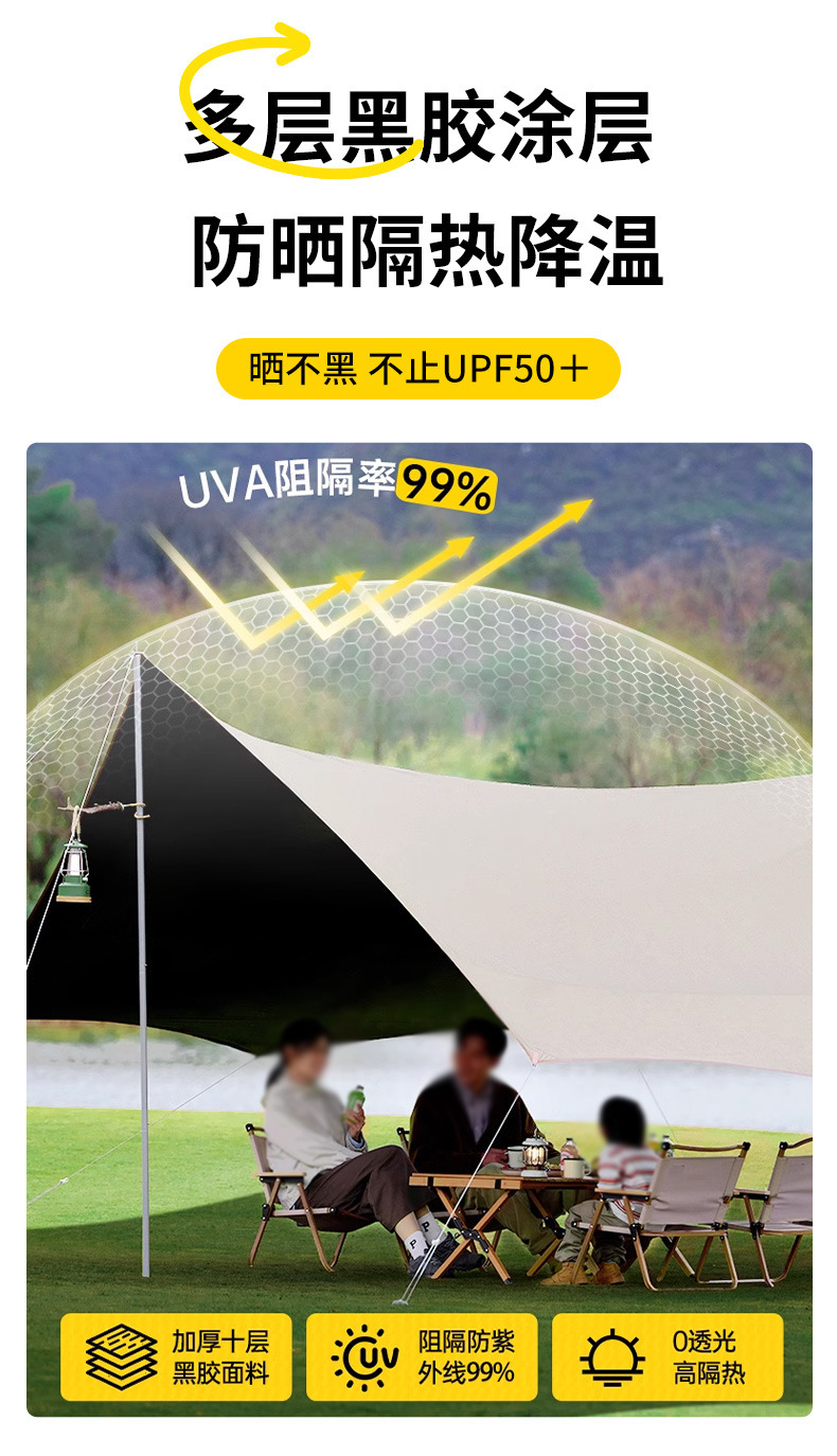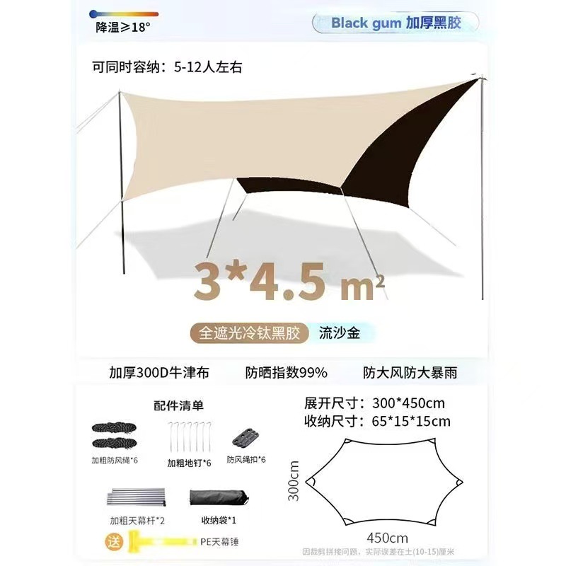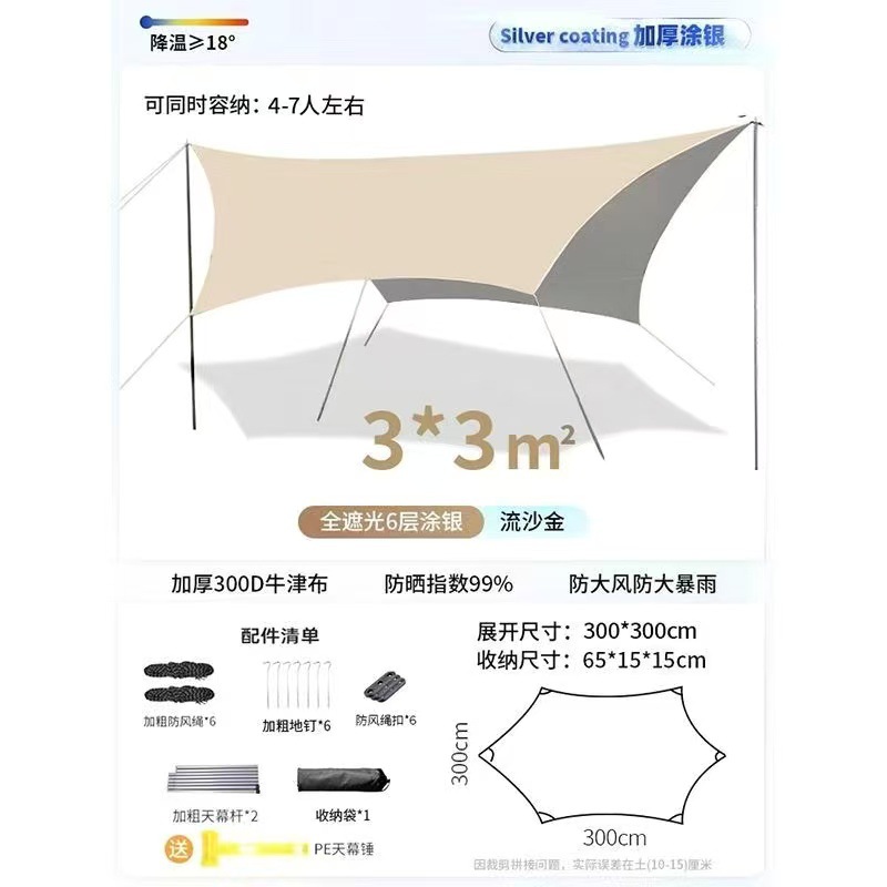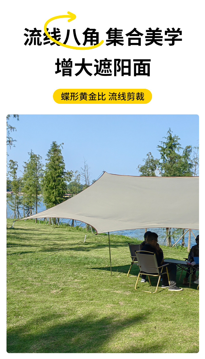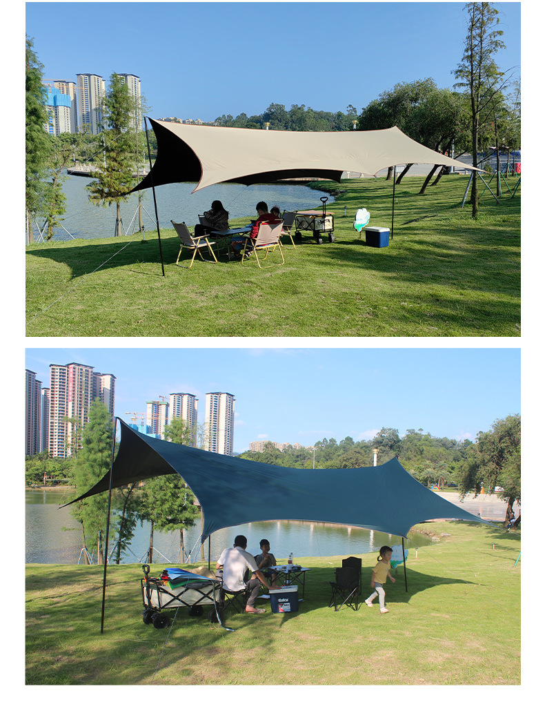 실버 비닐 블랙 비닐 캐노피 캠핑 접이식 텐트 태양 보호 및 방풍 실버 코팅 피크닉 나비 그늘 야외 팔각형 캐노피