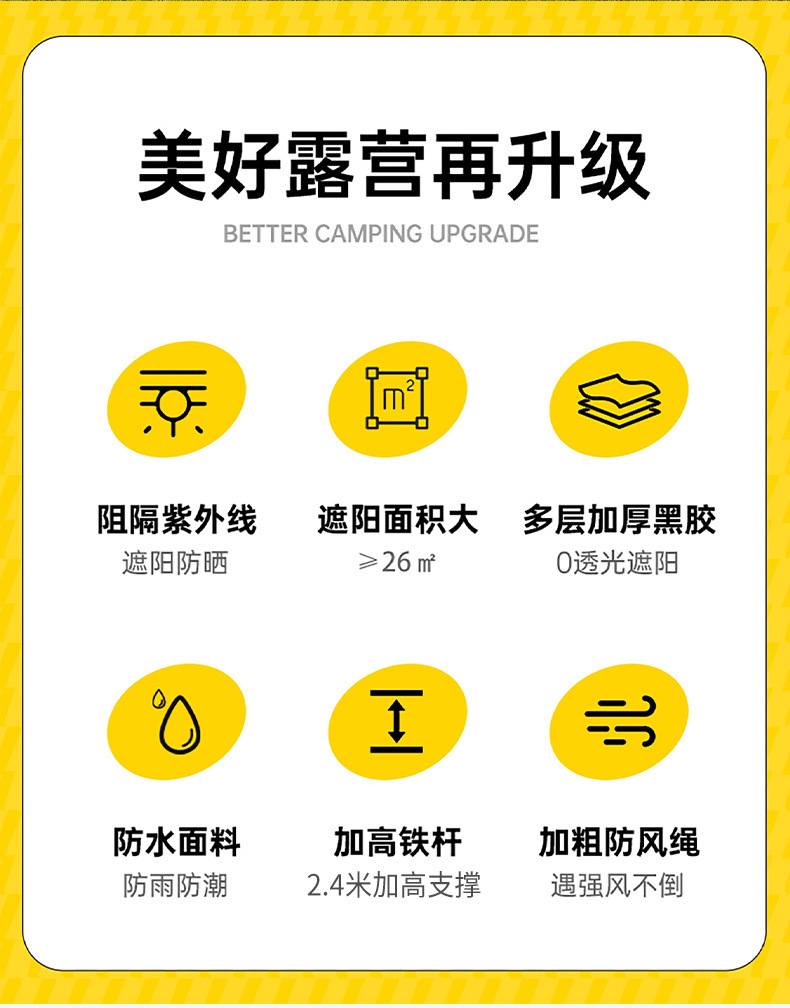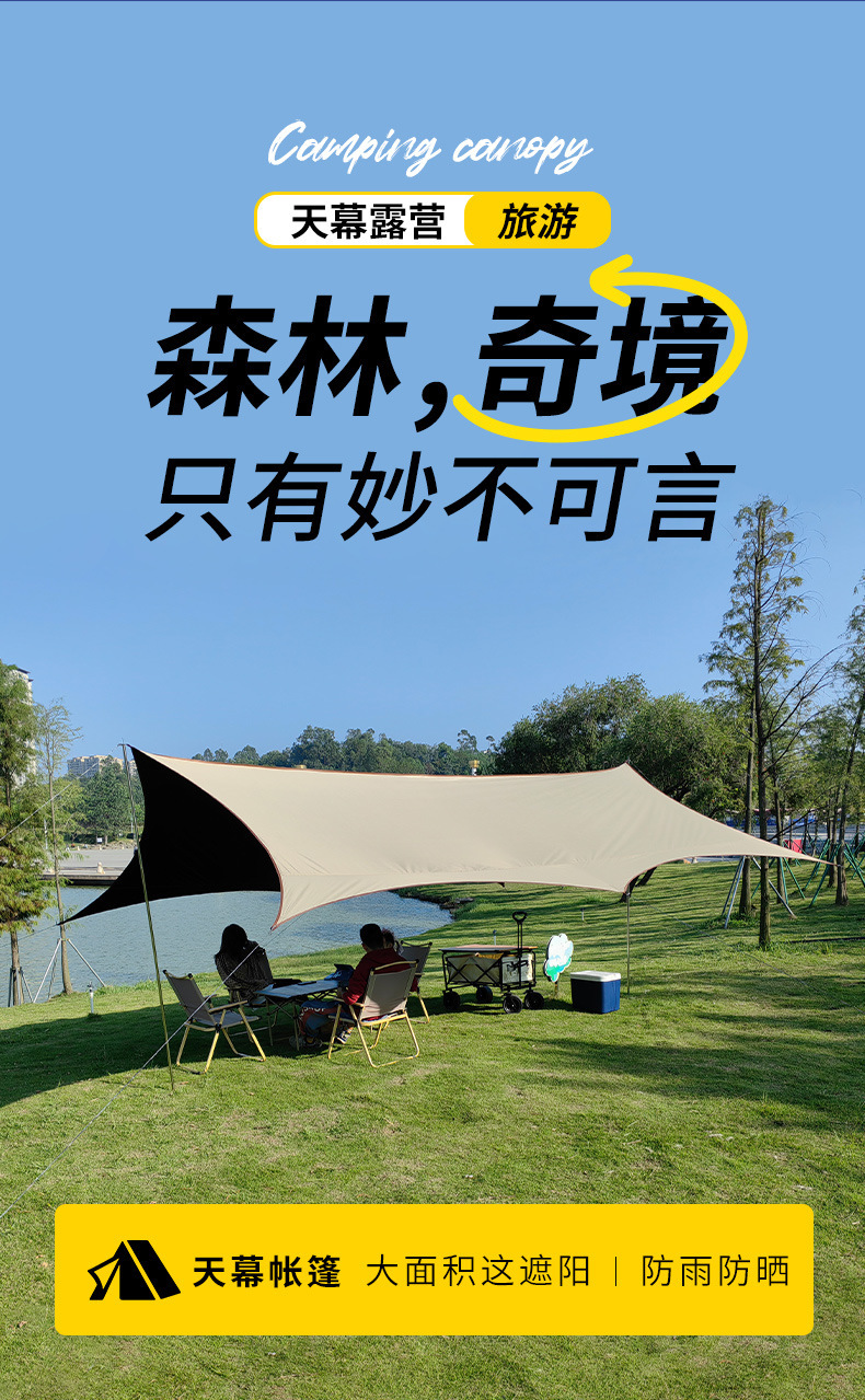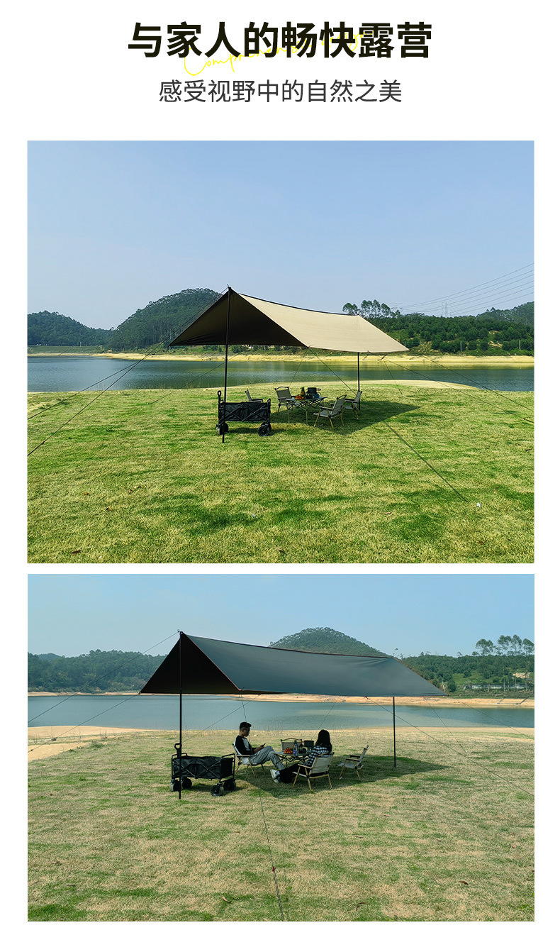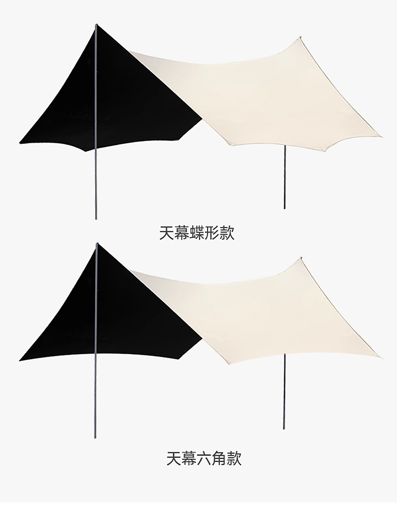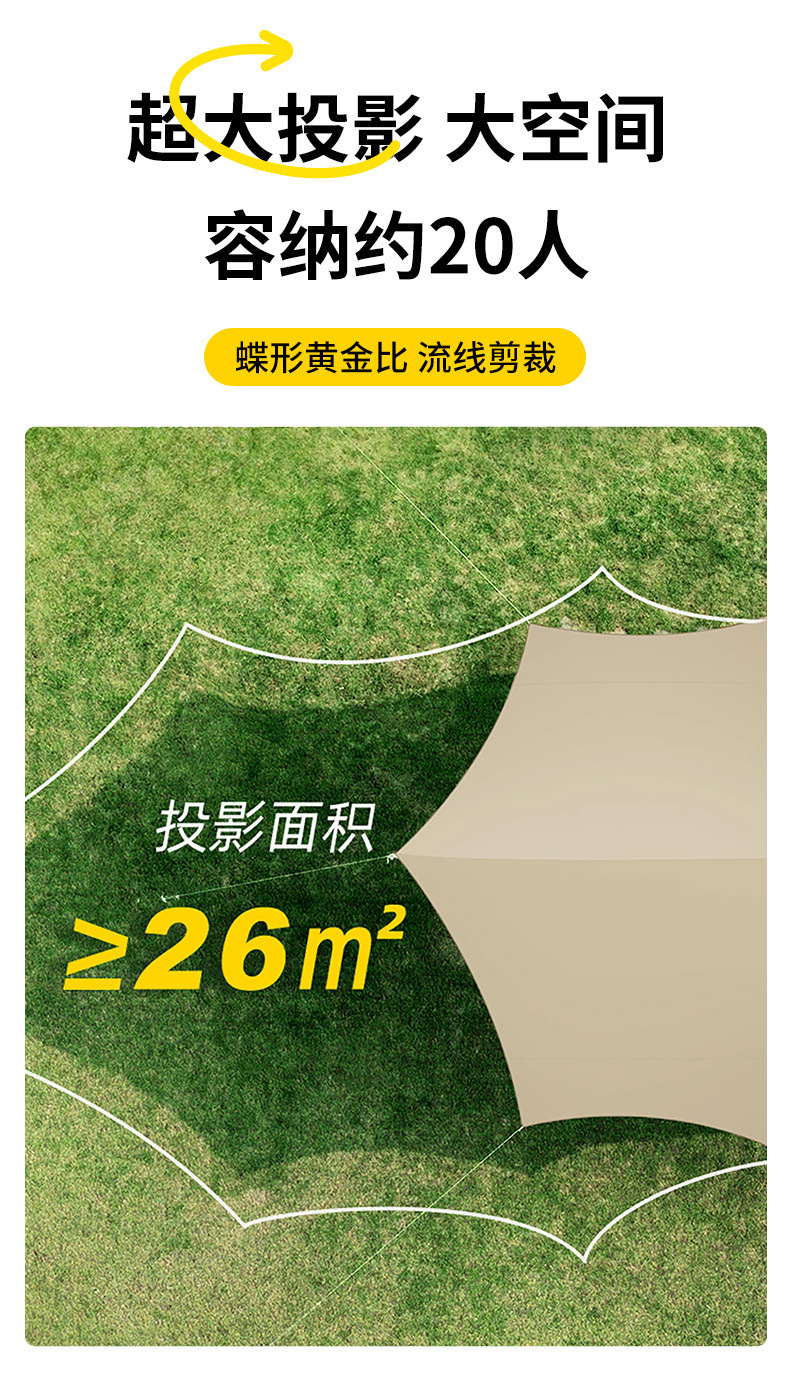 실버 비닐 블랙 비닐 캐노피 캠핑 접이식 텐트 태양 보호 및 방풍 실버 코팅 피크닉 나비 그늘 야외 팔각형 캐노피