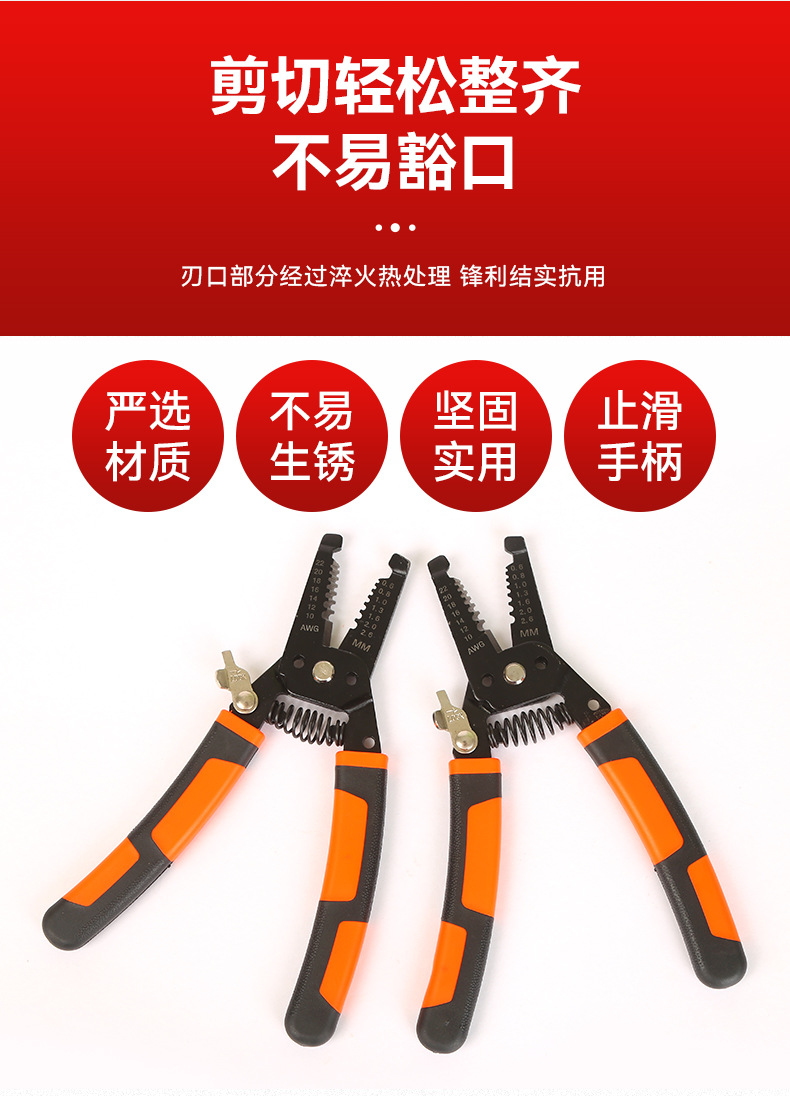 곡선형 핸들 와이어 스트리퍼, 전선 절단, 피복 제거, 압착, 절단 가위, 다용도 공구, 휴대용 8inch