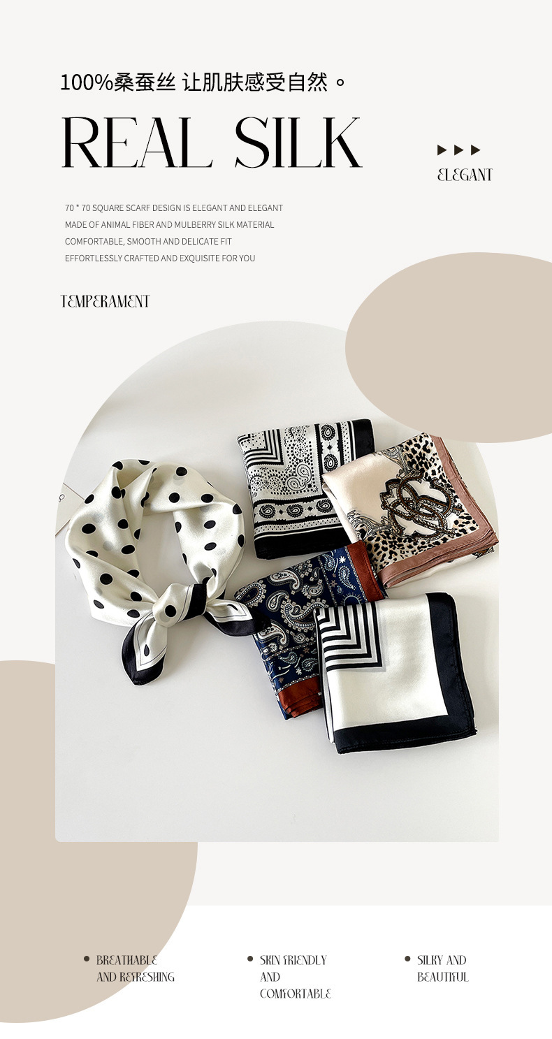 여성용 일반 크레이프 새틴 실크 스카프, 고급스럽고 가벼운 럭셔리 폴카 도트 실크 스카프 2025 캐슈넛 작은 사각형 스카프 목 보호 스카프 도매스토어 가기