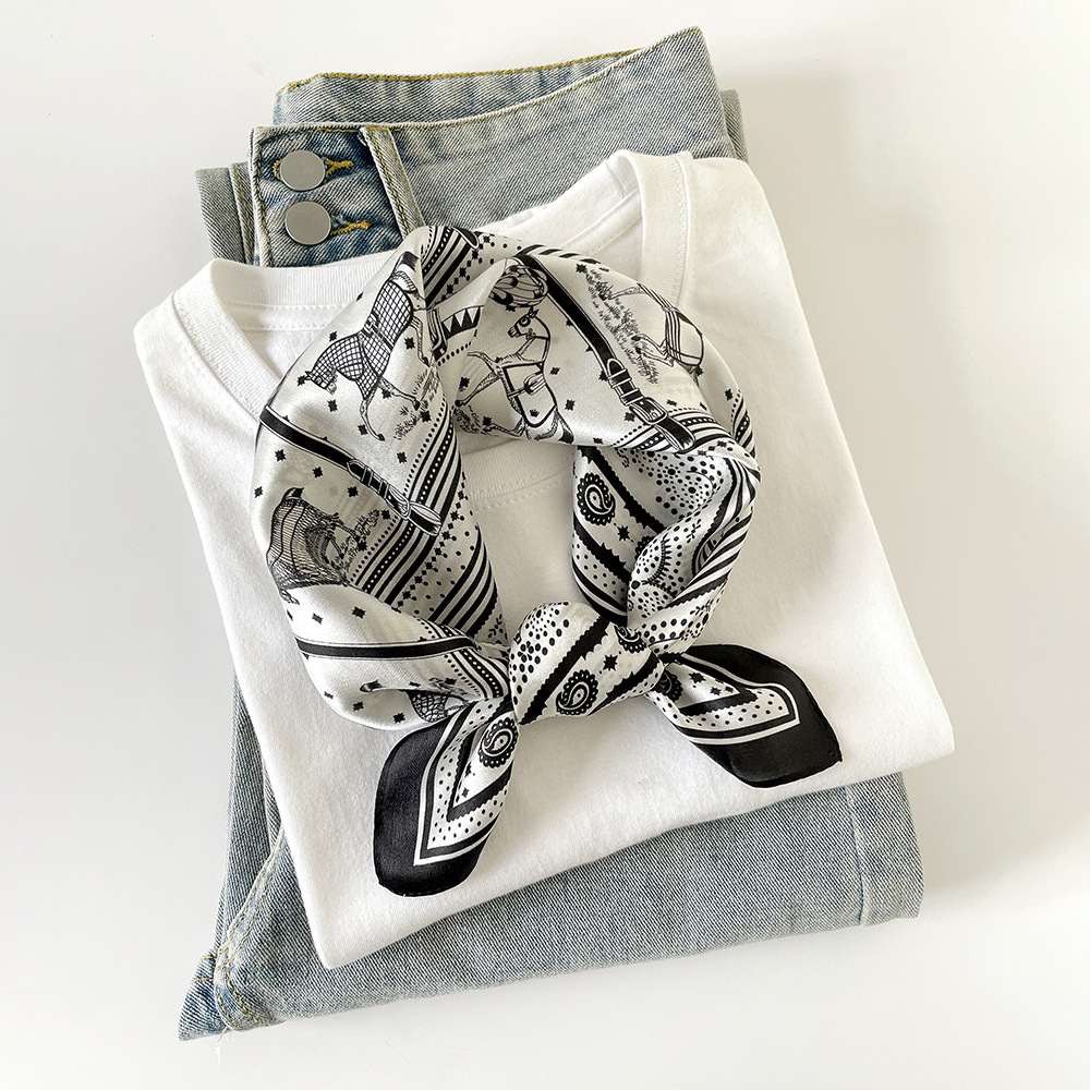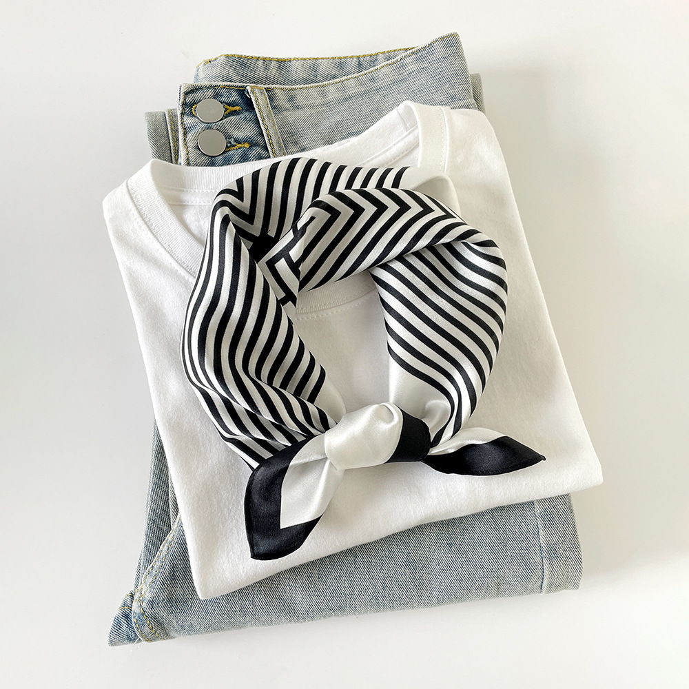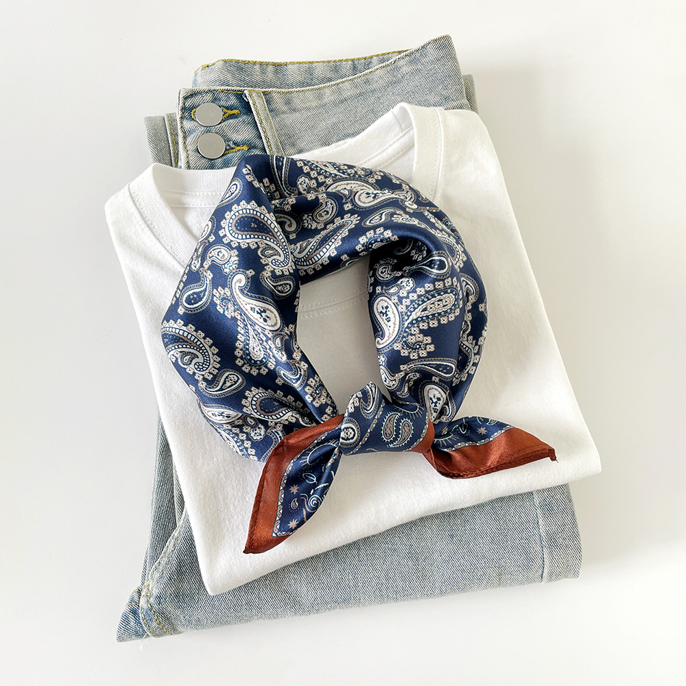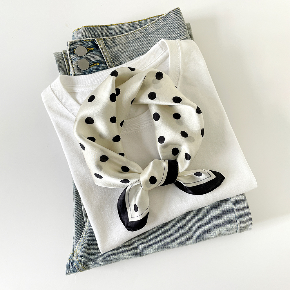 여성용 일반 크레이프 새틴 실크 스카프, 고급스럽고 가벼운 럭셔리 폴카 도트 실크 스카프 2025 캐슈넛 작은 사각형 스카프 목 보호 스카프 도매