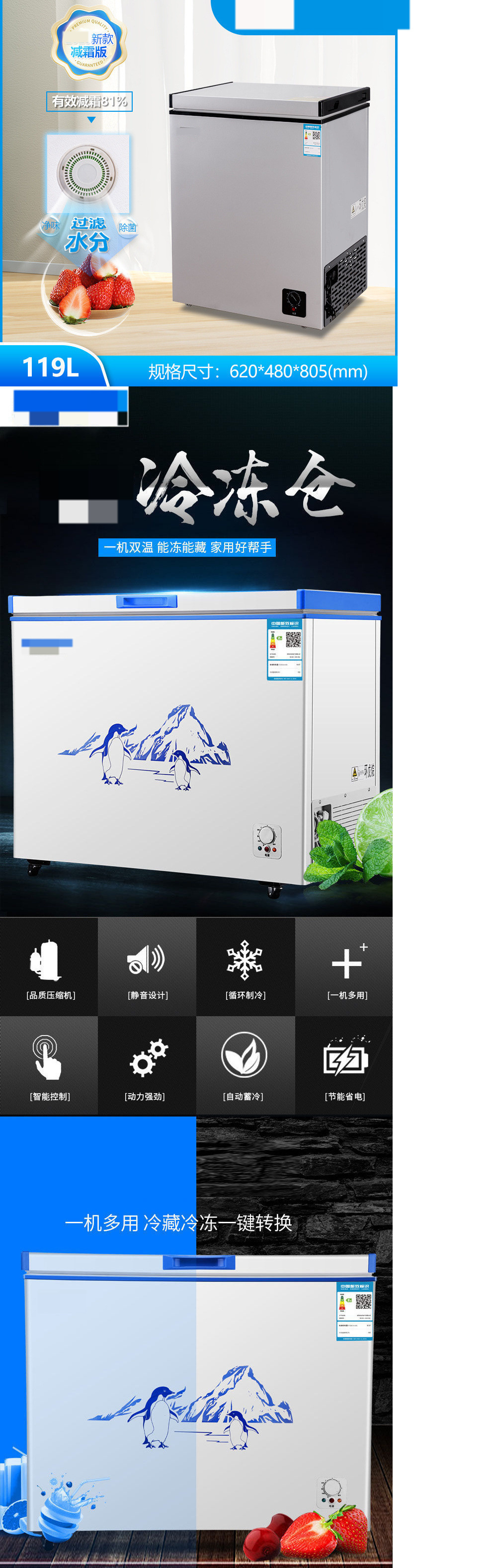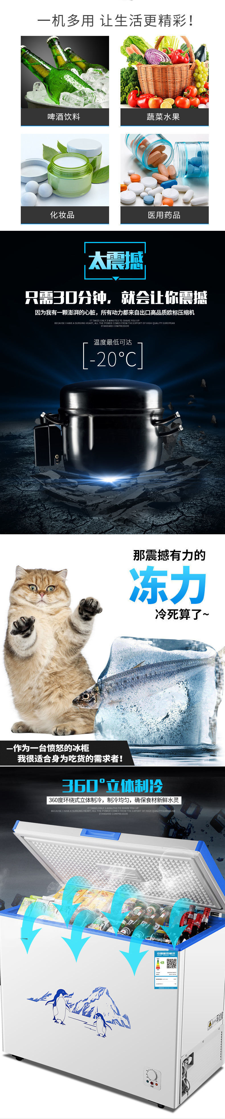 냉동고 소형 냉동 및 냉장 이중 목적 미니 냉동고 대용량 단일 온도 냉동고 자동차 냉장고스토어 가기