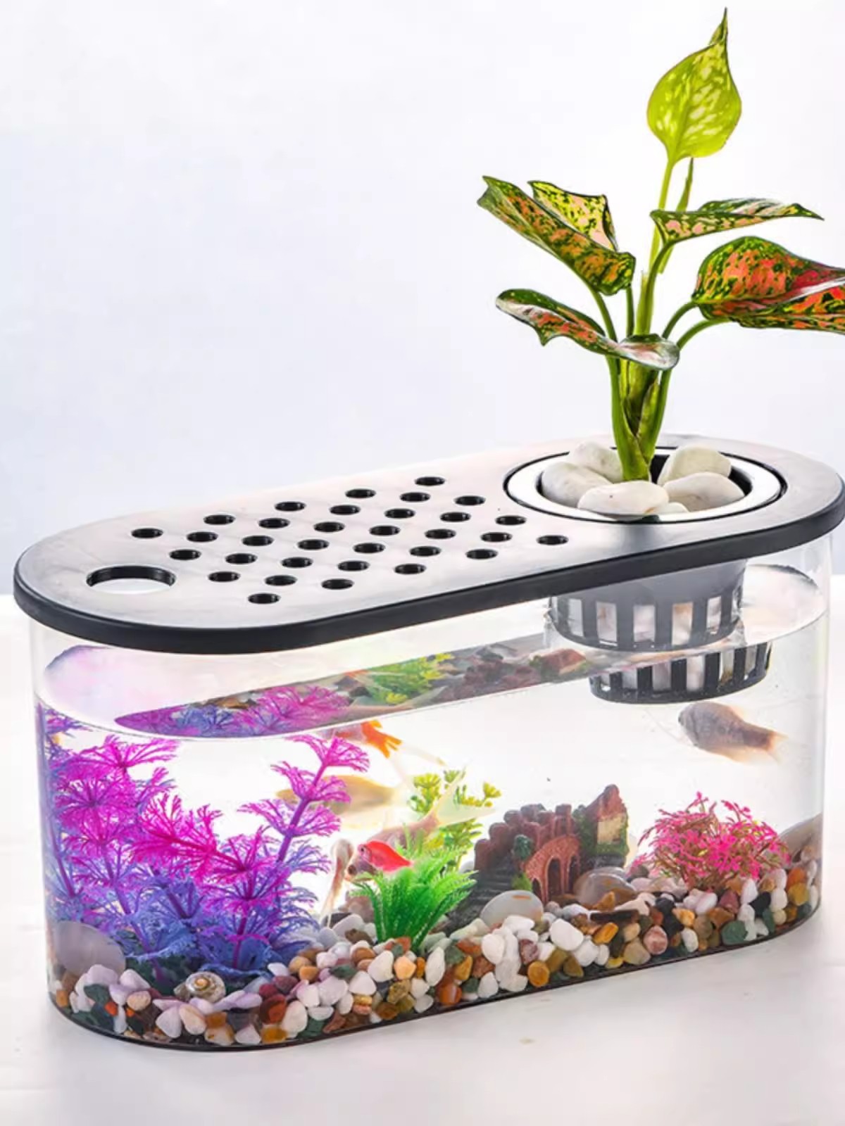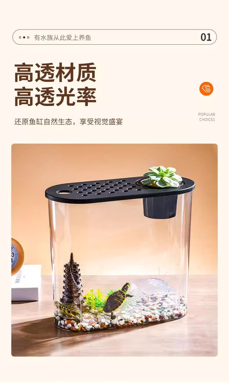고화질 투명 플라스틱 금붕어 탱크 데스크탑 사무실 홈 작은 모조 유리 조경 생태 탱크 제조 업체 도매스토어 가기