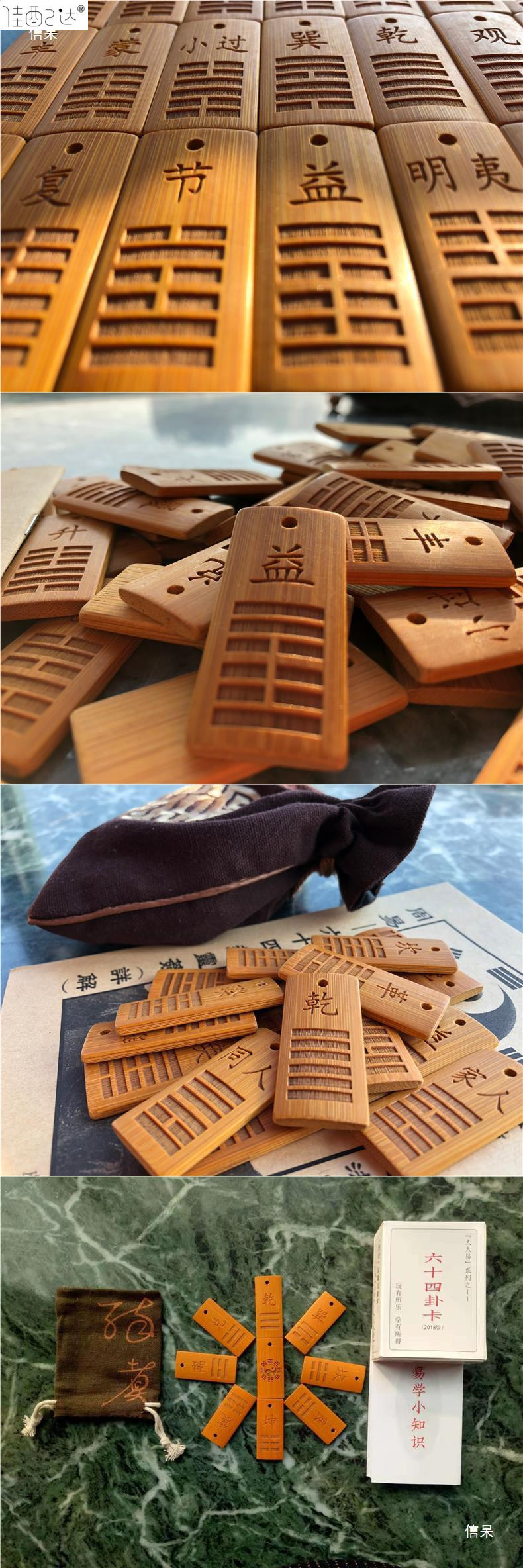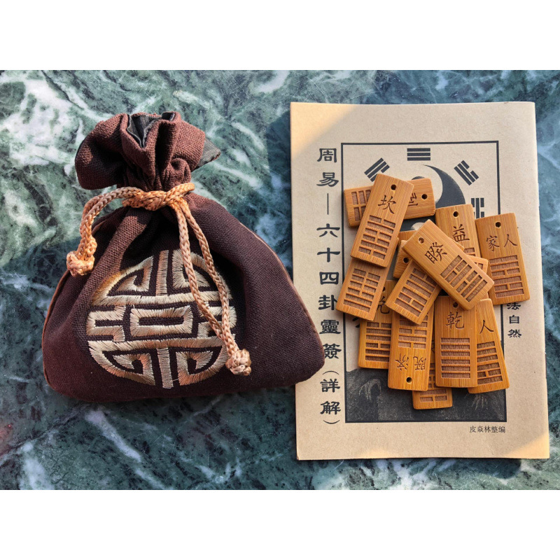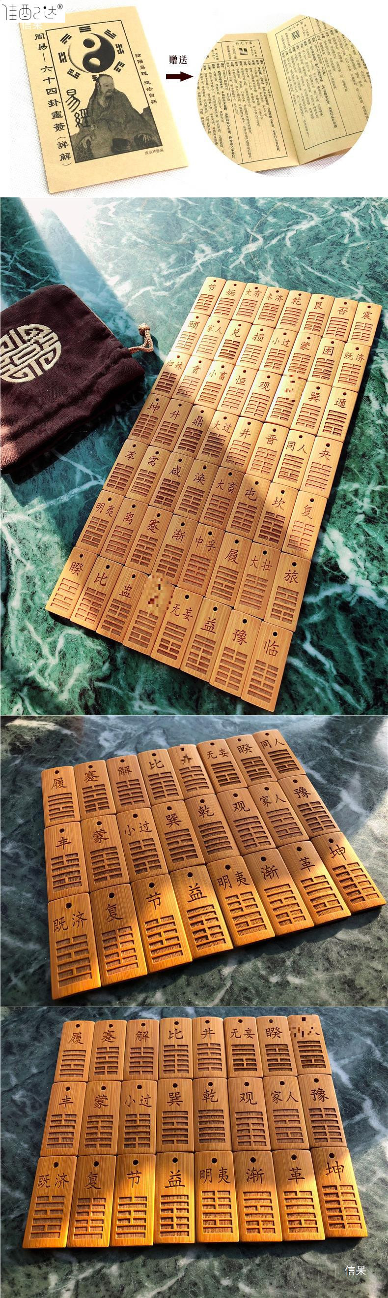 • 대나무 조각 카드 64장 + 팁 가방 + 상세 설명이 포함된 행운의 간판