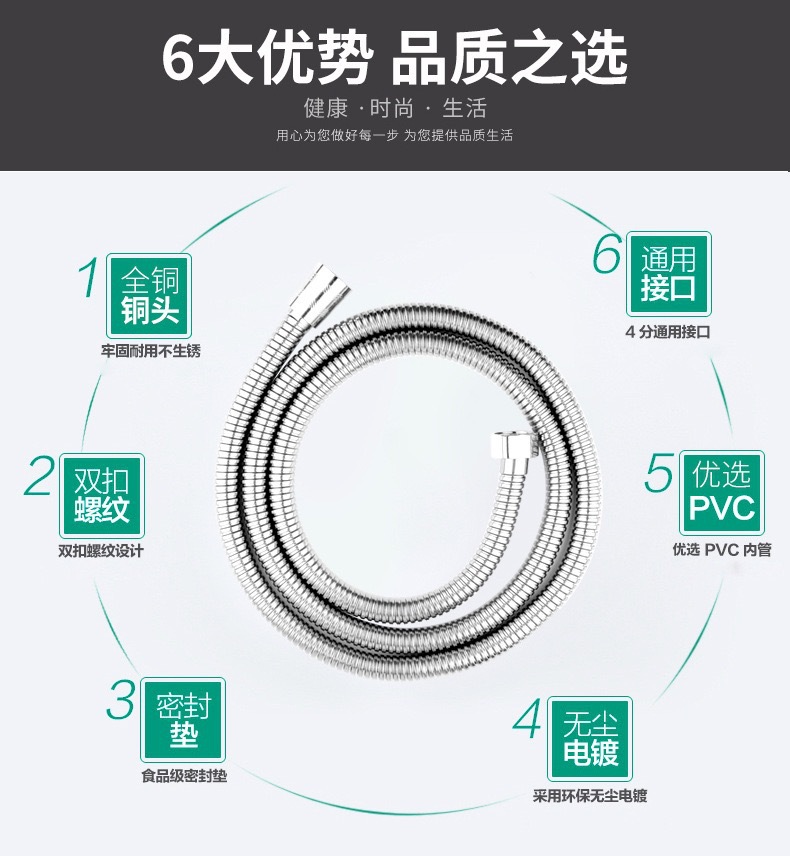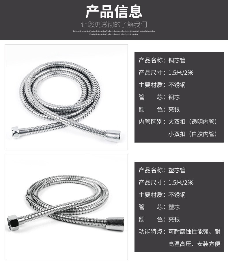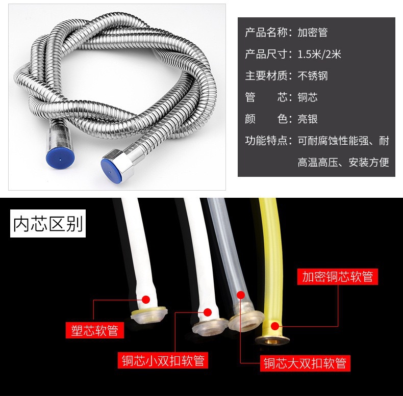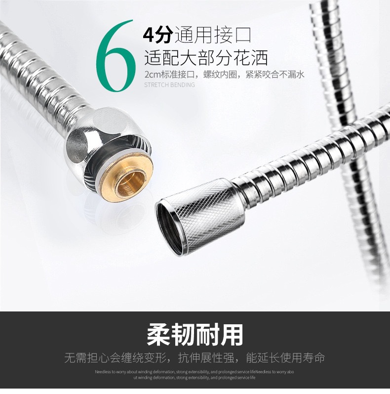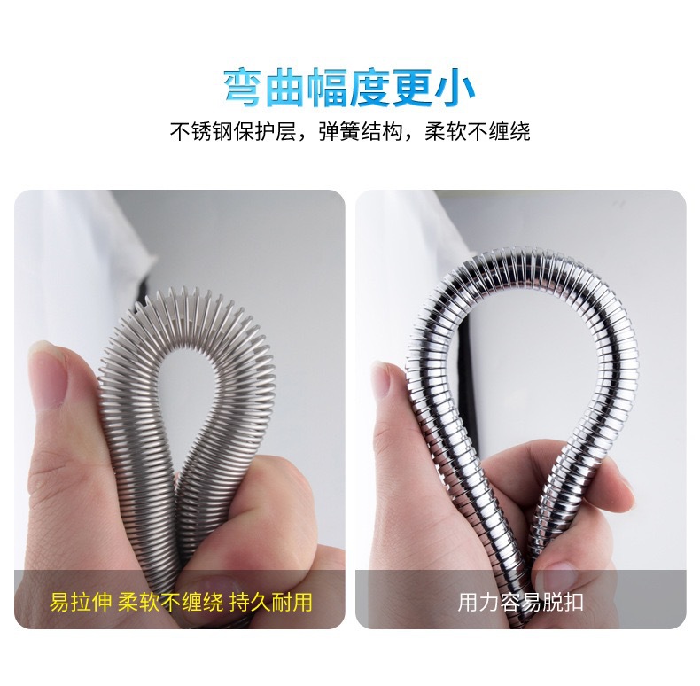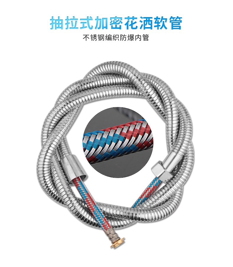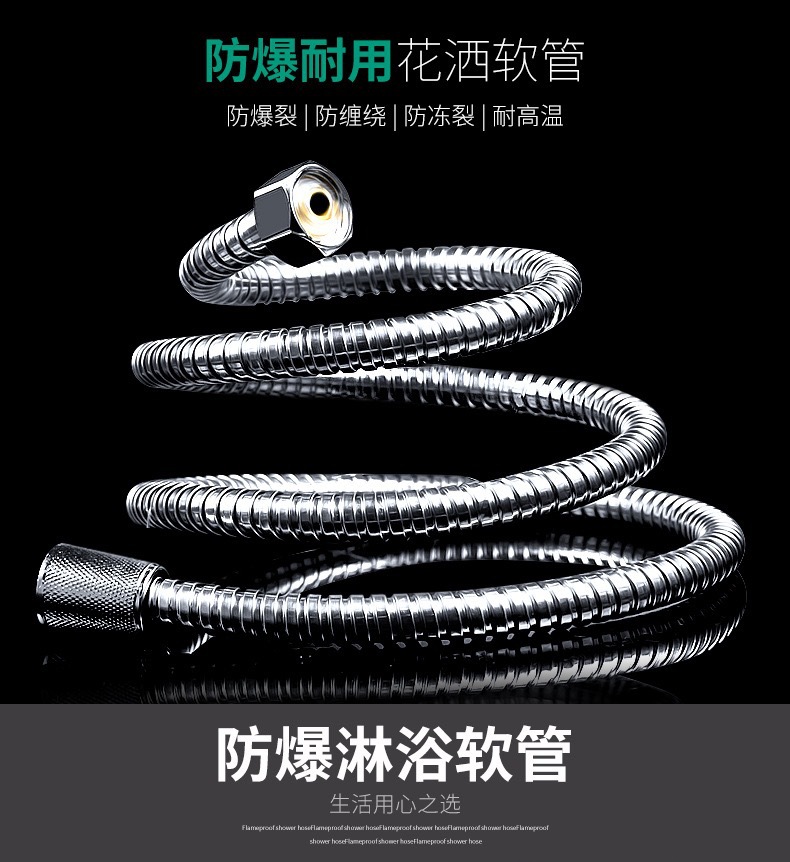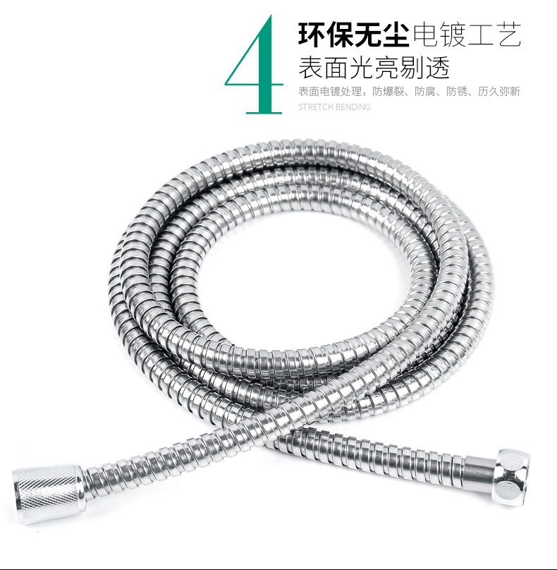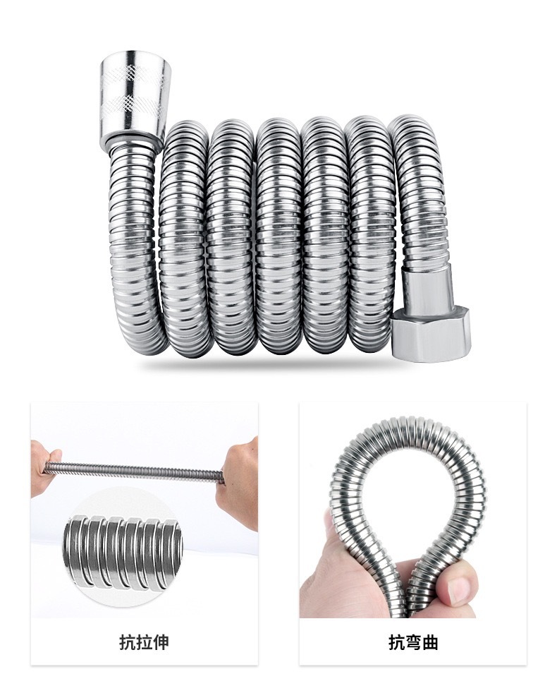 공장 직접 판매 스테인레스 스틸 샤워 호스 샤워 호스 가정용 방폭형 레인 샤워 노즐 수도관 전기 도금 금속 호스스토어 가기