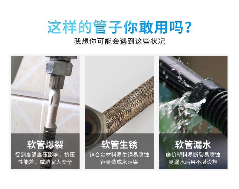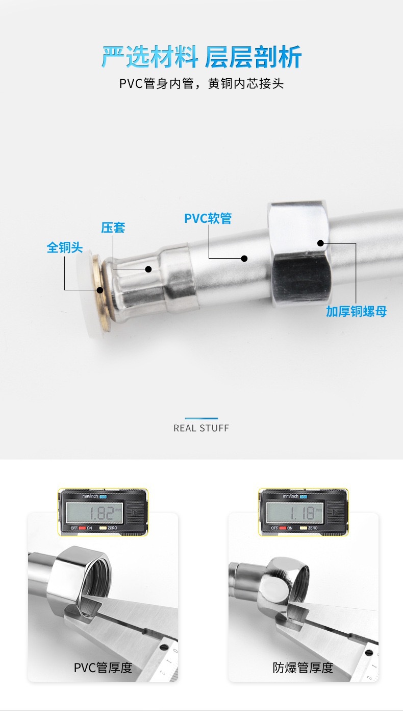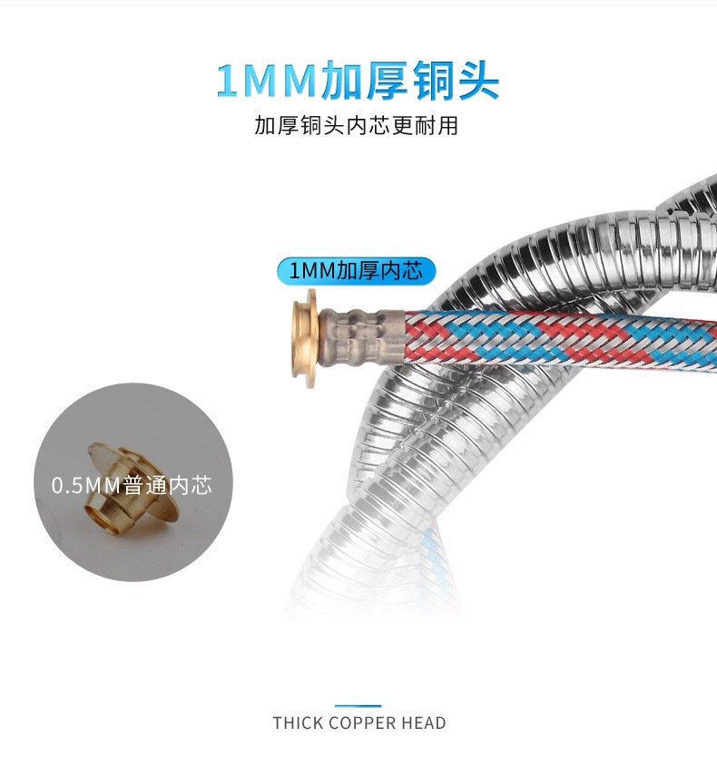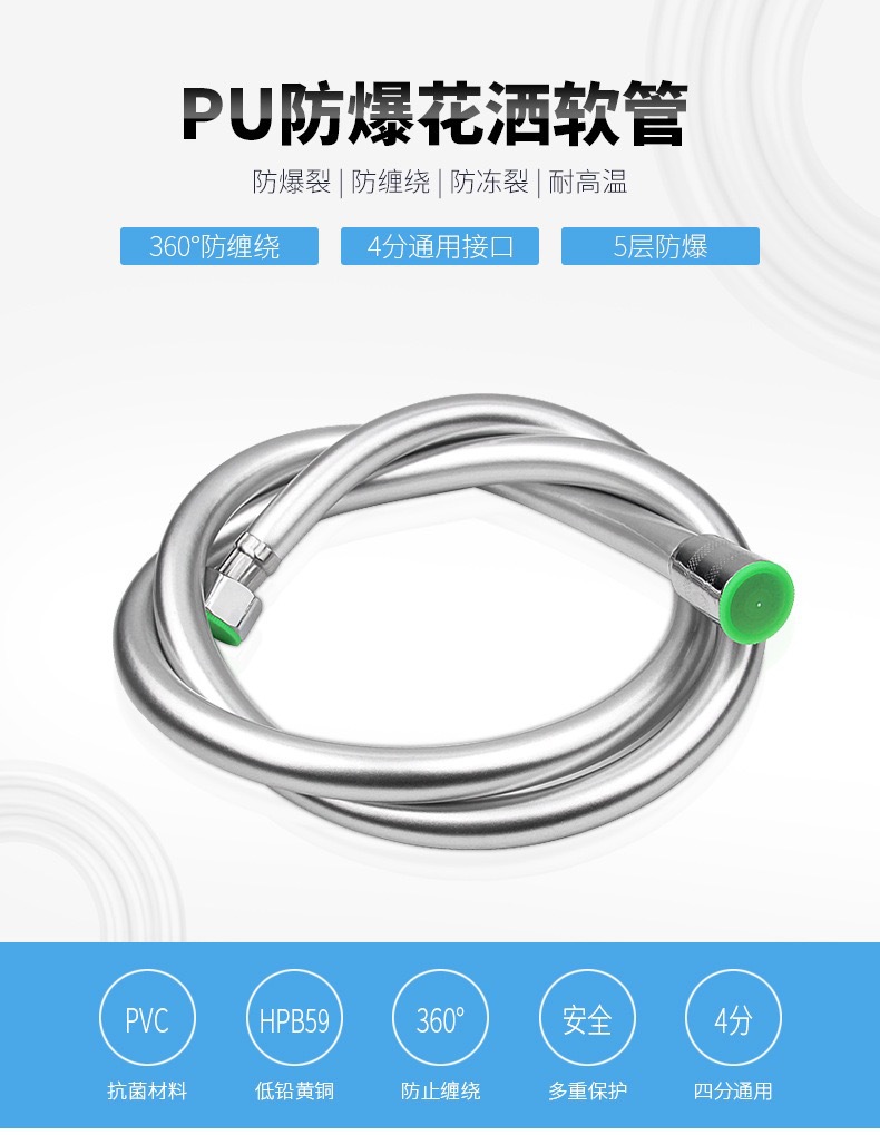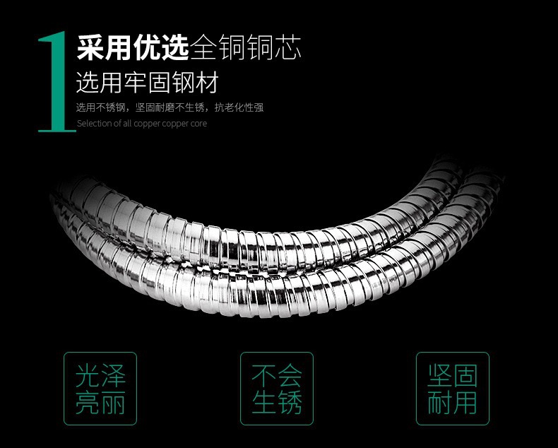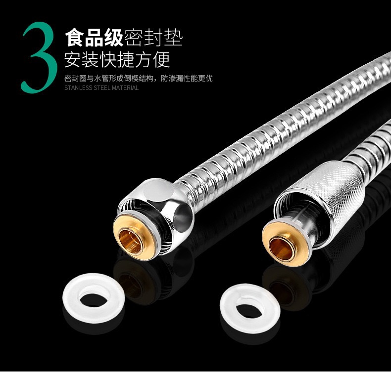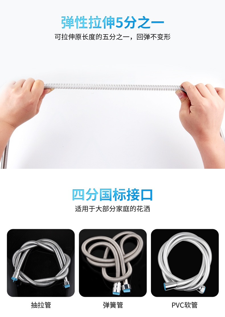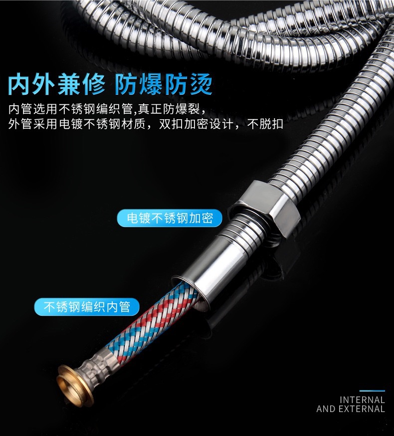 공장 직접 판매 스테인레스 스틸 샤워 호스 샤워 호스 가정용 방폭형 레인 샤워 노즐 수도관 전기 도금 금속 호스