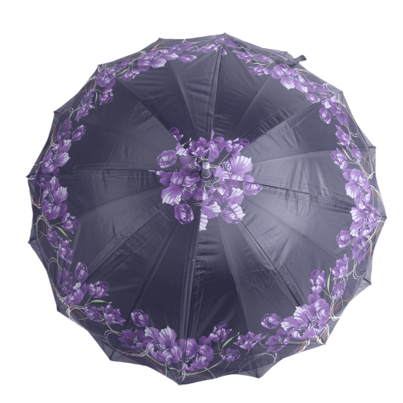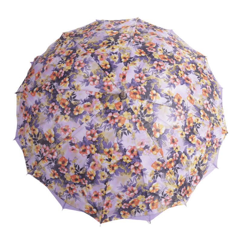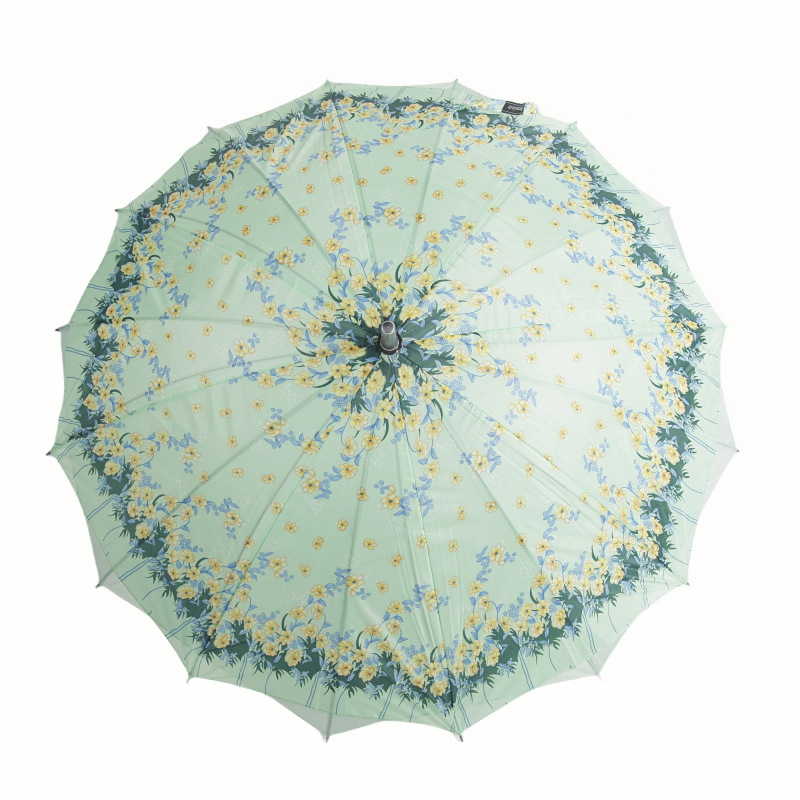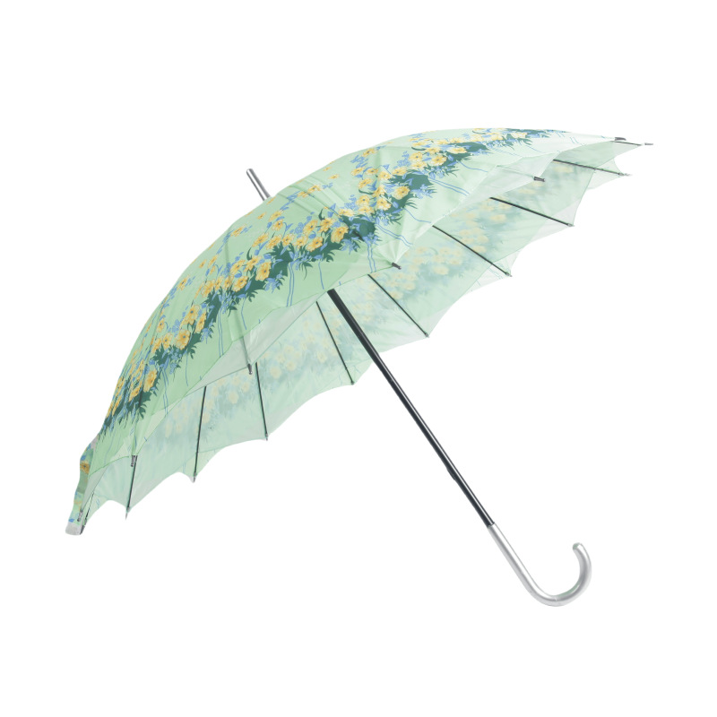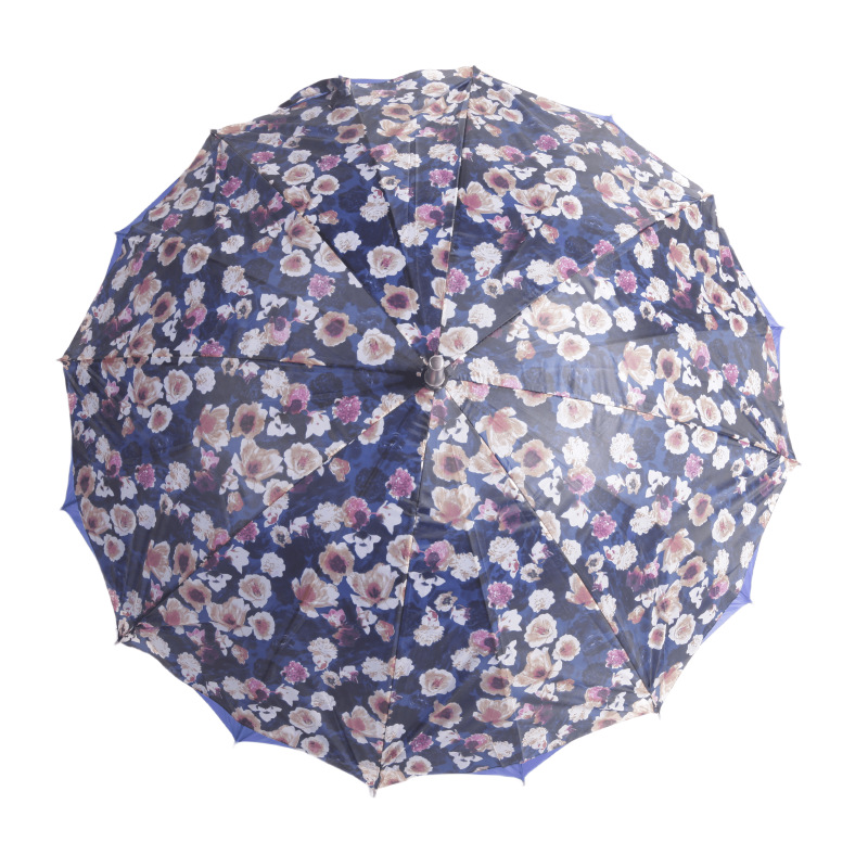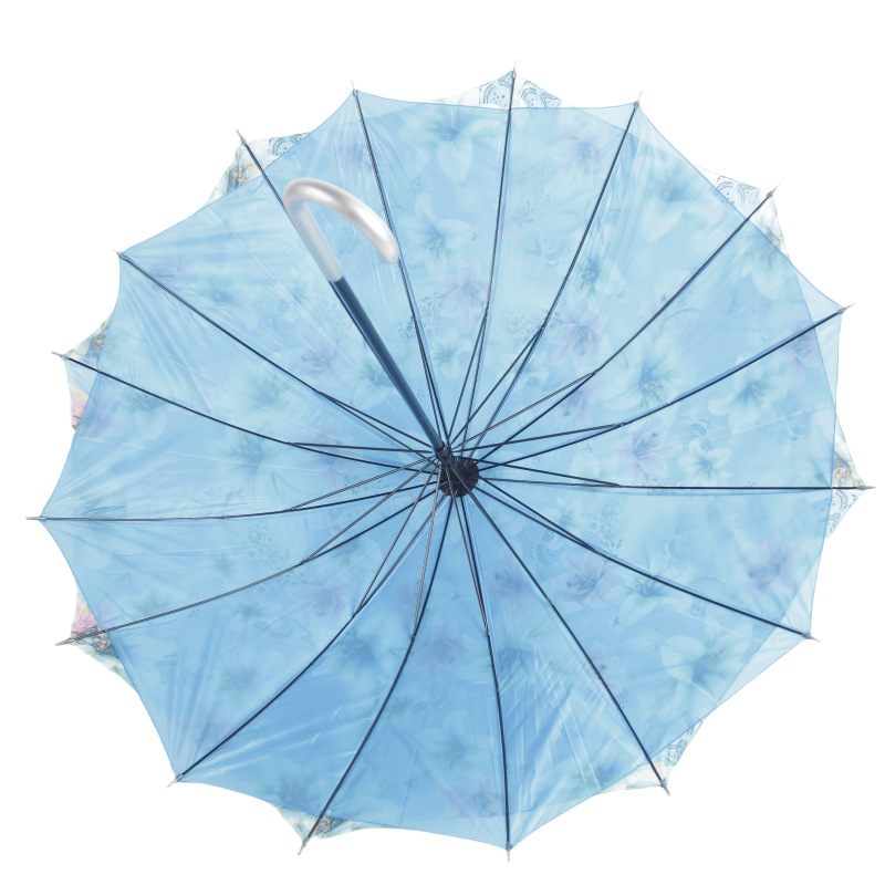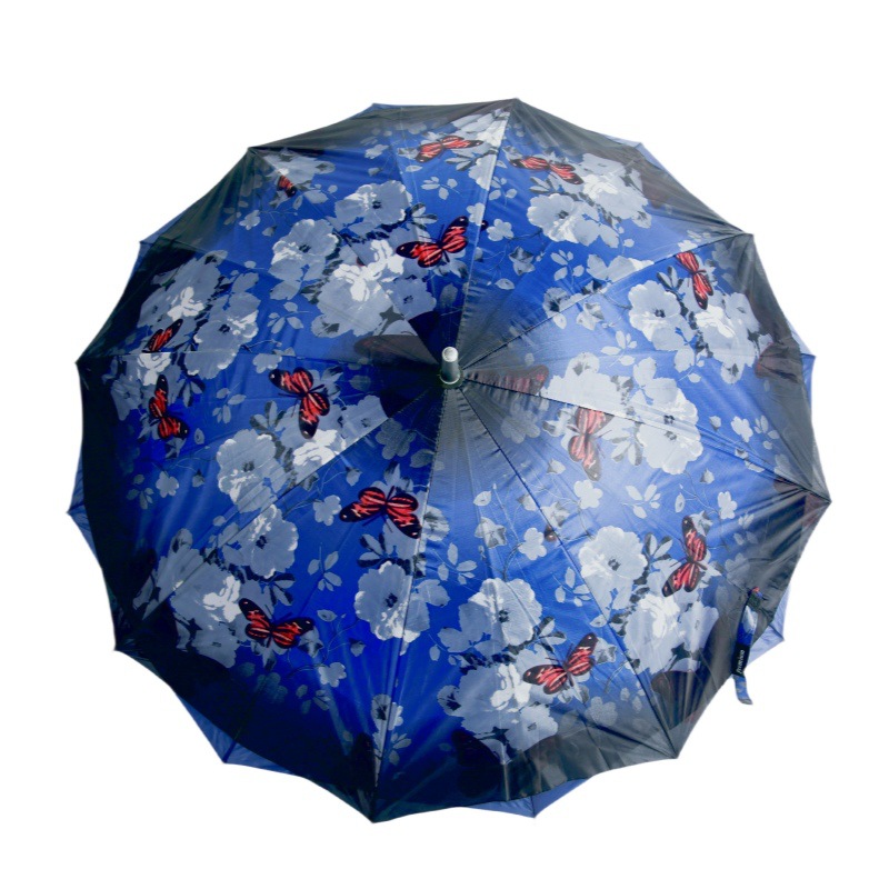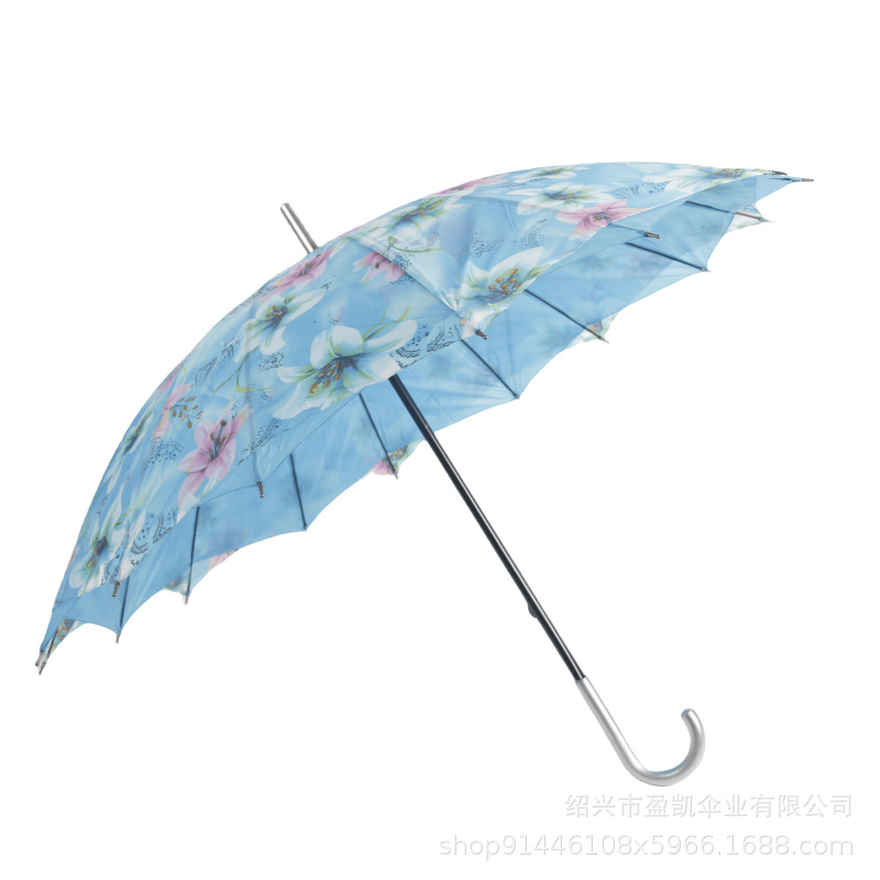 대외 무역 긴 손잡이 이중 우산 자동 직선 꽃 우산 손으로 열기 16 뼈 크로스 써니 우산 여성 및 어린이 우산