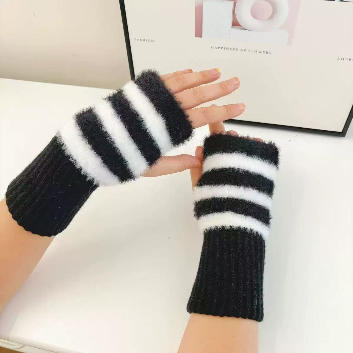 여성을 위한 인터넷 연예인 스타일 니트 핑거리스 장갑, 다용도 반반지 따뜻한 가을 겨울 핸드 양말, 학생용 단색 플러시 장갑스토어 가기