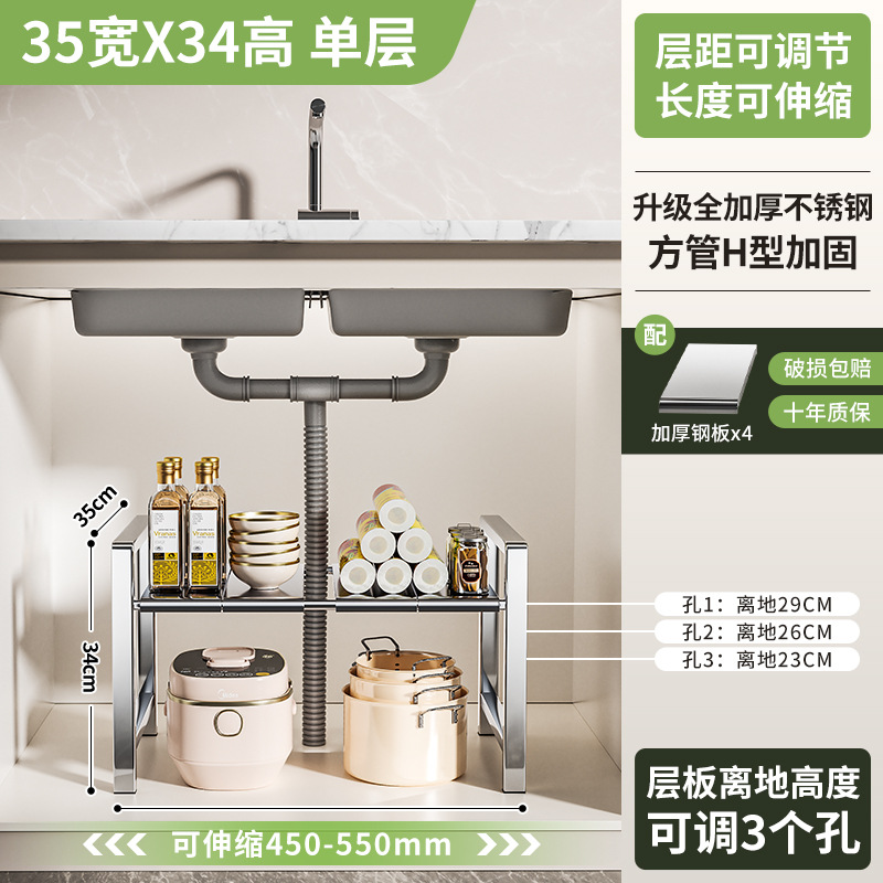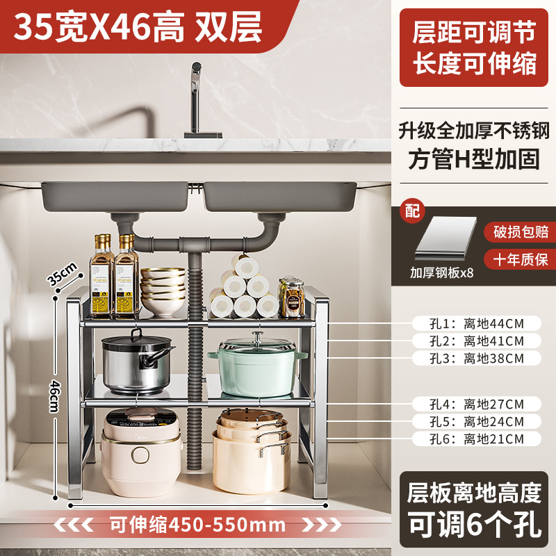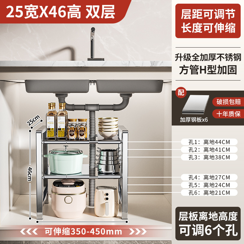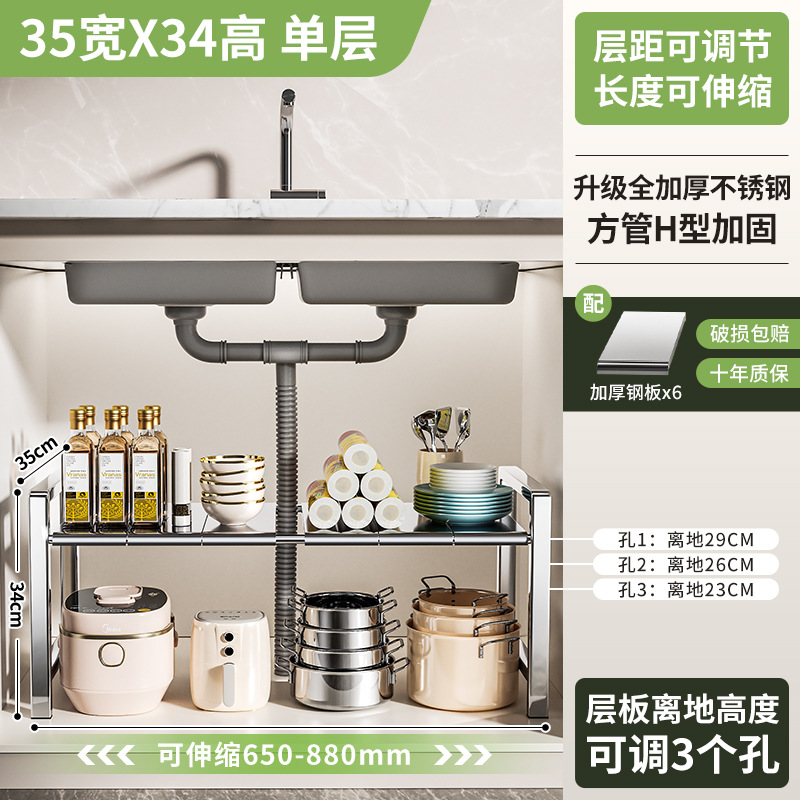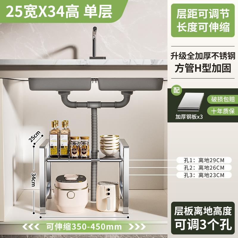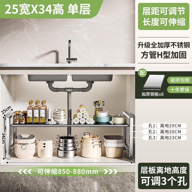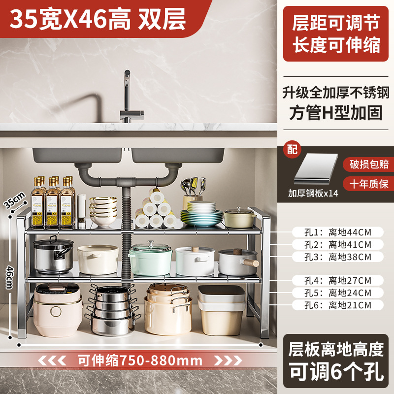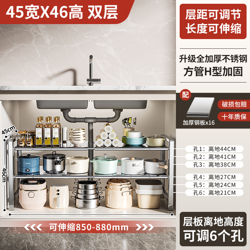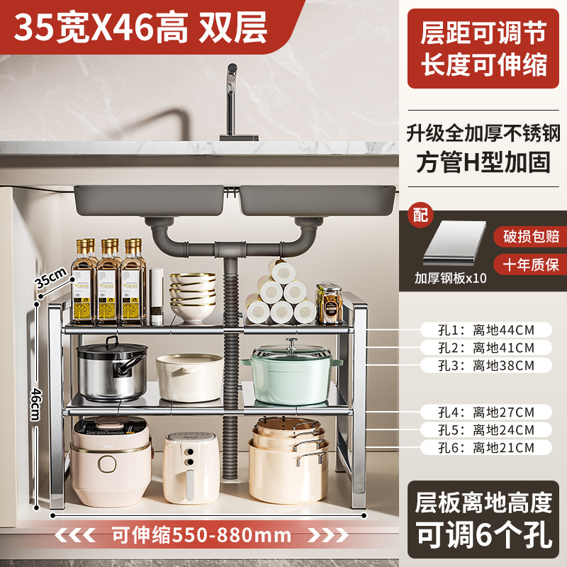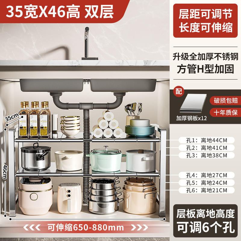 스테인리스 주방 싱크대 하부 수납 선반 다층 선반 캐비닛 내부 레이어드 냄비 선반 수납 좁은 틈 확장형