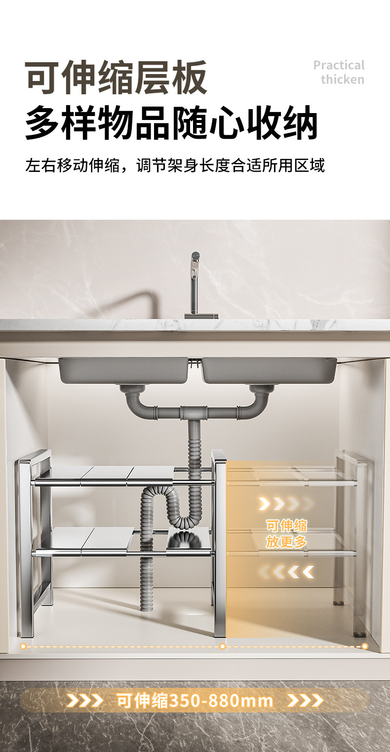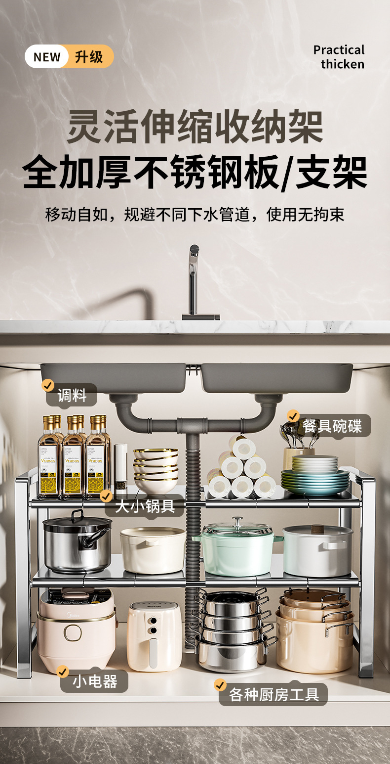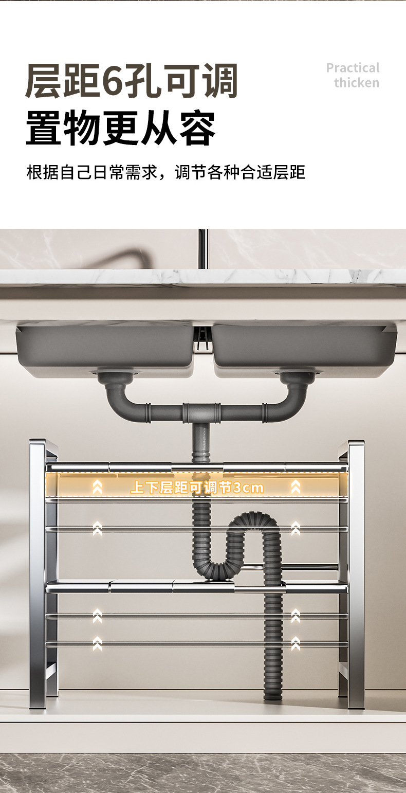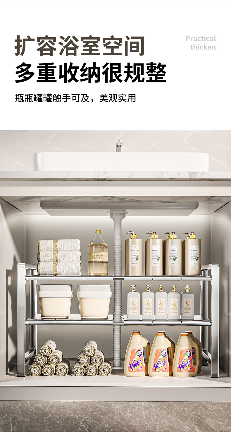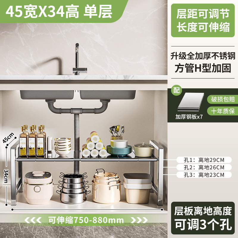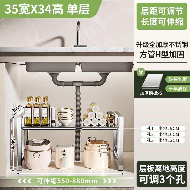 스테인리스 주방 싱크대 하부 수납 선반 다층 선반 캐비닛 내부 레이어드 냄비 선반 수납 좁은 틈 확장형