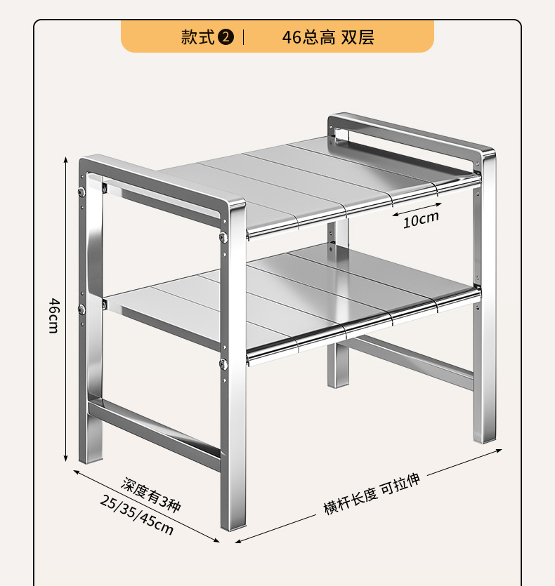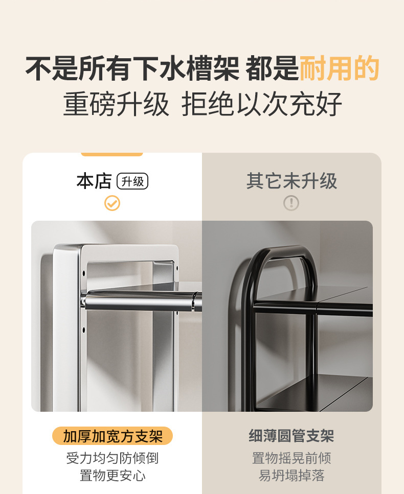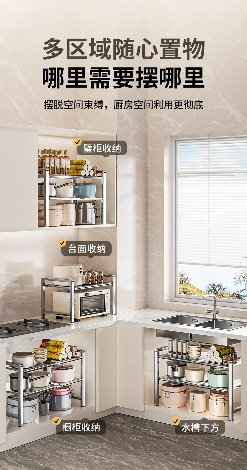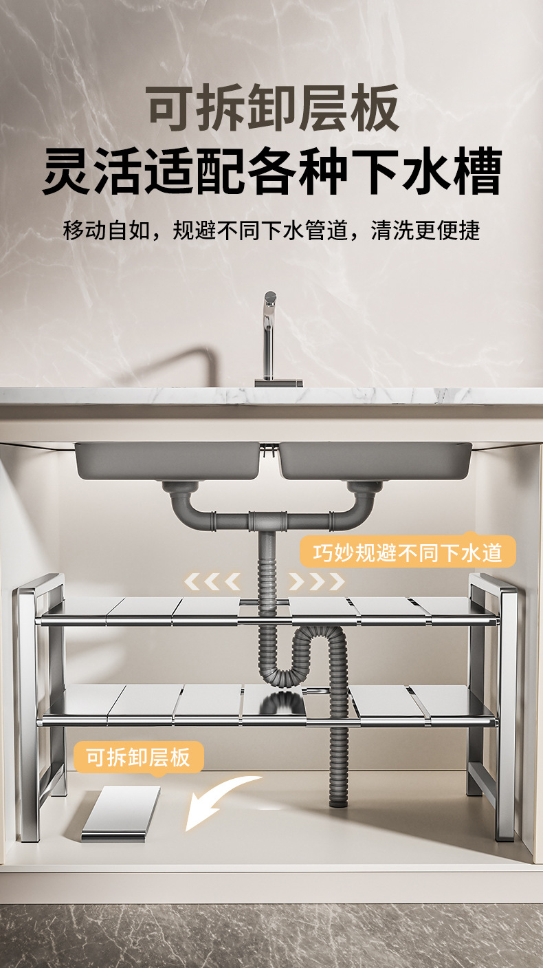 스테인리스 주방 싱크대 하부 수납 선반 다층 선반 캐비닛 내부 레이어드 냄비 선반 수납 좁은 틈 확장형스토어 가기