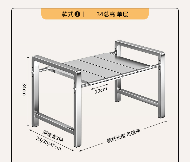 • 단층 4패널 텔레스코픽 45-55CM [깊이 35] - 총 높이 34
