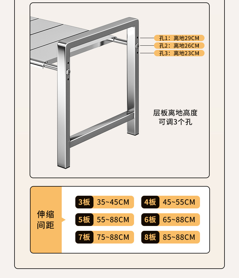 • 단층 7패널 텔레스코픽 55-88CM [깊이 25] - 총 높이 34