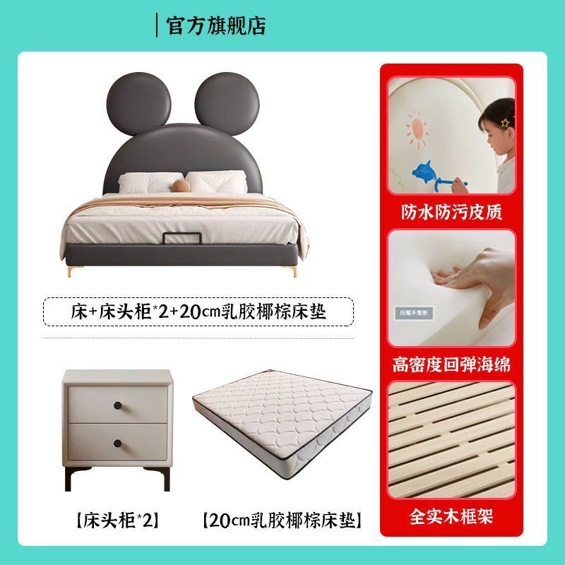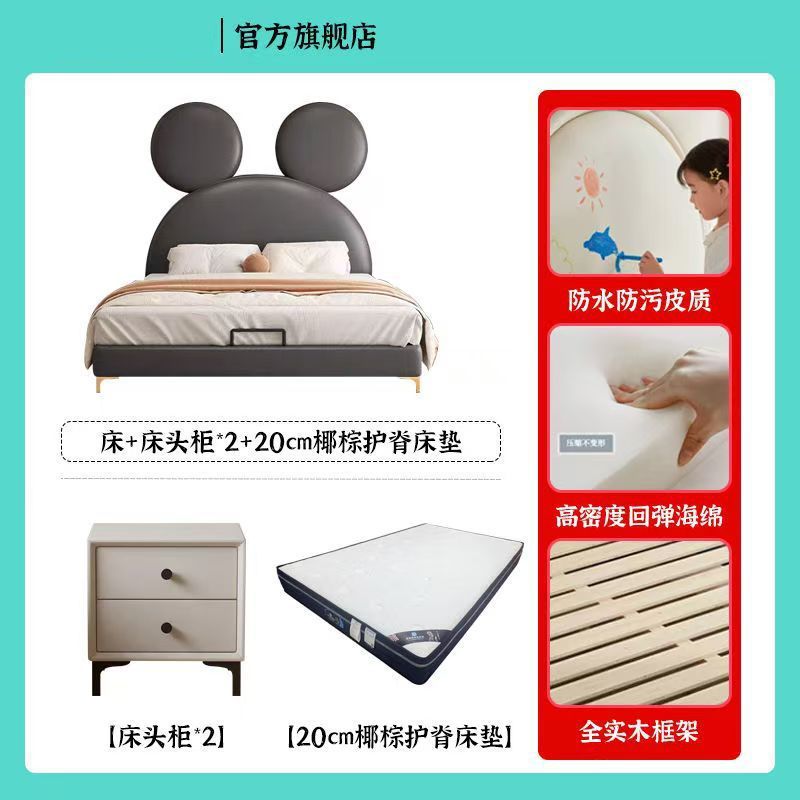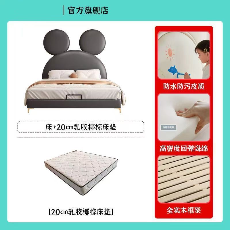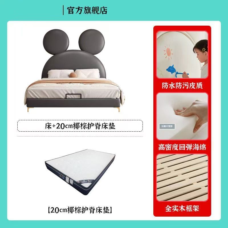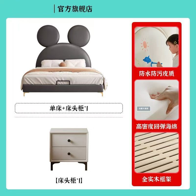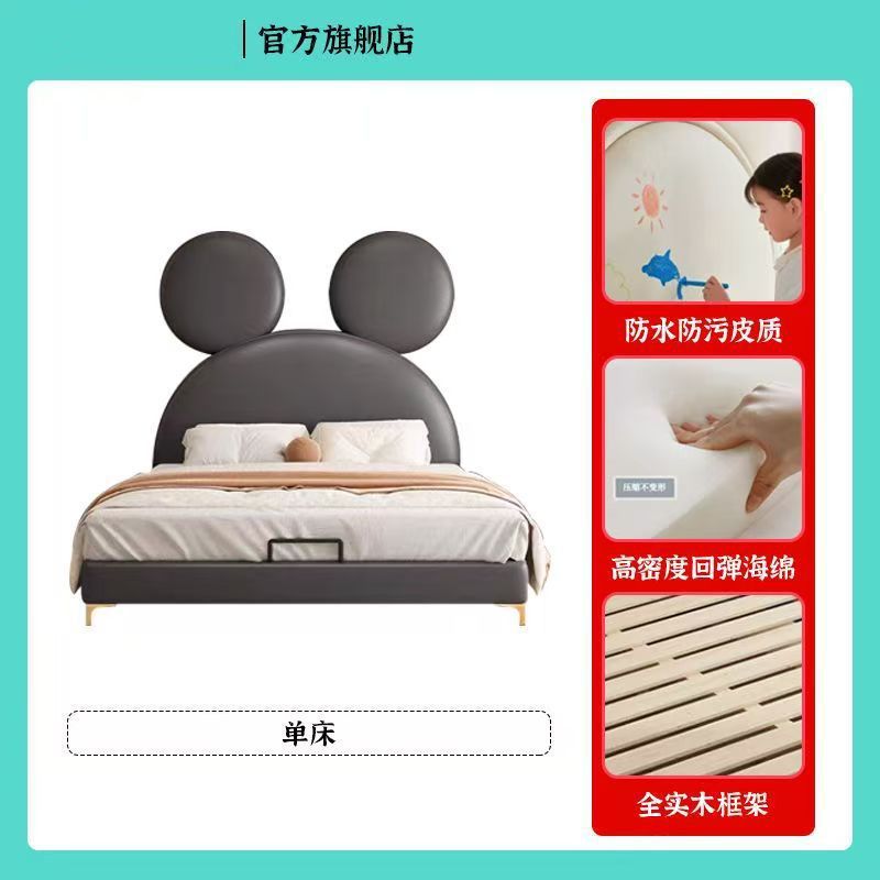 인터넷 연예인 어린이 침대 소년 미키 침대 작은 침대 싱글 침대 간단한 현대 만화 침대 크리 에이 티브 미키 마우스 가죽 침대스토어 가기