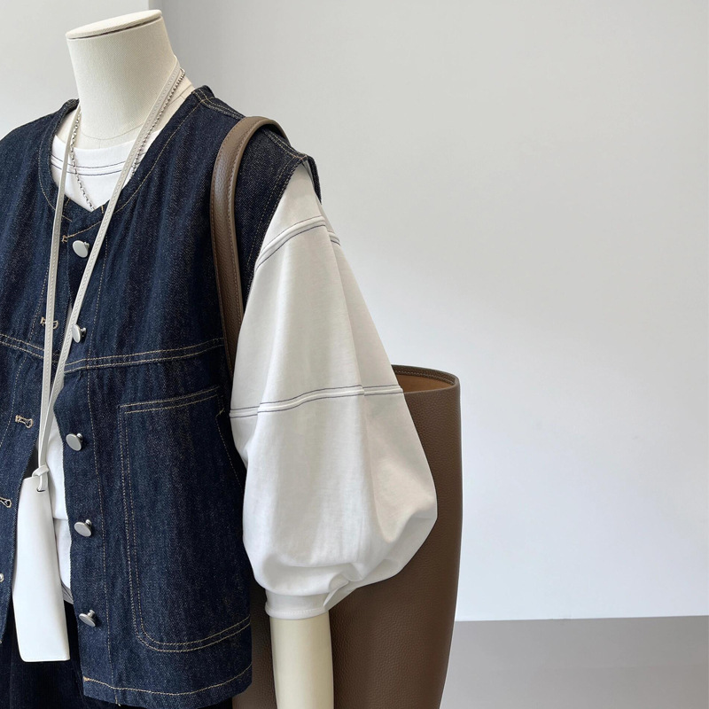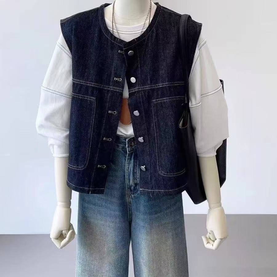홍콩 스타일 복고풍 레이어드 슬리밍 데님 조끼 여성 봄 여름 새로운 고급 패션 민소매 조끼 재킷