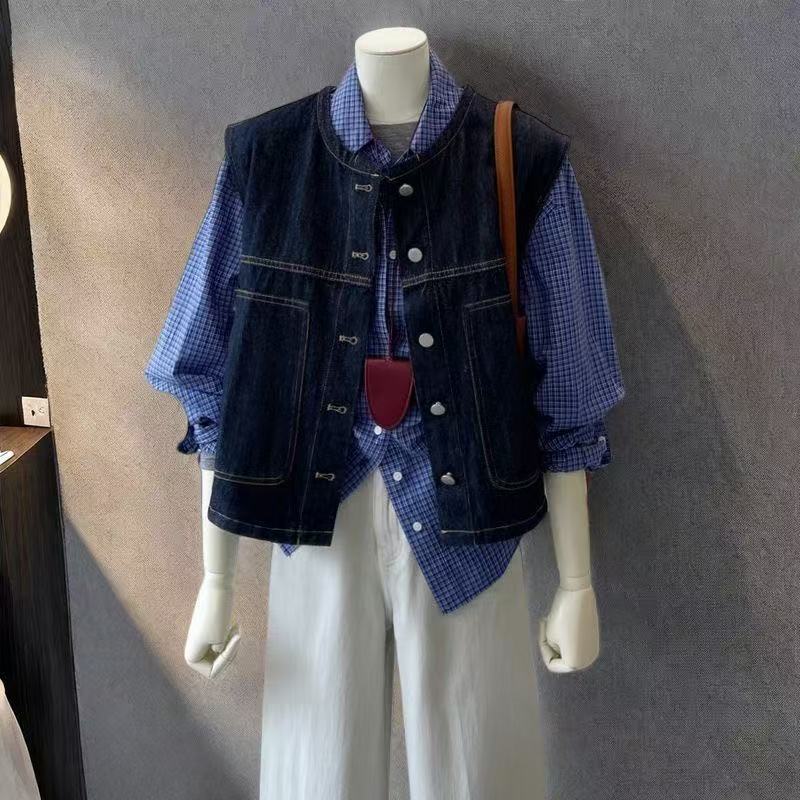 홍콩 스타일 복고풍 레이어드 슬리밍 데님 조끼 여성 봄 여름 새로운 고급 패션 민소매 조끼 재킷스토어 가기
