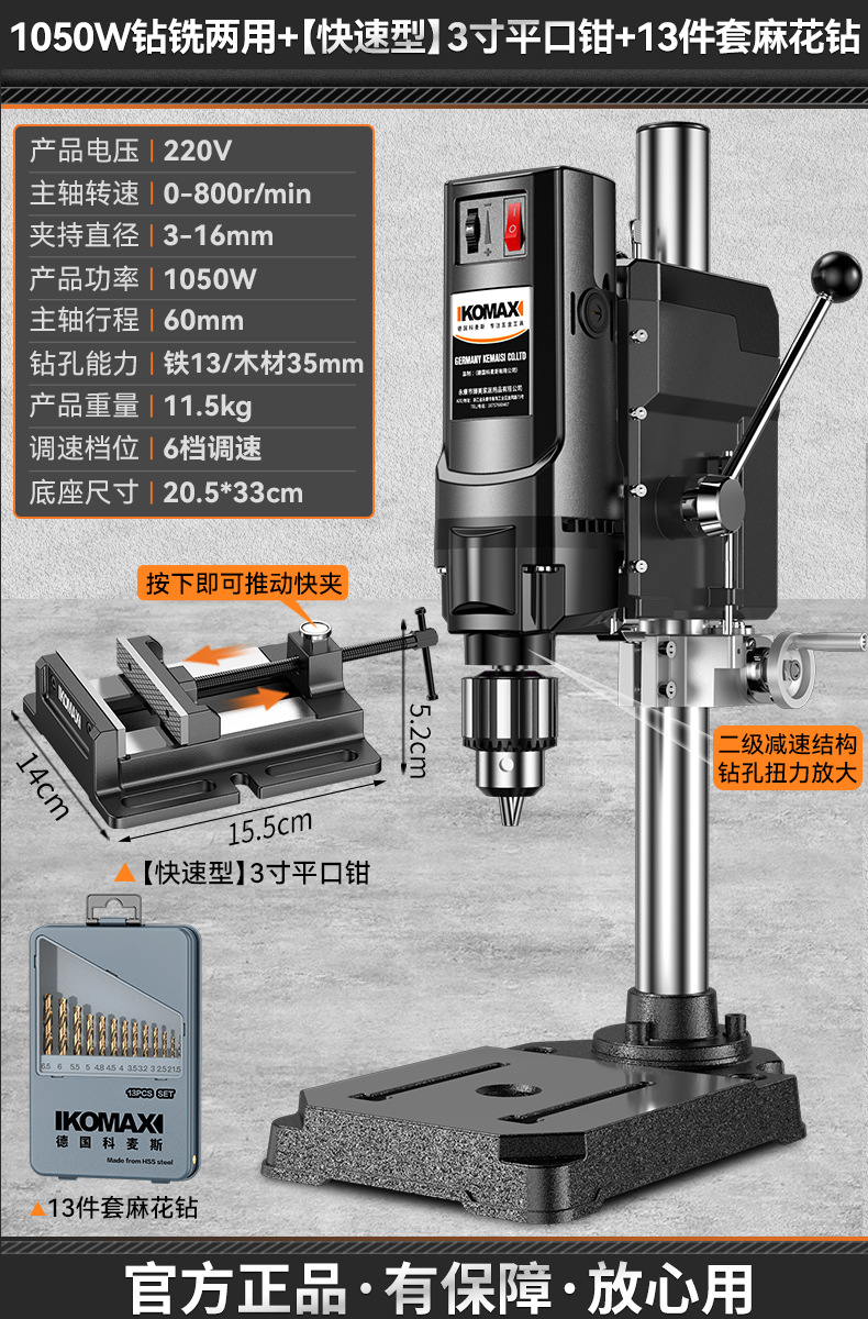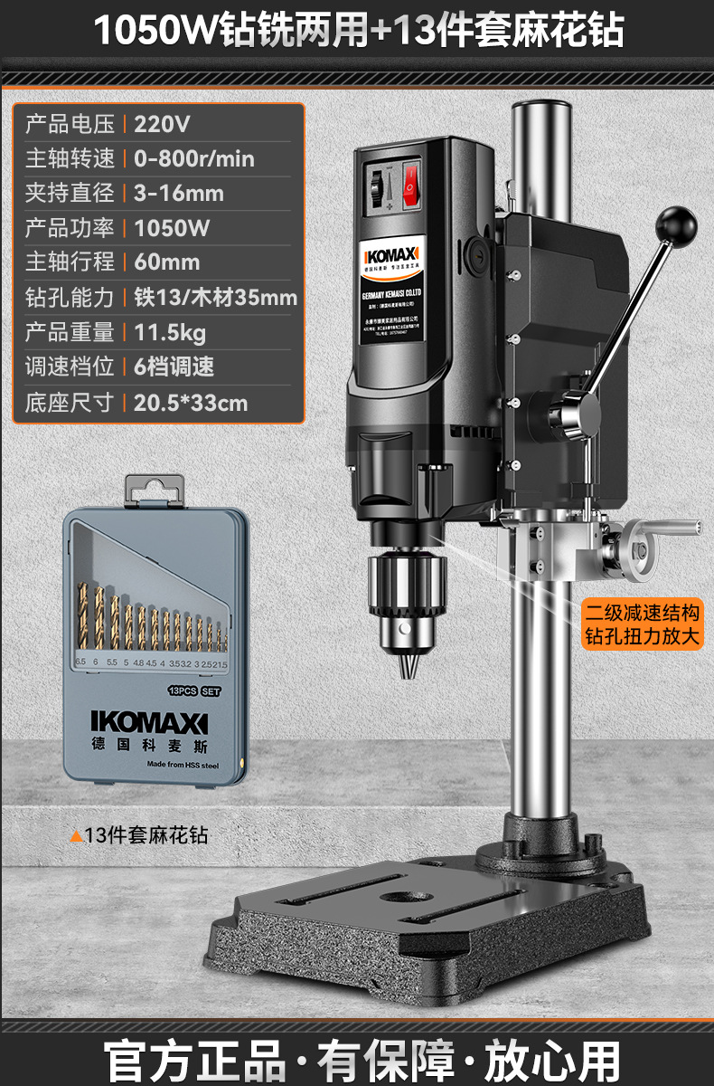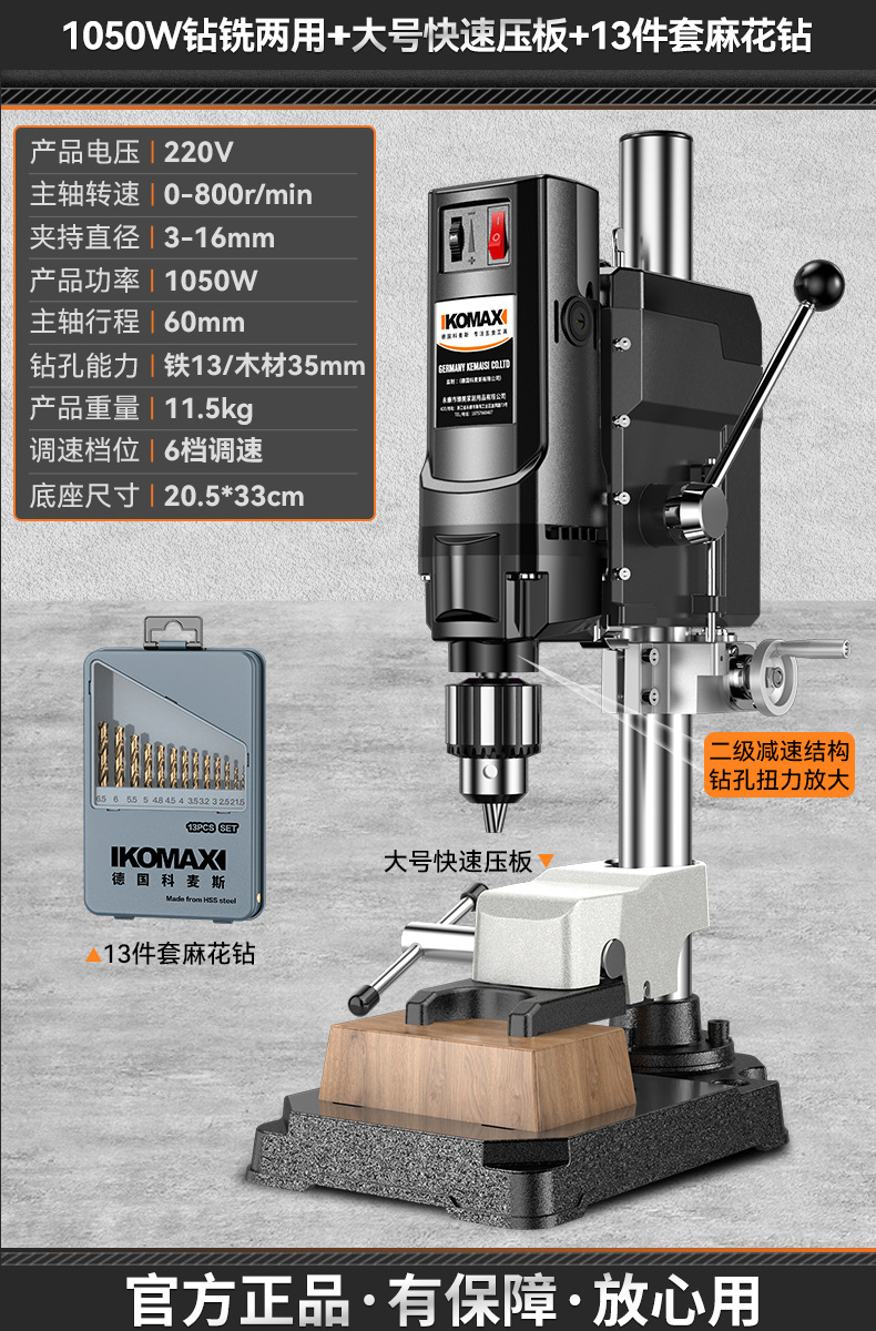 • 1050W 드릴링 및 밀링 + 대형 고속 압력판 + 트위스트 드릴 13개 세트