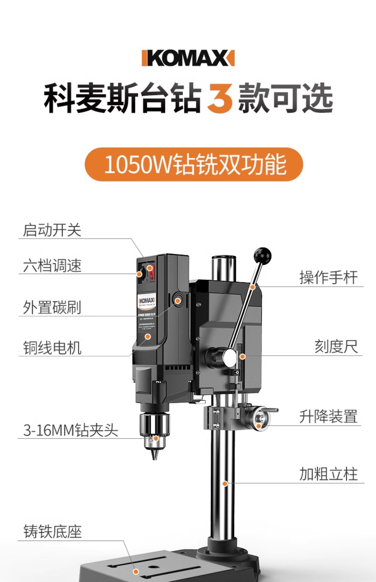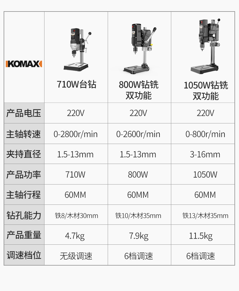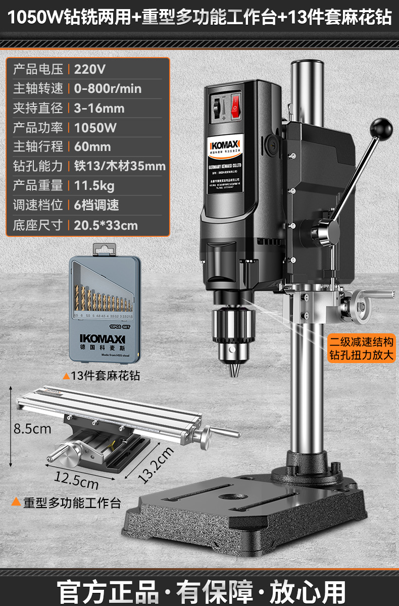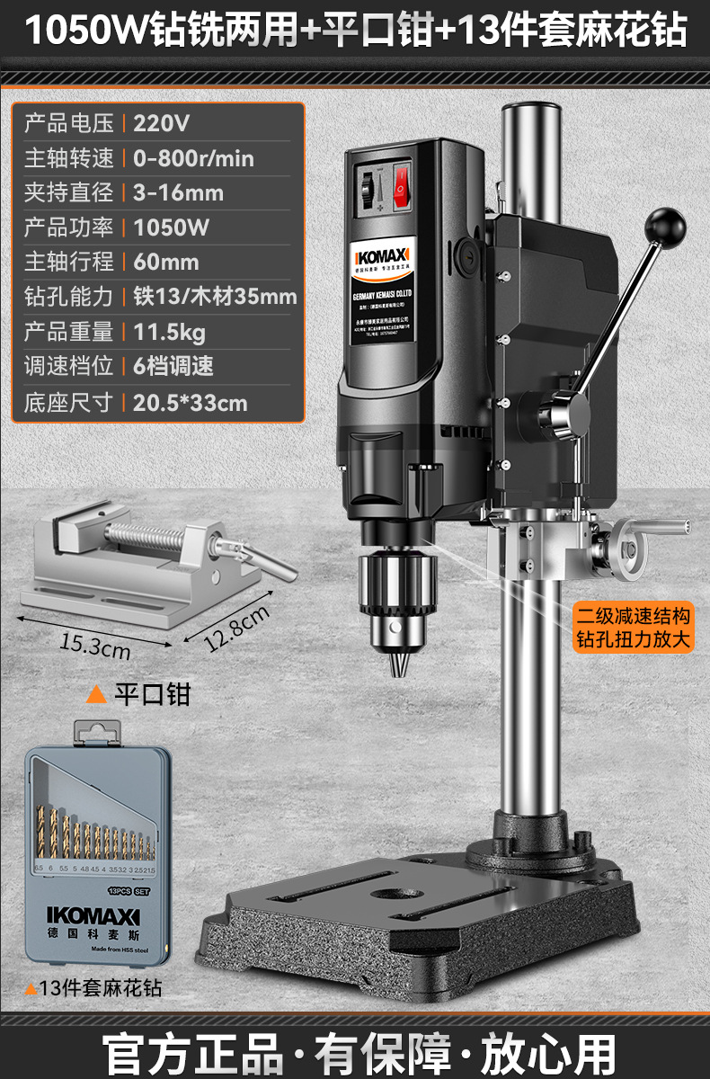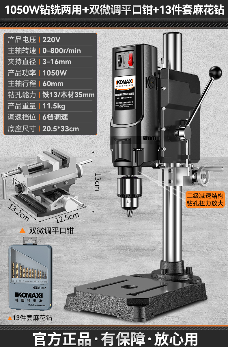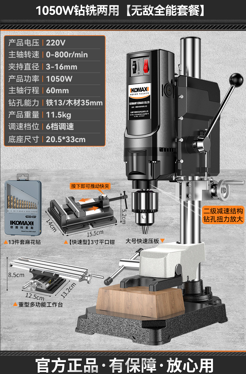 • 1050W 드릴링 및 밀링 + 견고한 다기능 작업대 + 트위스트 드릴 13개 세트