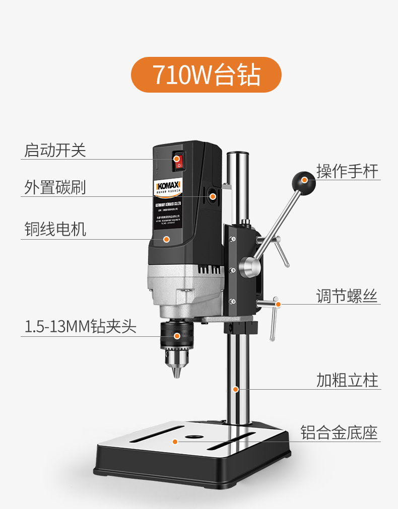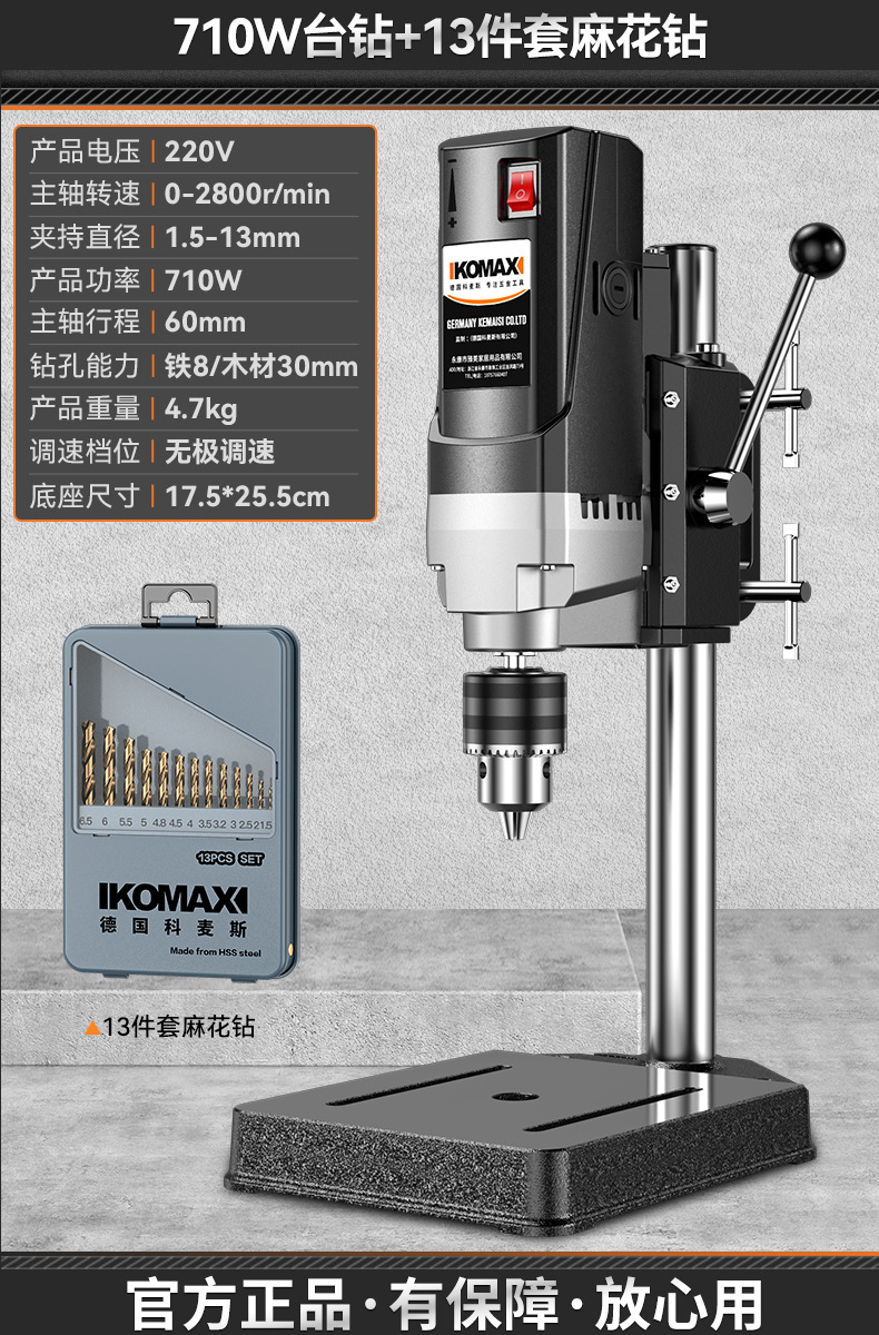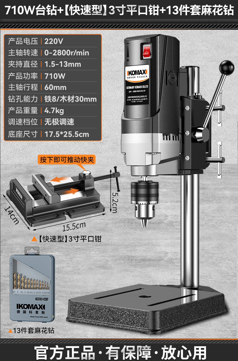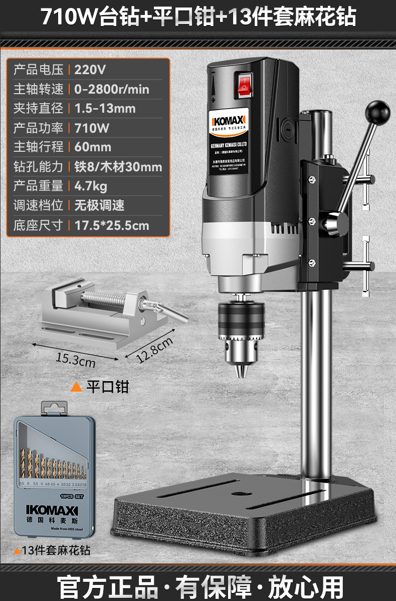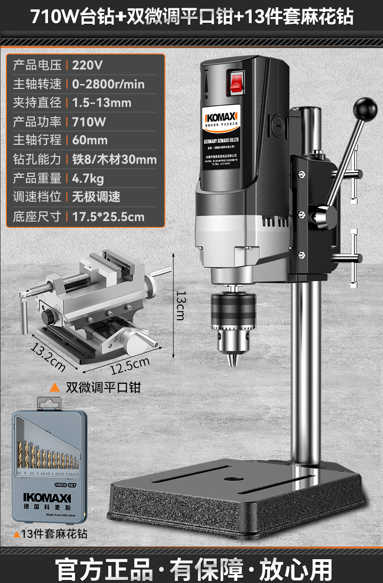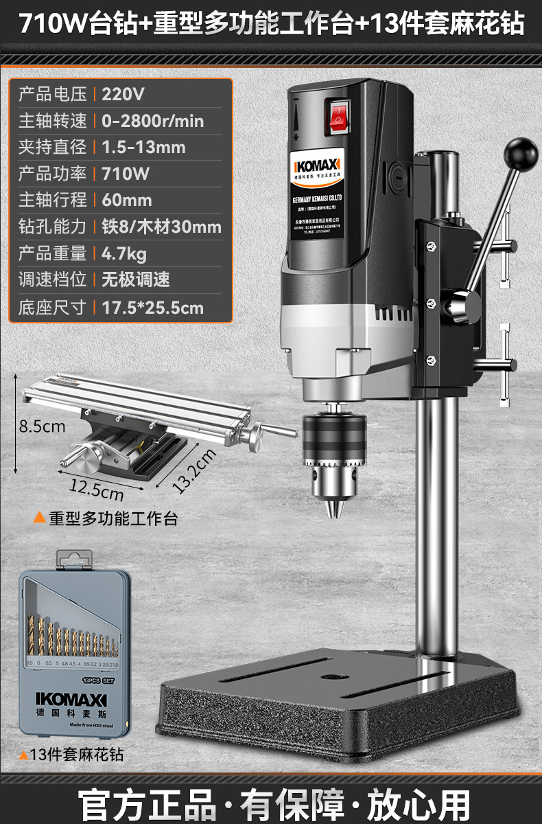 • 710W 벤치 드릴 + 견고한 다기능 작업대 + 트위스트 드릴 13개 세트