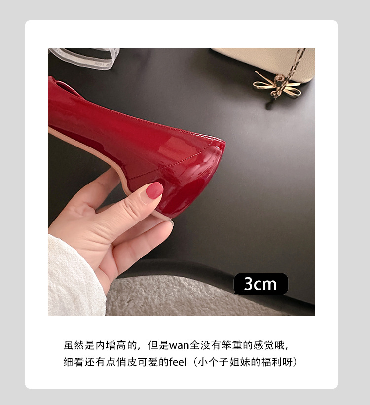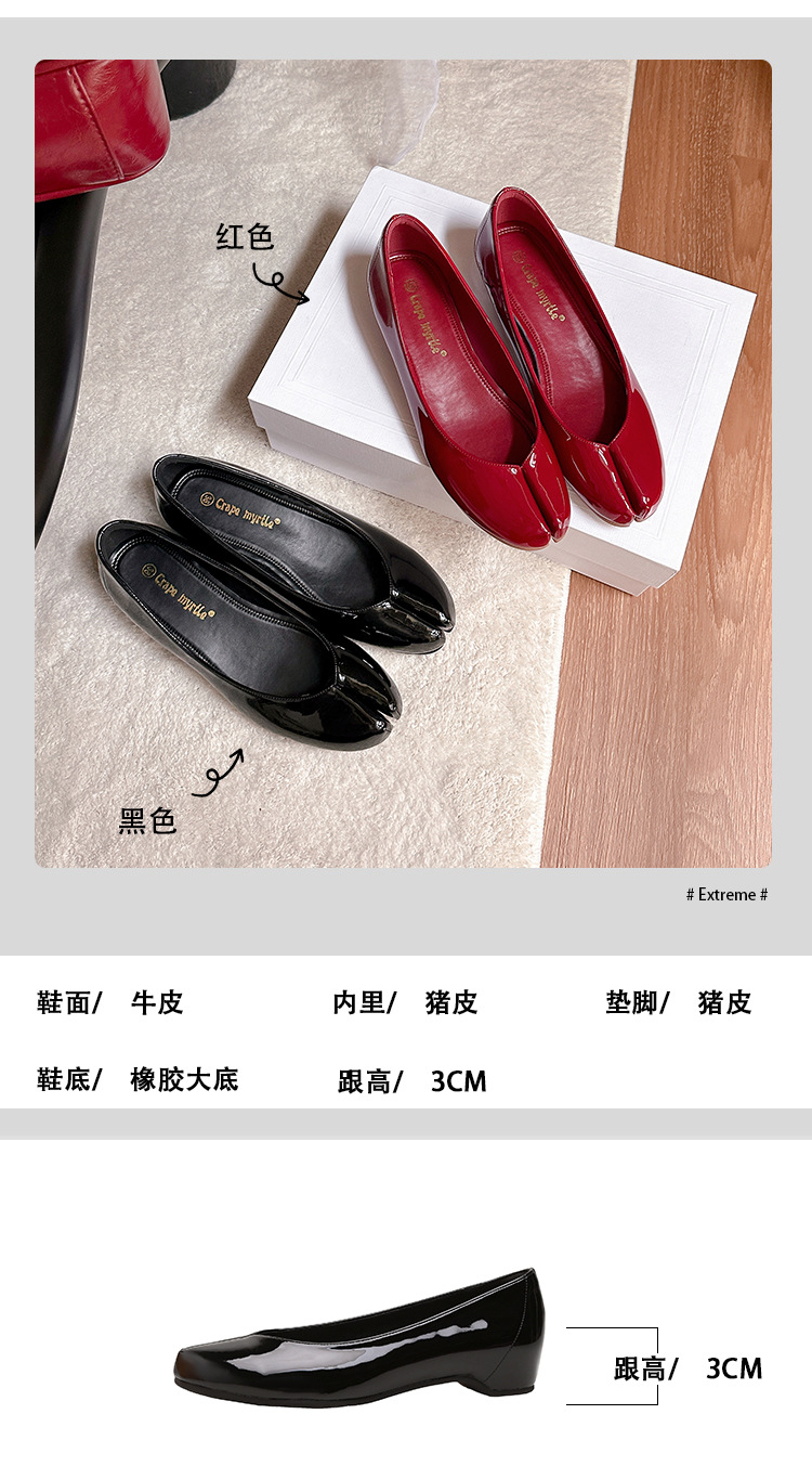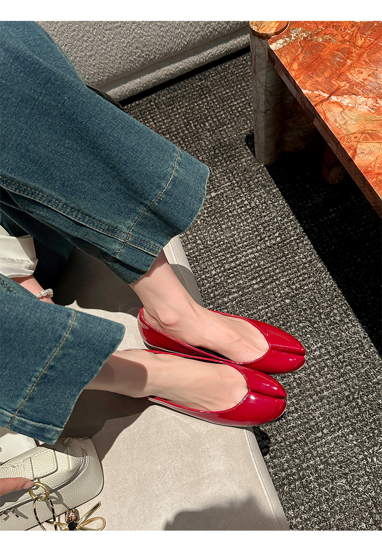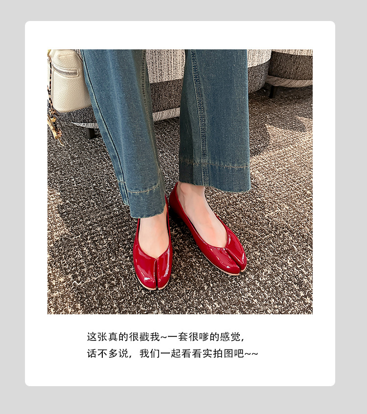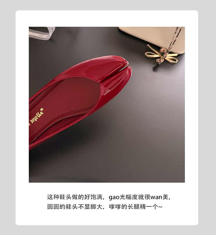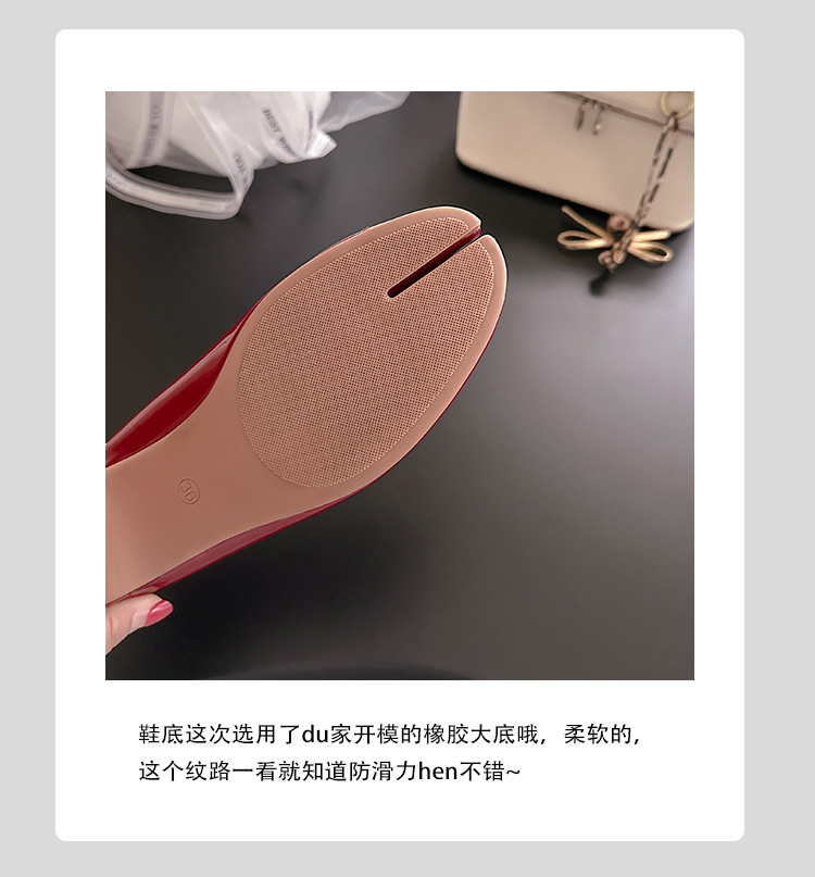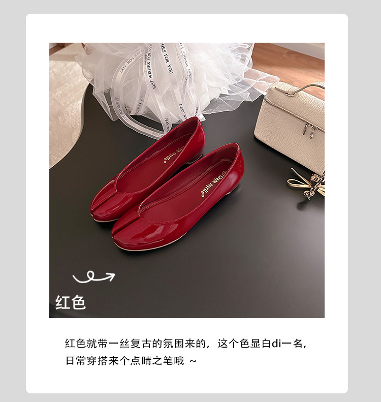 같은 스타일의 레드 바닥 2cm 키높이 돼지발가락 스타일 슈즈, 여성용 신상 여름 레트로 발레 얕은굽 싱글 슈즈스토어 가기
