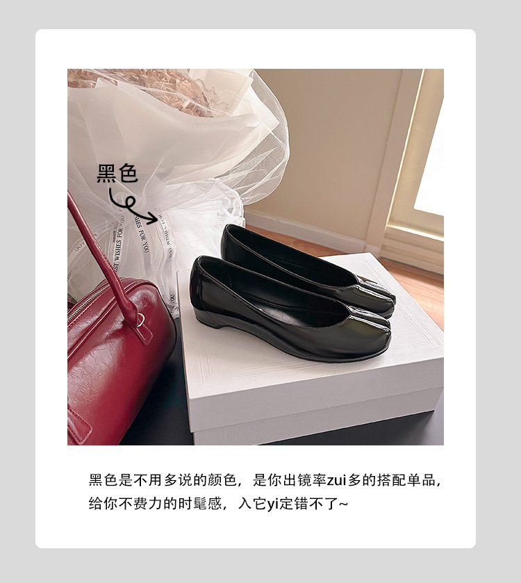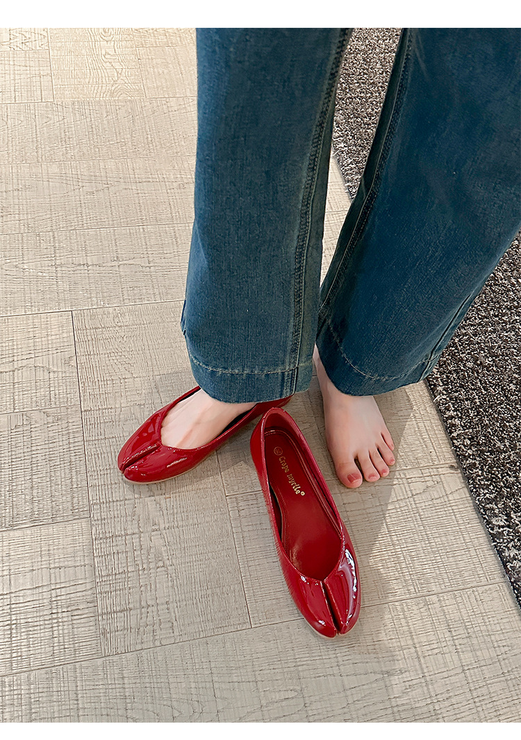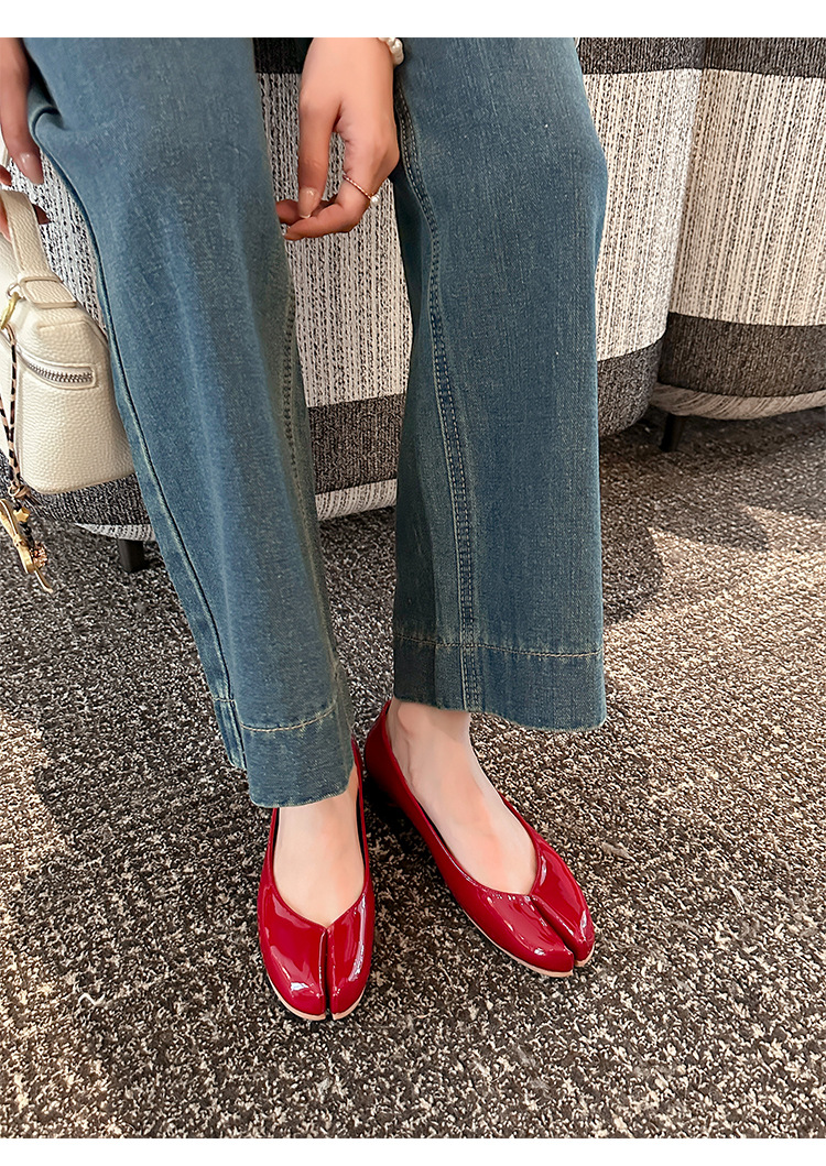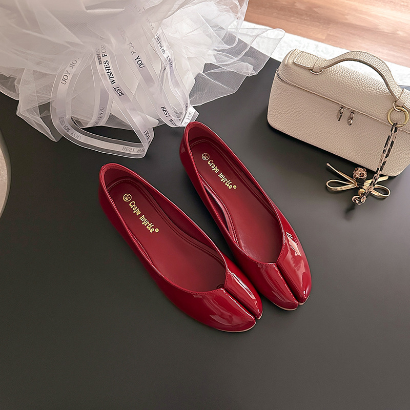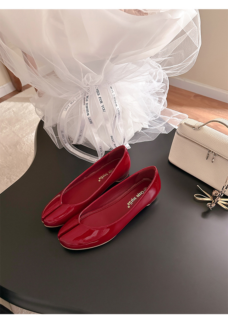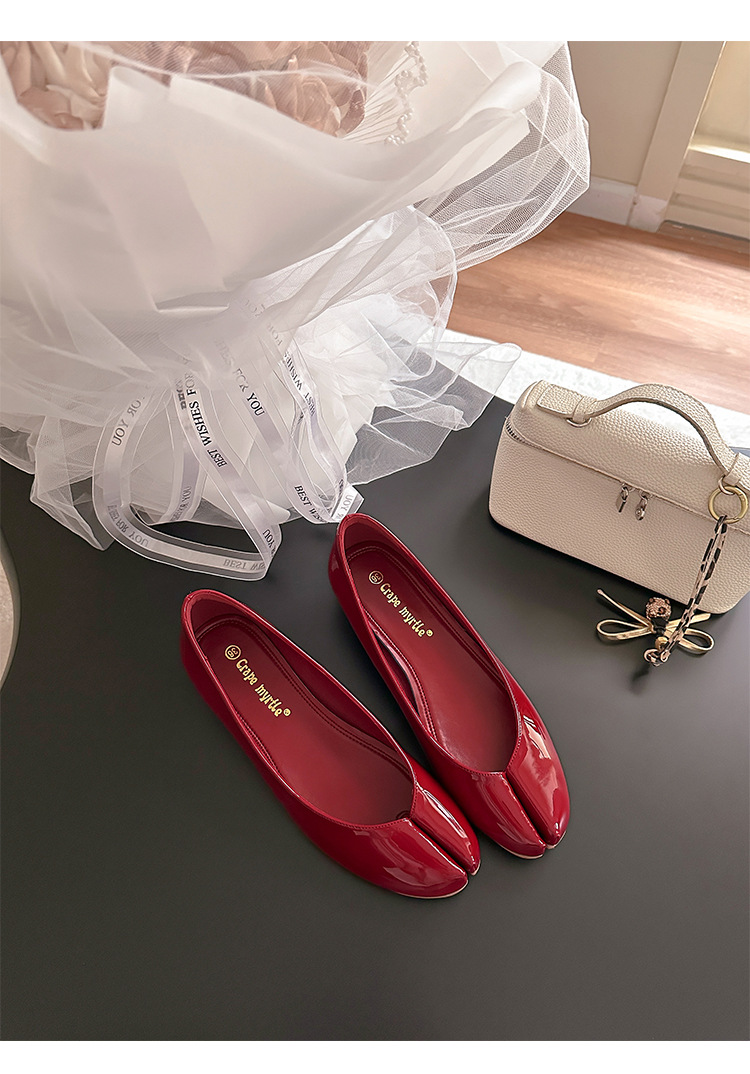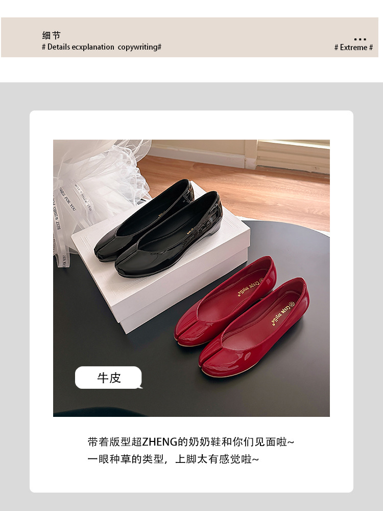 같은 스타일의 레드 바닥 2cm 키높이 돼지발가락 스타일 슈즈, 여성용 신상 여름 레트로 발레 얕은굽 싱글 슈즈스토어 가기
