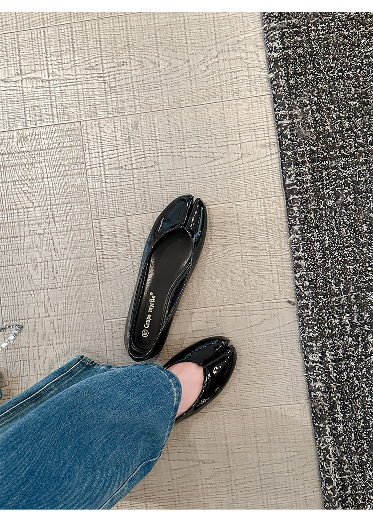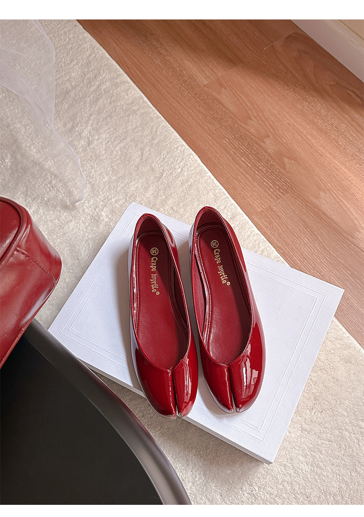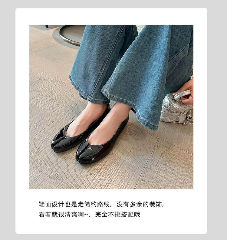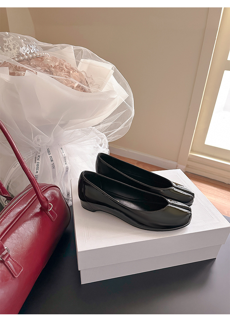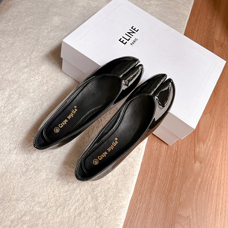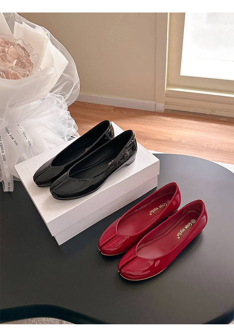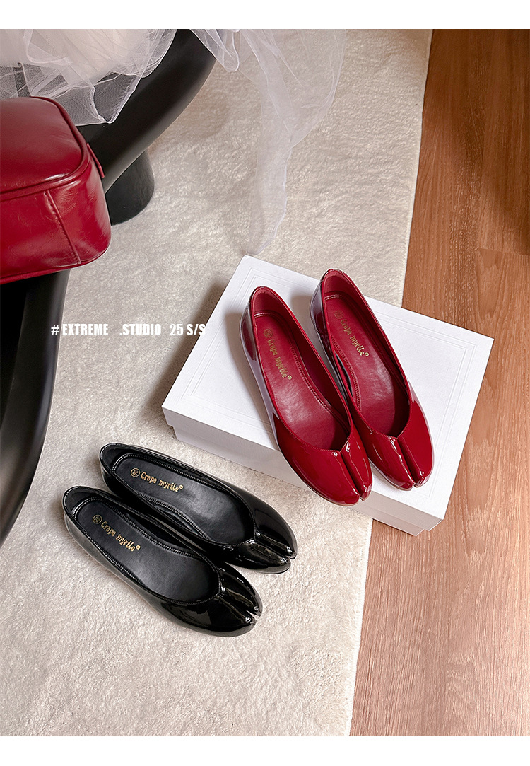 같은 스타일의 레드 바닥 2cm 키높이 돼지발가락 스타일 슈즈, 여성용 신상 여름 레트로 발레 얕은굽 싱글 슈즈스토어 가기