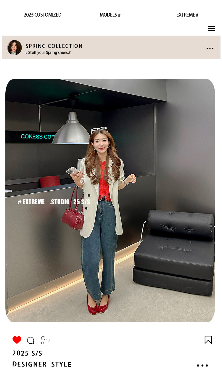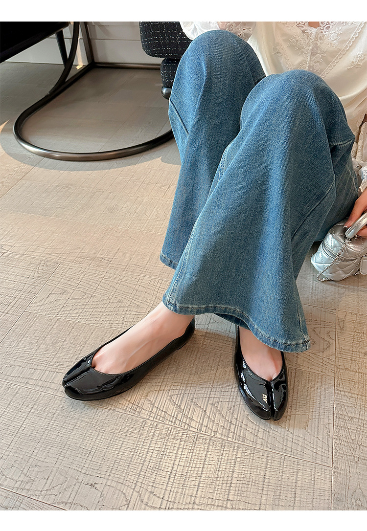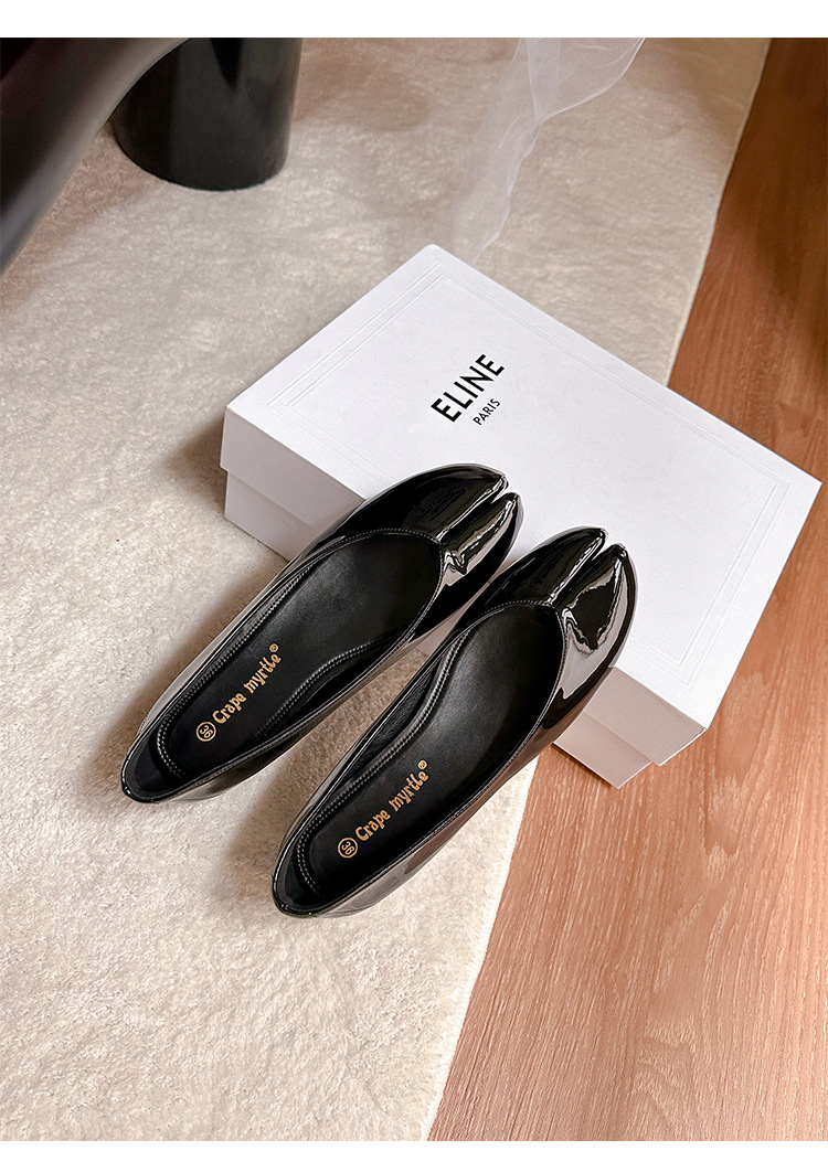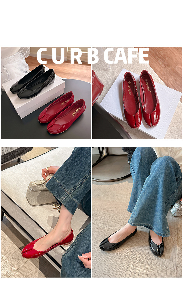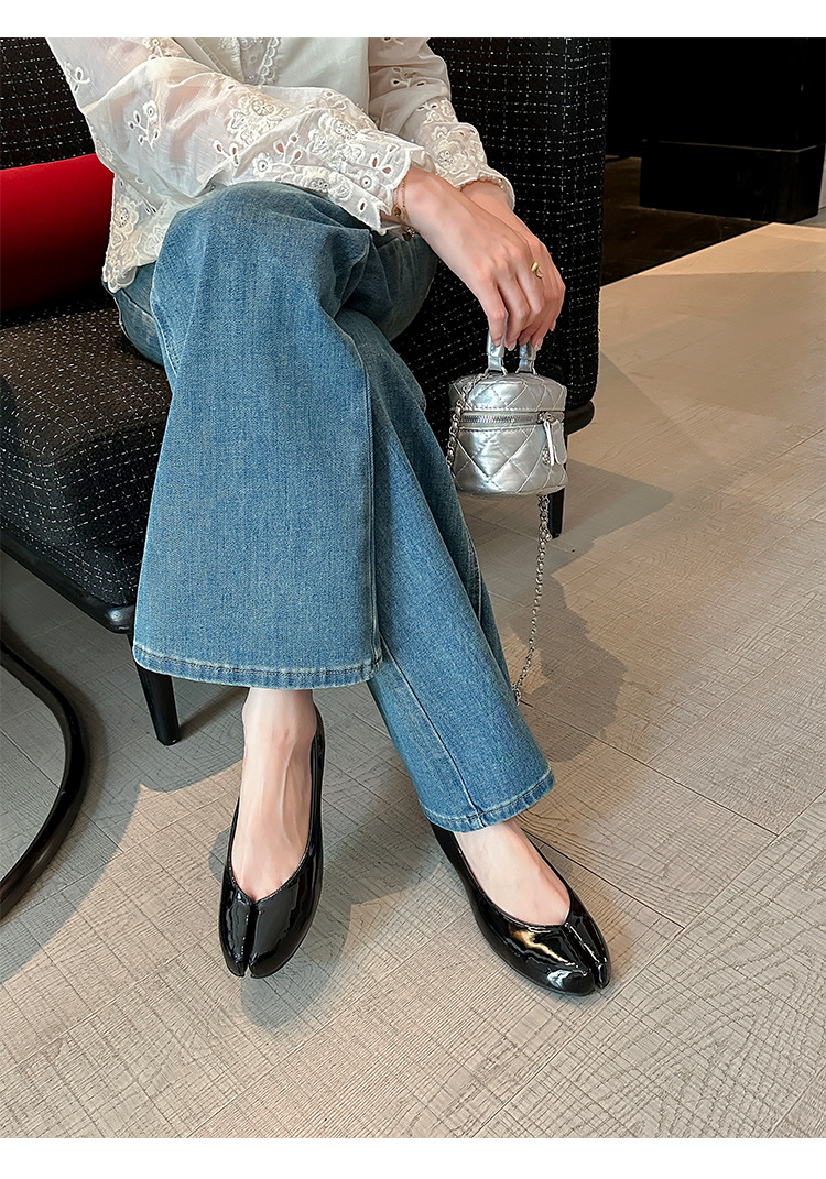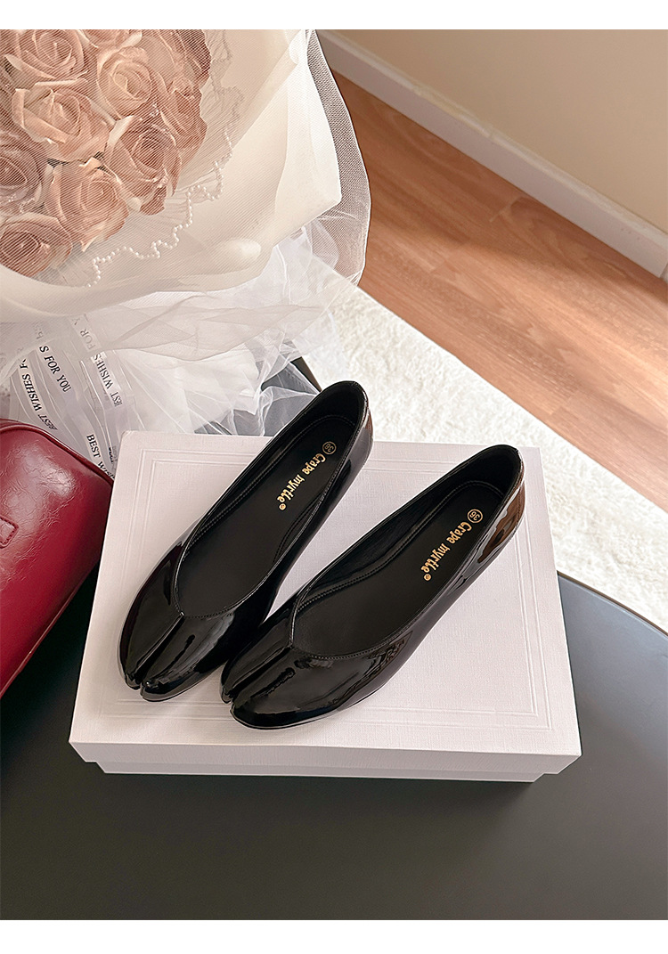 같은 스타일의 레드 바닥 2cm 키높이 돼지발가락 스타일 슈즈, 여성용 신상 여름 레트로 발레 얕은굽 싱글 슈즈스토어 가기