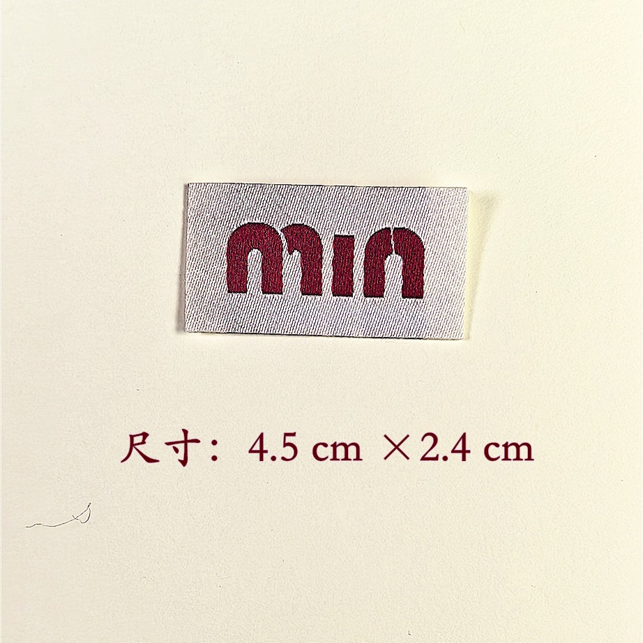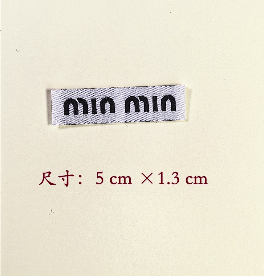 민민 - 미우미우 라벨 제조업체 직판 의류 상표 직조 라벨 맞춤 제작 신발 양말 옷 상자