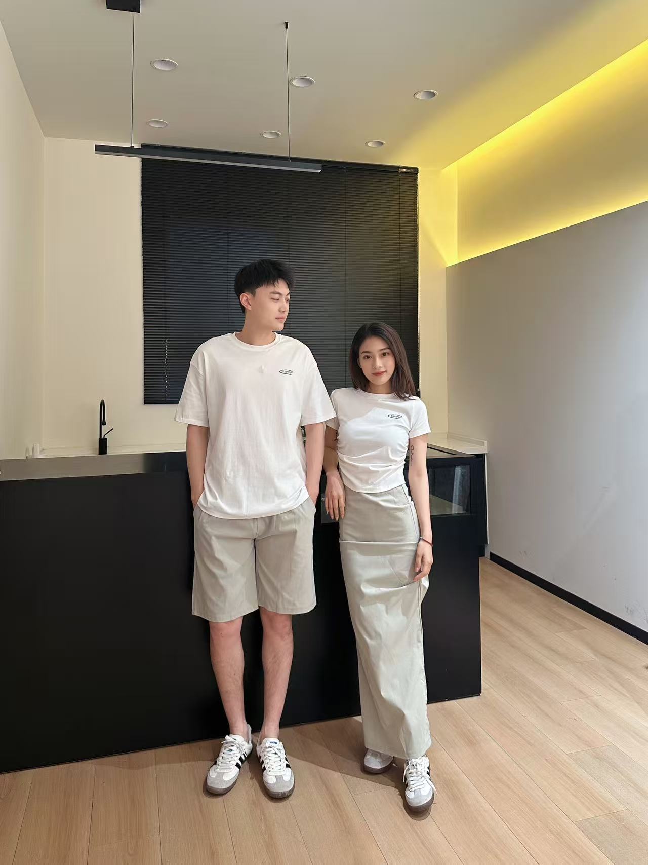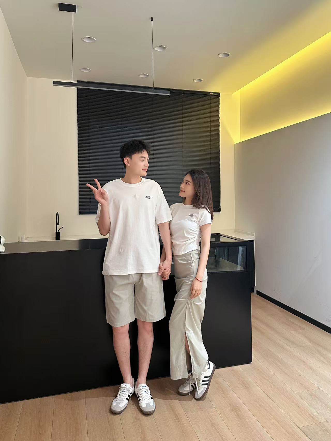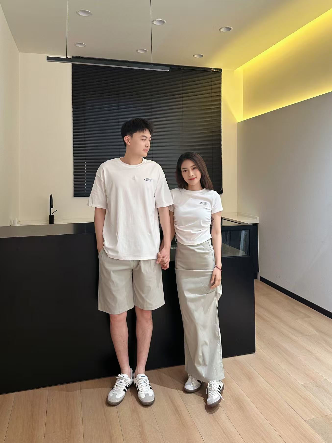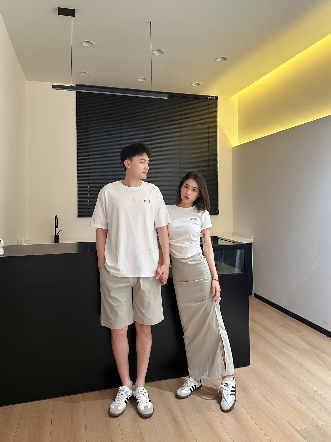 커플복 여름 긴 반바지 캐주얼 티셔츠 스커트 정장 남녀스토어 가기