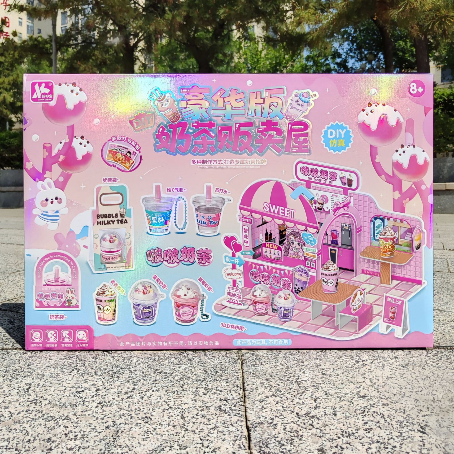 디럭스 버전 밀크티 판매 집 DIY 수제 밀크티 소녀 어린이 장난감 훈련 기관 선물 도매스토어 가기