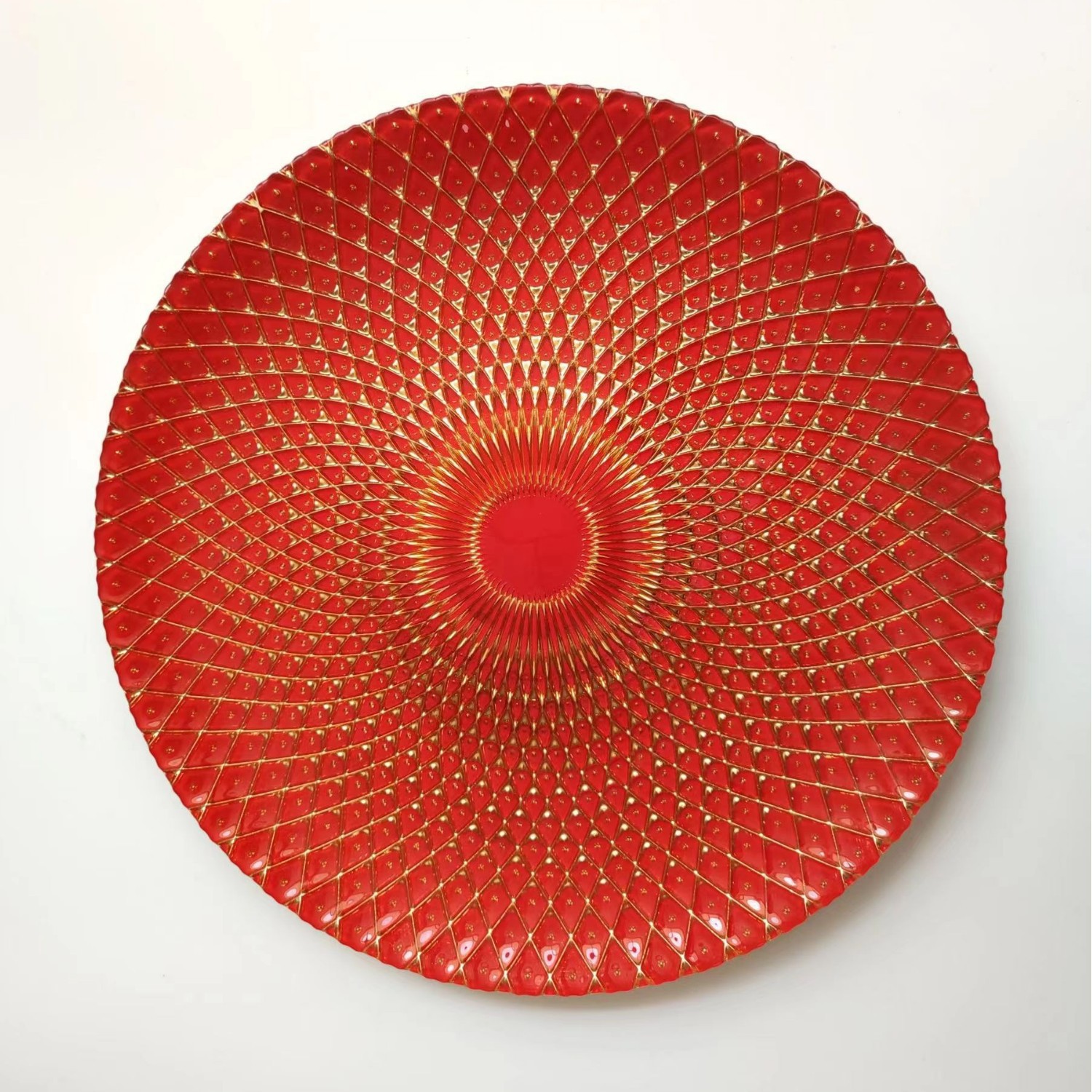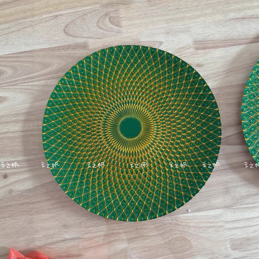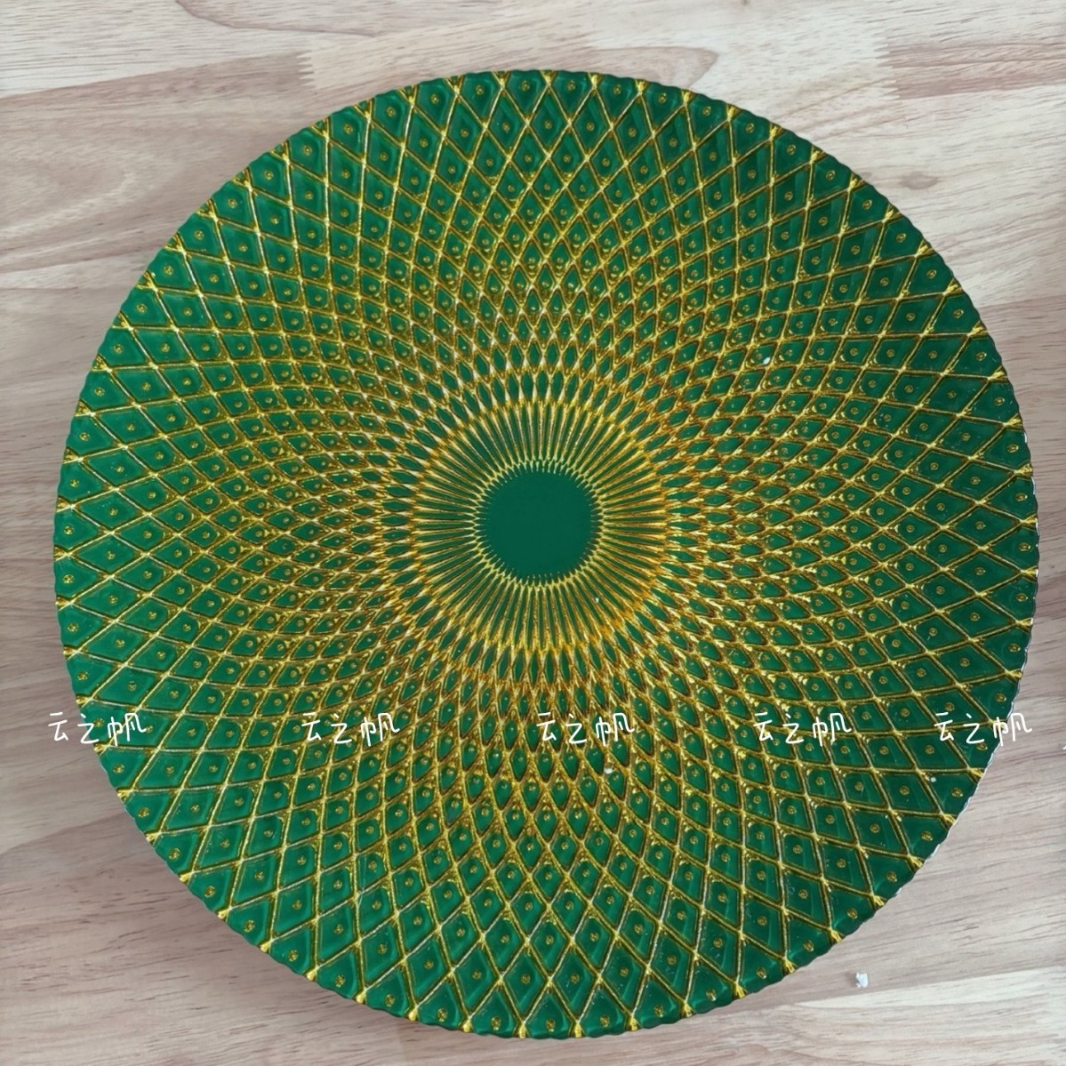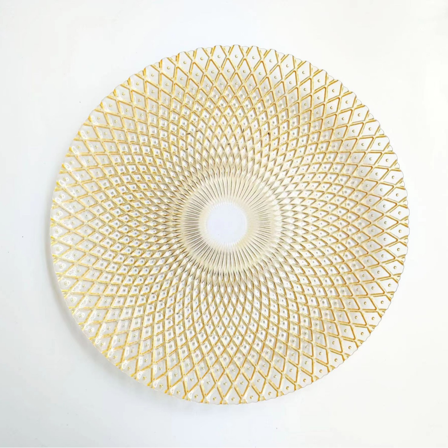 거실 새 그리드 플레이트 황금 공작 플레이트 호텔 레스토랑 플레이트 스테이크 아침 식사 플레이트 파인애플 패턴 유리 플레이트