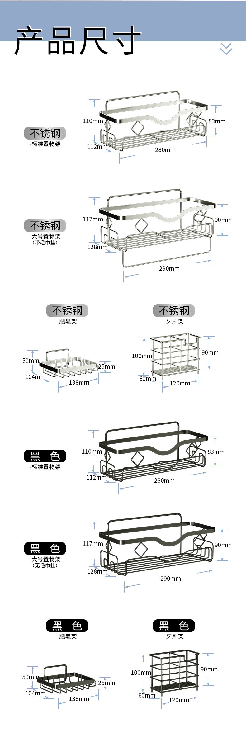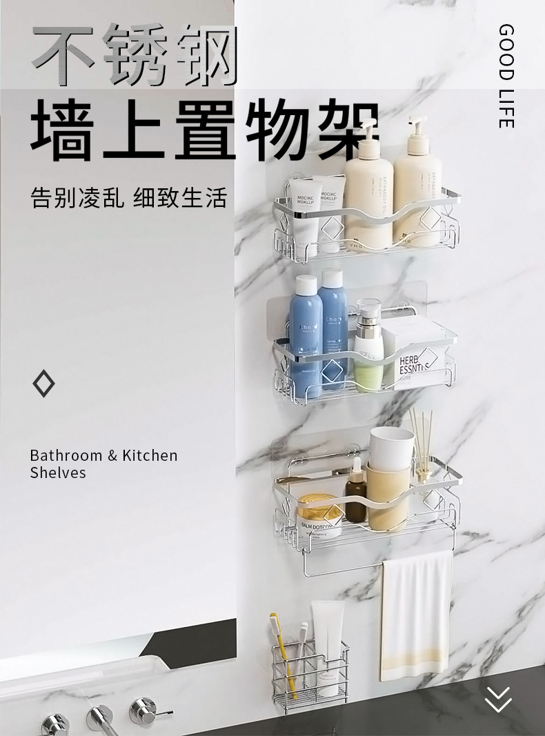 욕실 주방 수납 선반 화장실 비누 샤워젤 무타공 수납 선반 수건걸이 제조업체