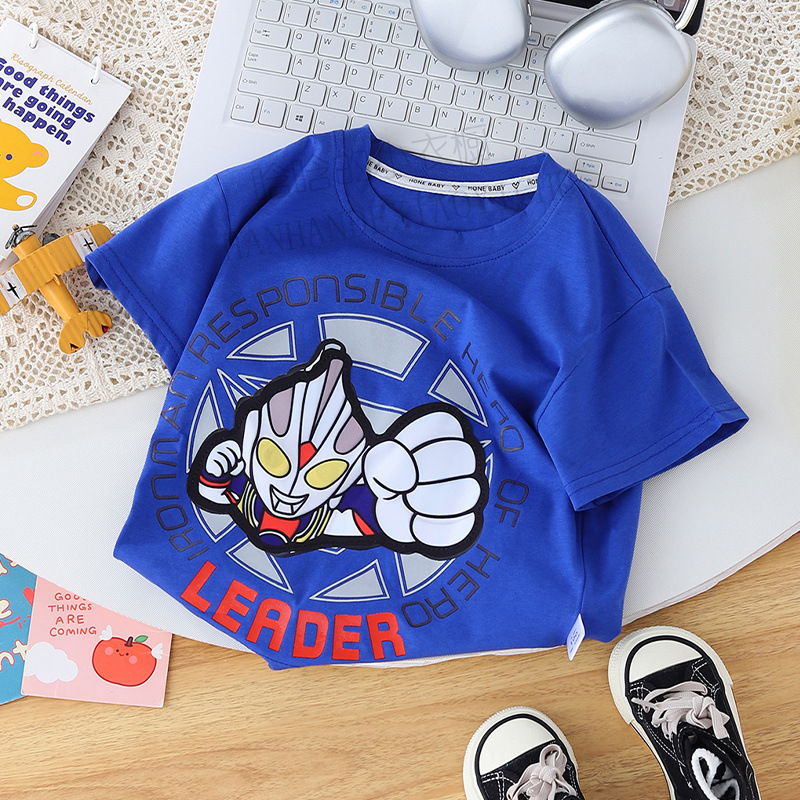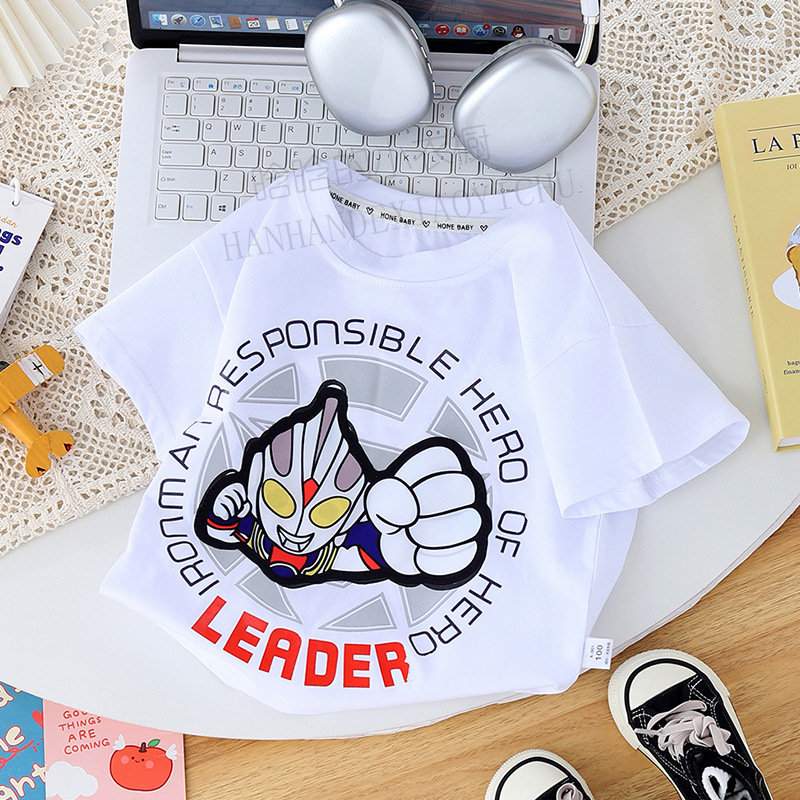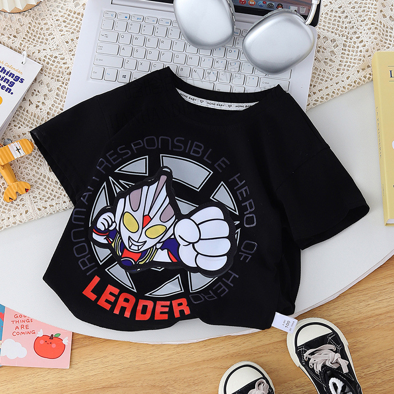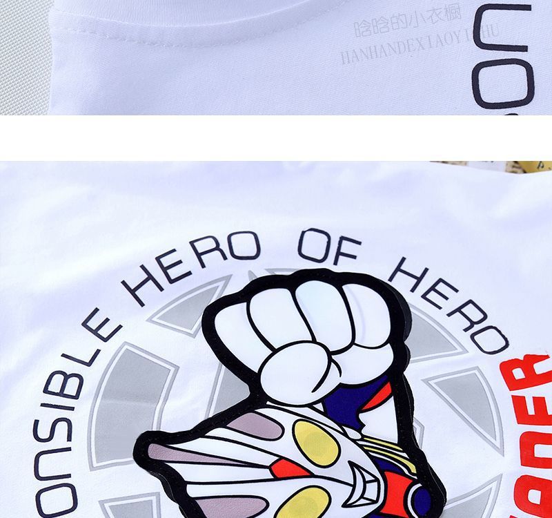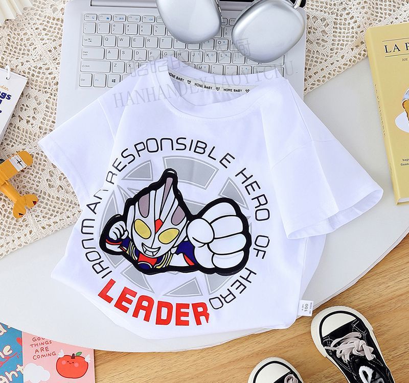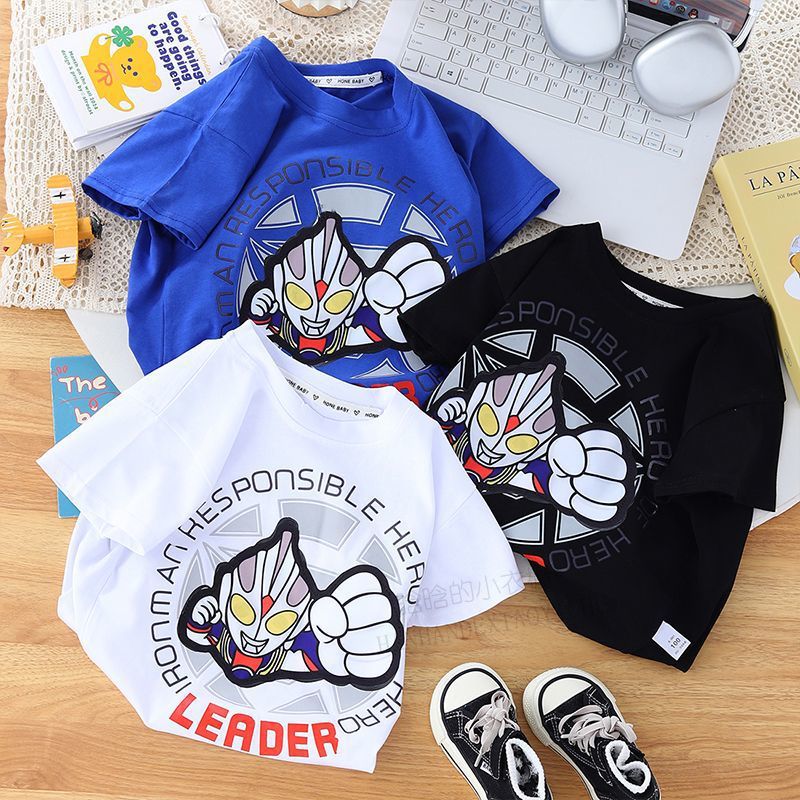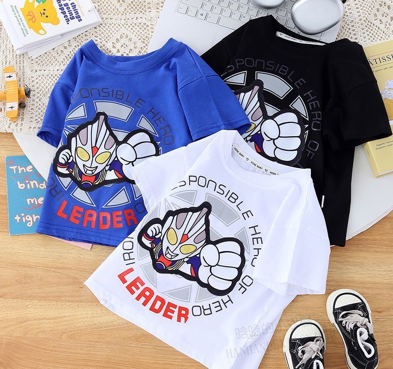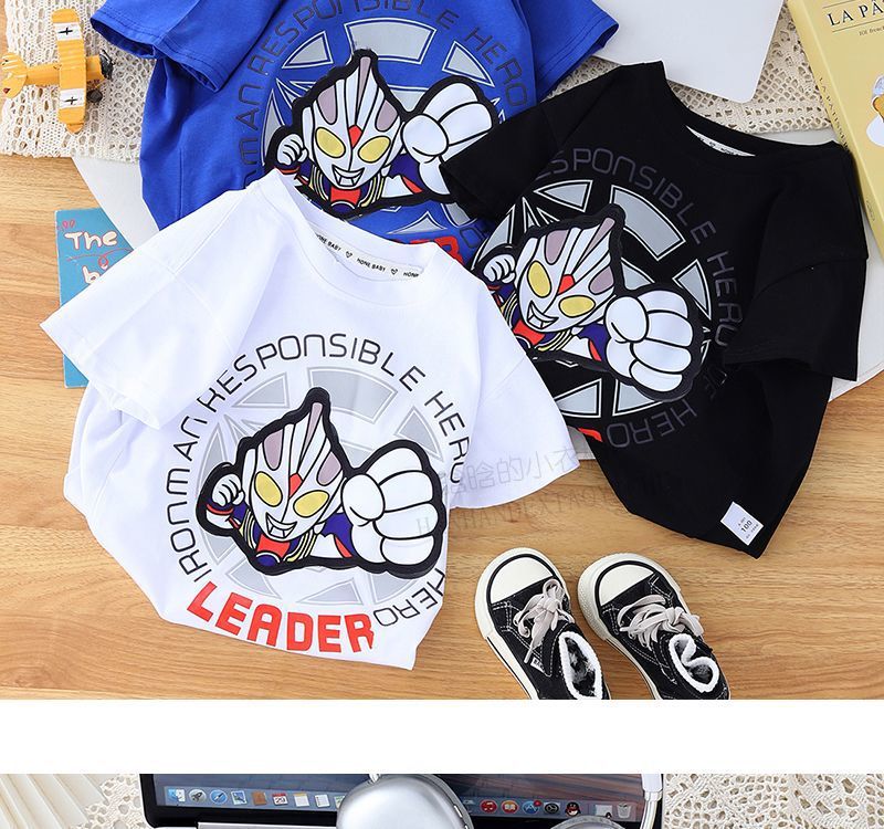 어린이 순면 조명 반팔 여름 얇은 소년 느슨한 캐주얼 탑 만화 울트라 맨 반팔 학생 티셔츠스토어 가기