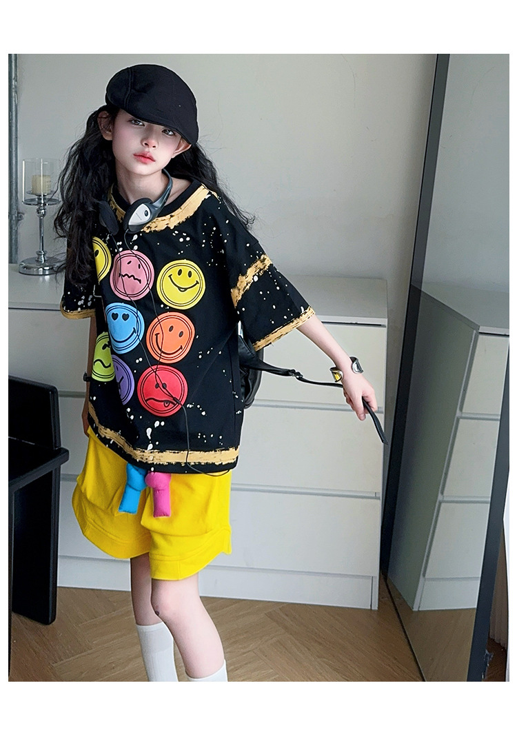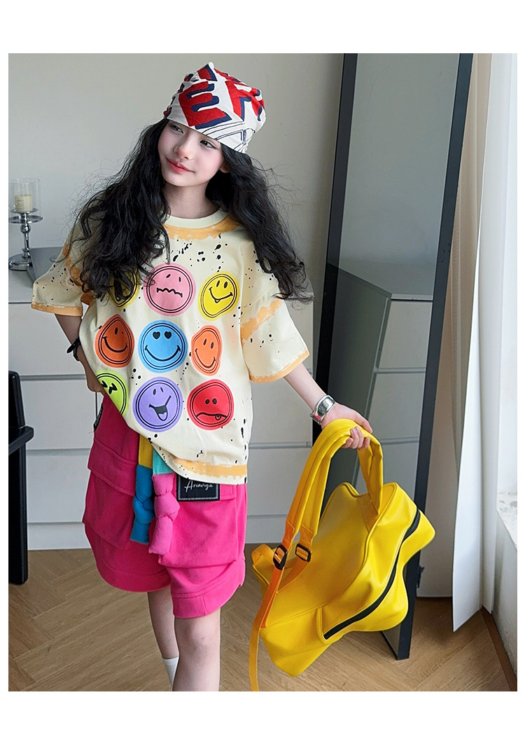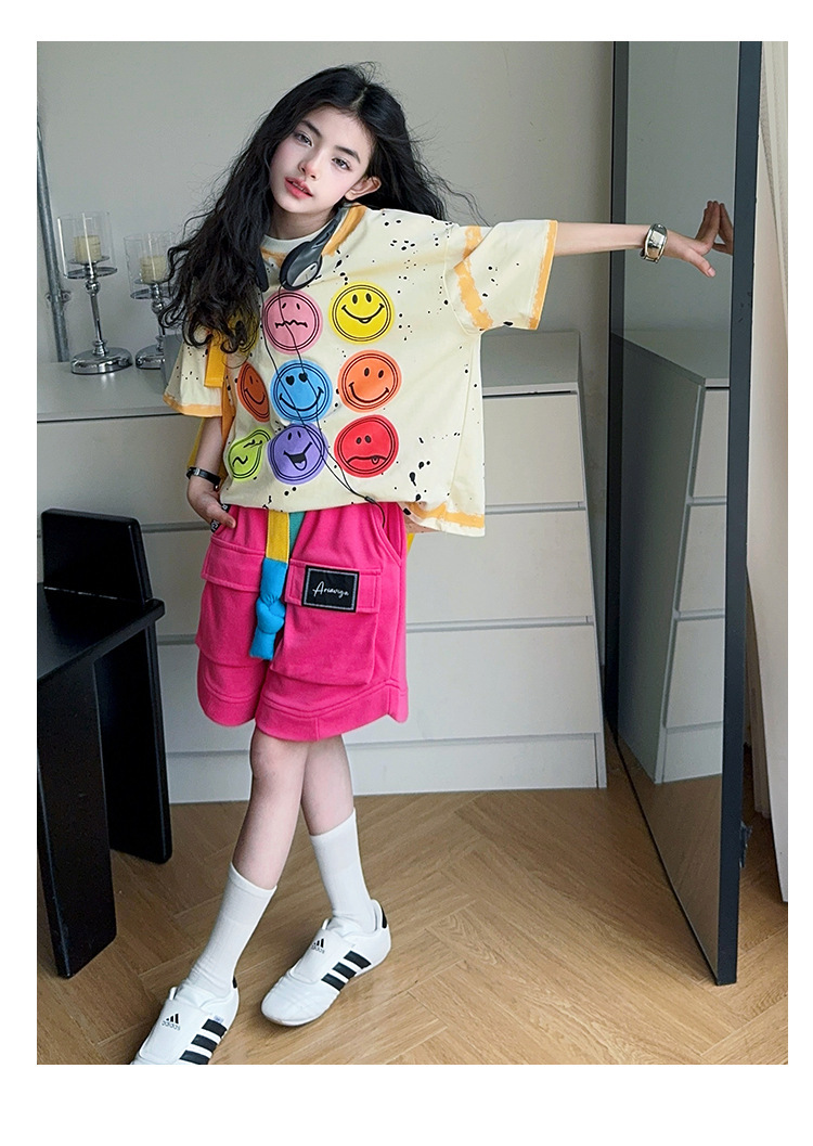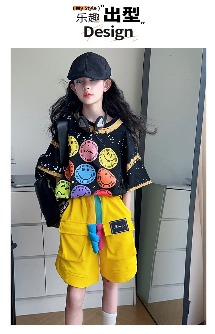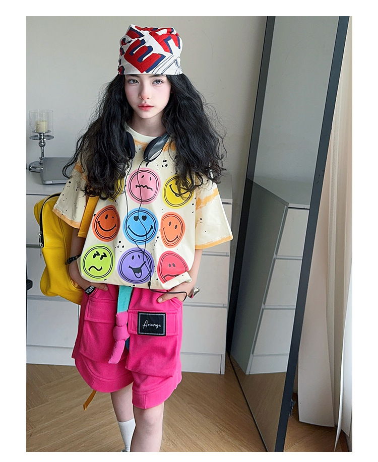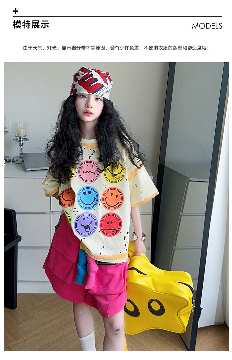여자 여름 2025 새로운 유행 느슨한 캐주얼 반팔 티셔츠 도파민 착용 반바지 정장 유행스토어 가기