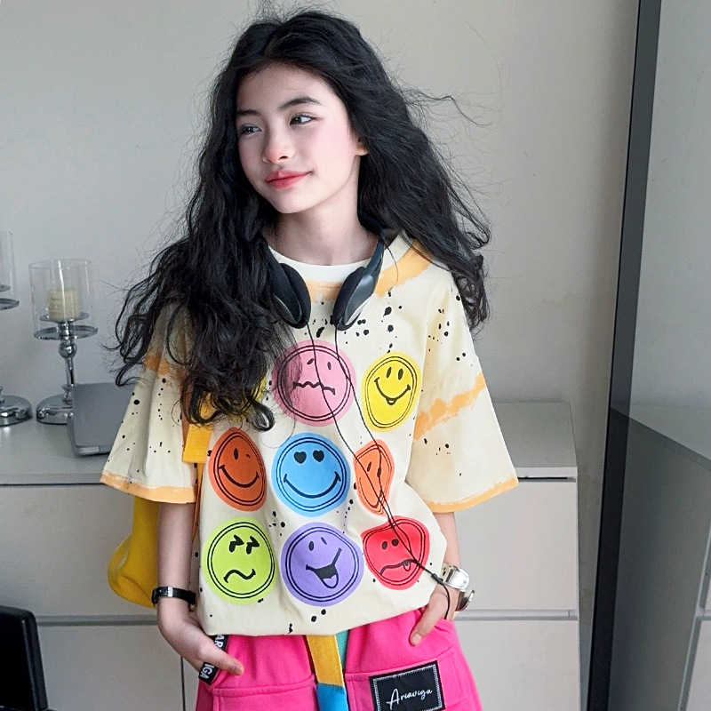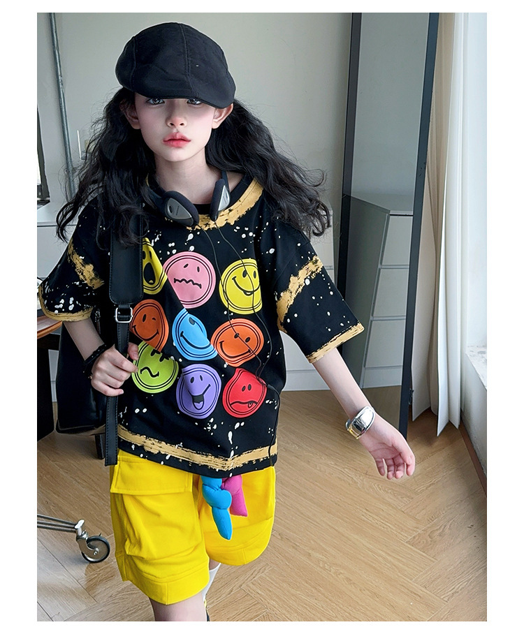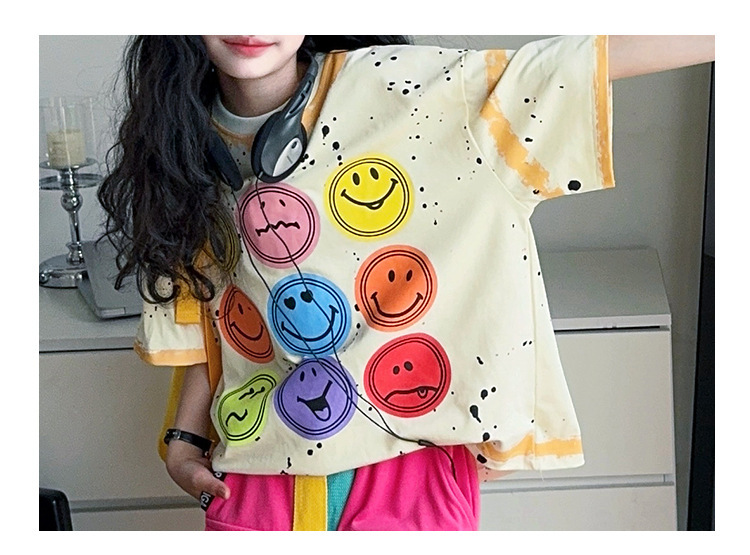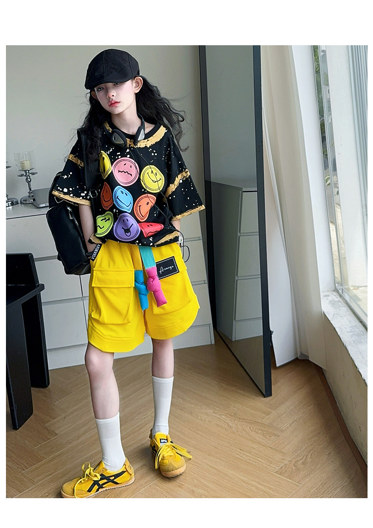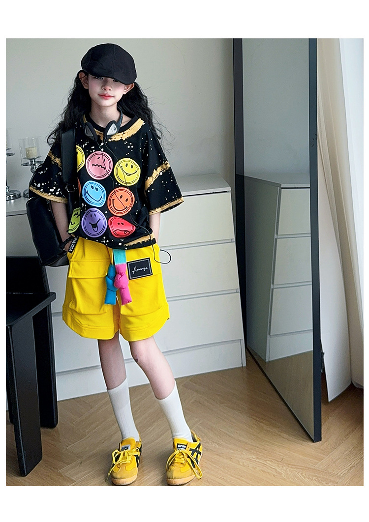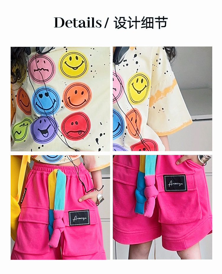 여자 여름 2025 새로운 유행 느슨한 캐주얼 반팔 티셔츠 도파민 착용 반바지 정장 유행스토어 가기