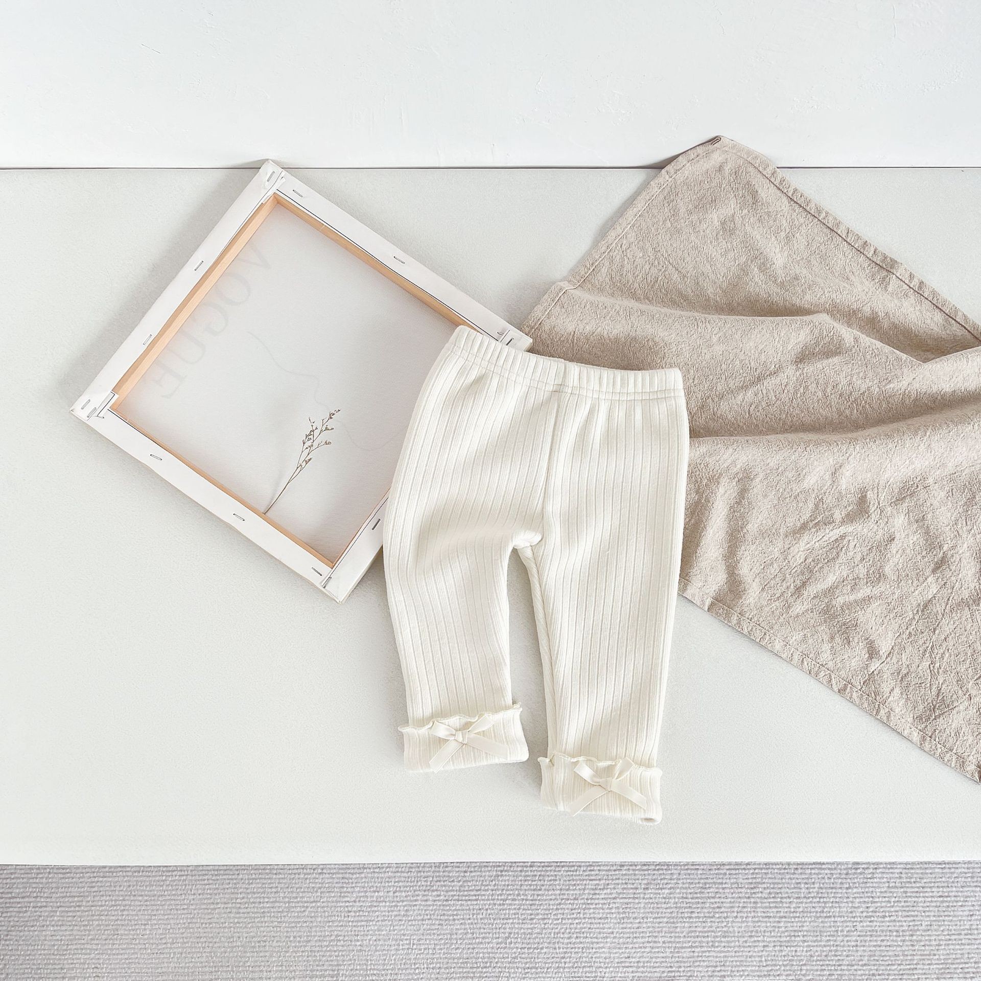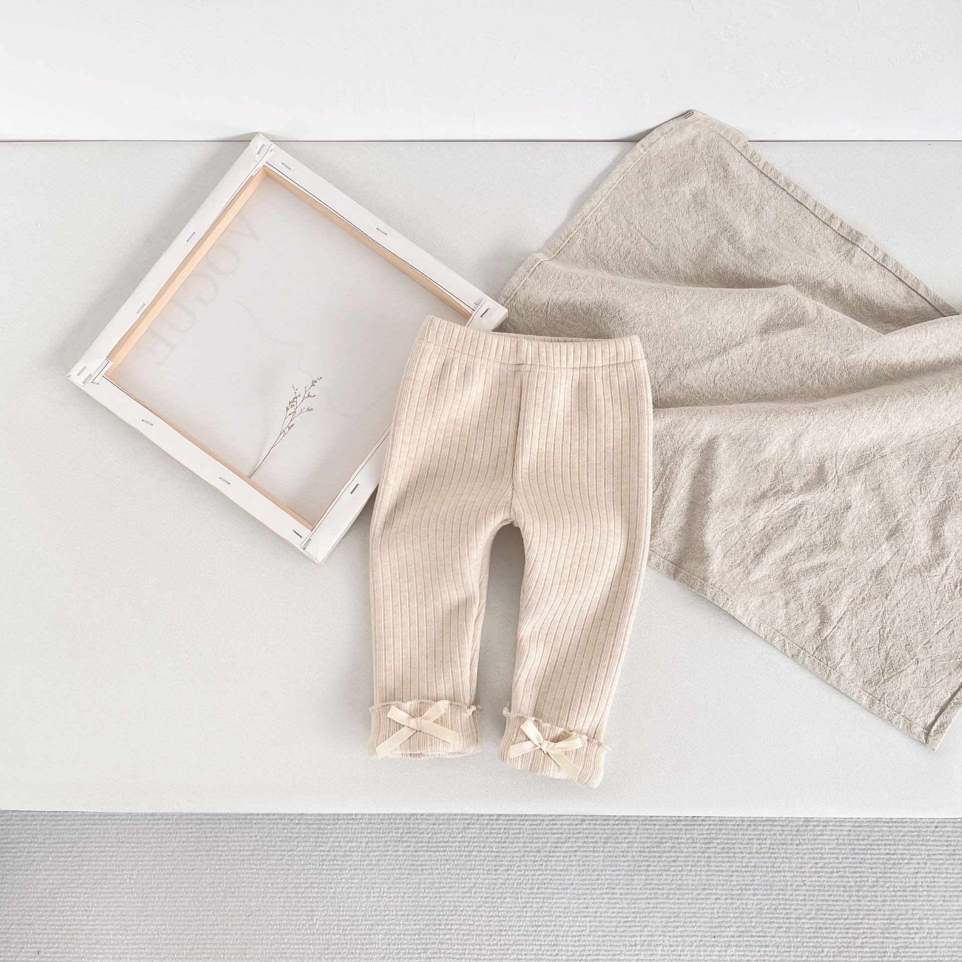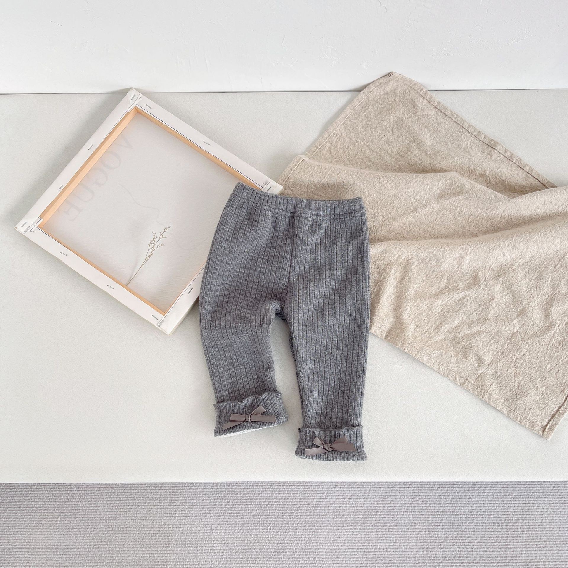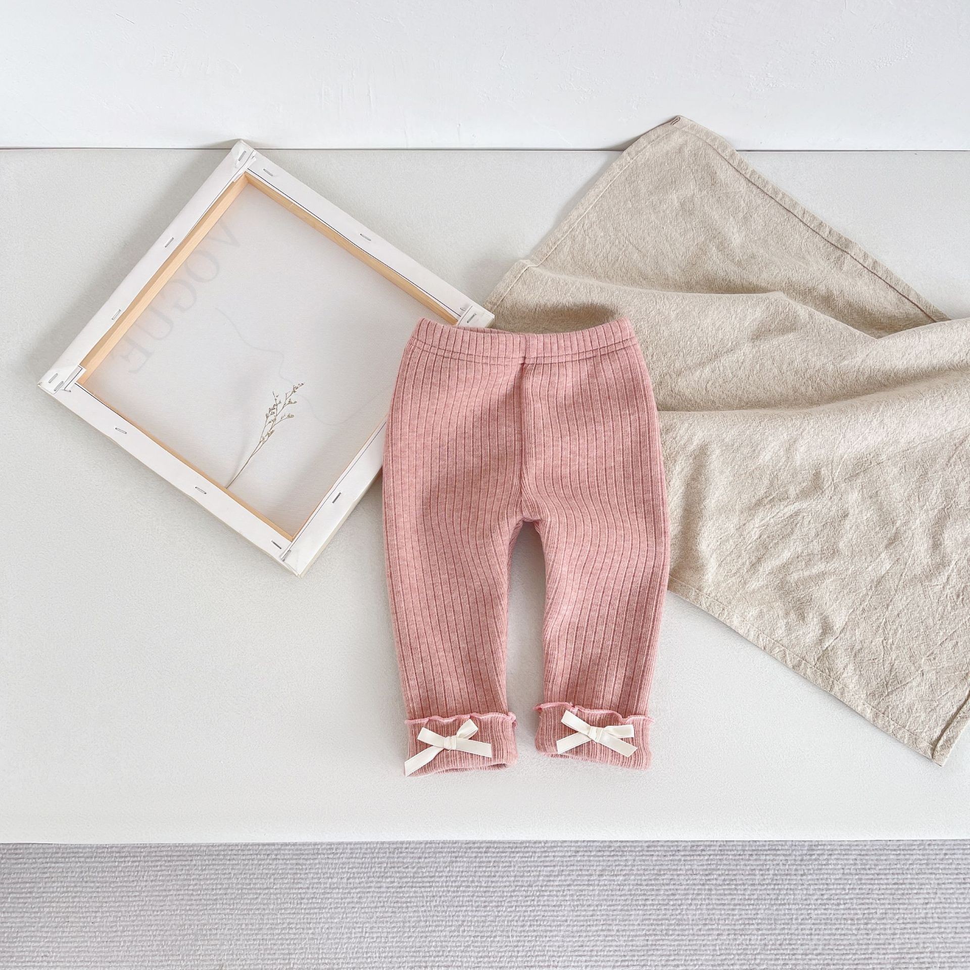 2025 새로운 가을 의류 레깅스 한국 스타일 달콤하고 다재다능한 스타일 1-3 세 아기 소녀 니트 핏 스트립 캐주얼 바지