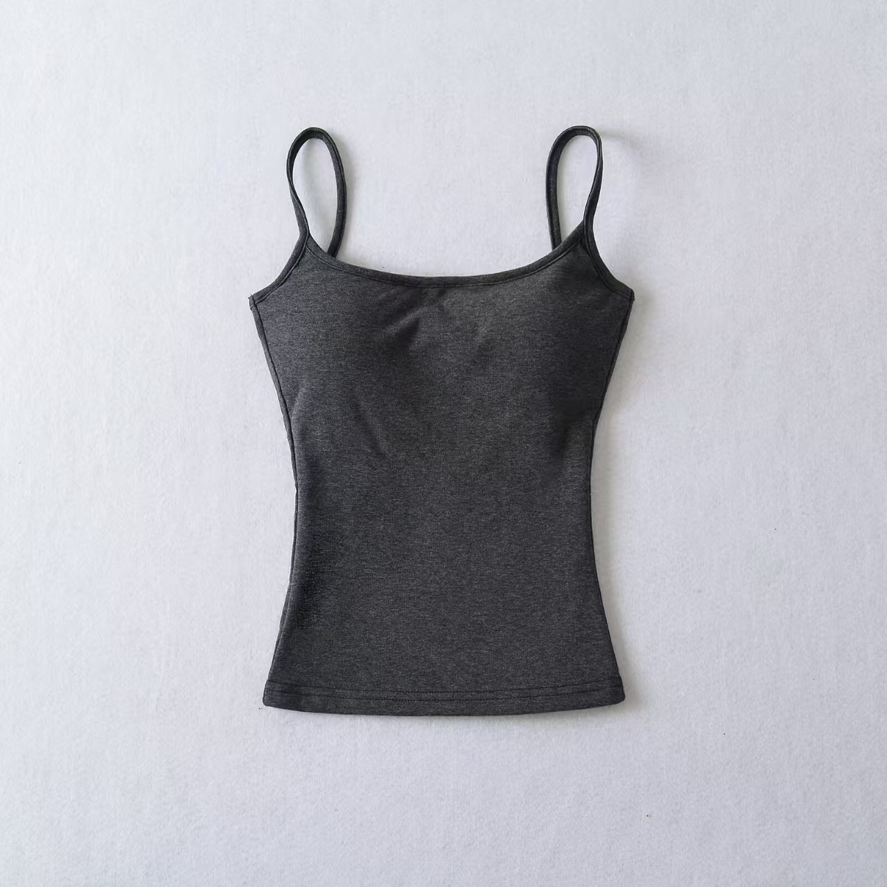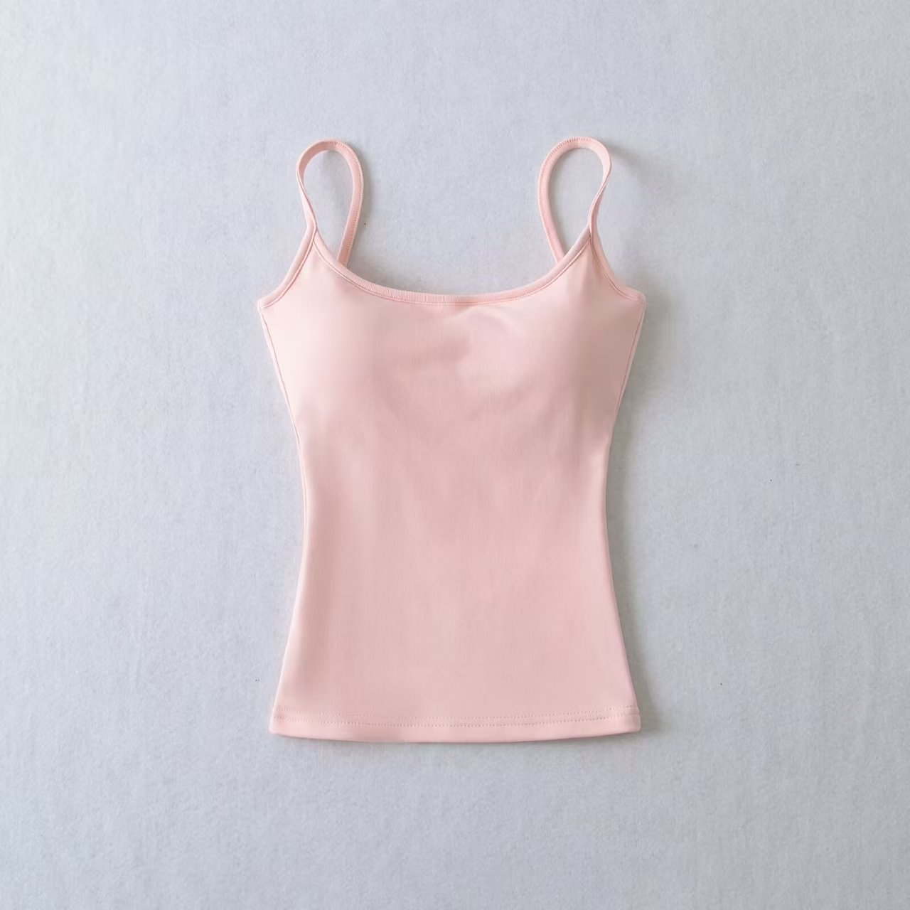 여성용 가슴 패드가 있는 단색 작은 캐미솔, 봄 다용도 아름다운 등 스포츠 요가 조끼 스포츠 조끼
