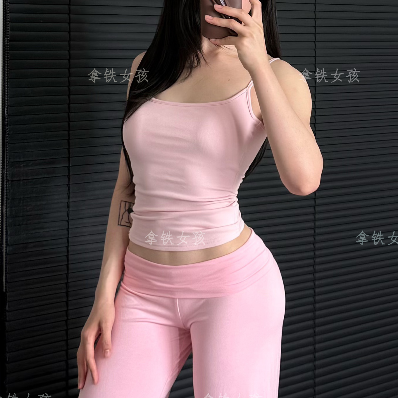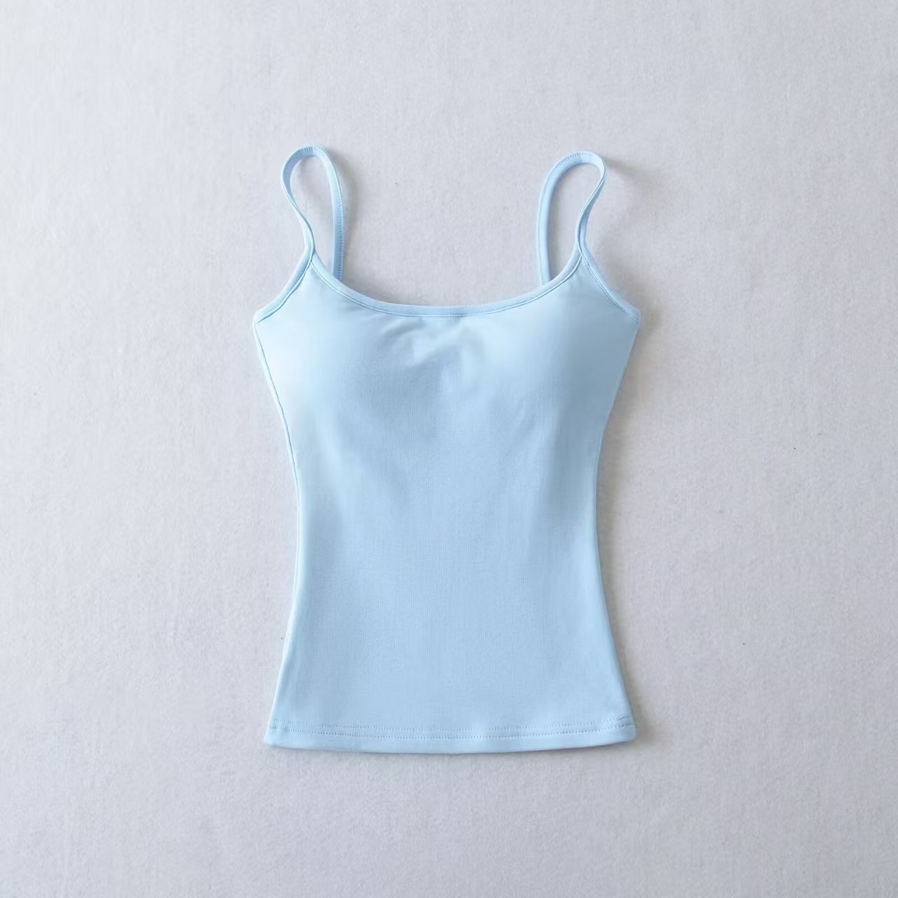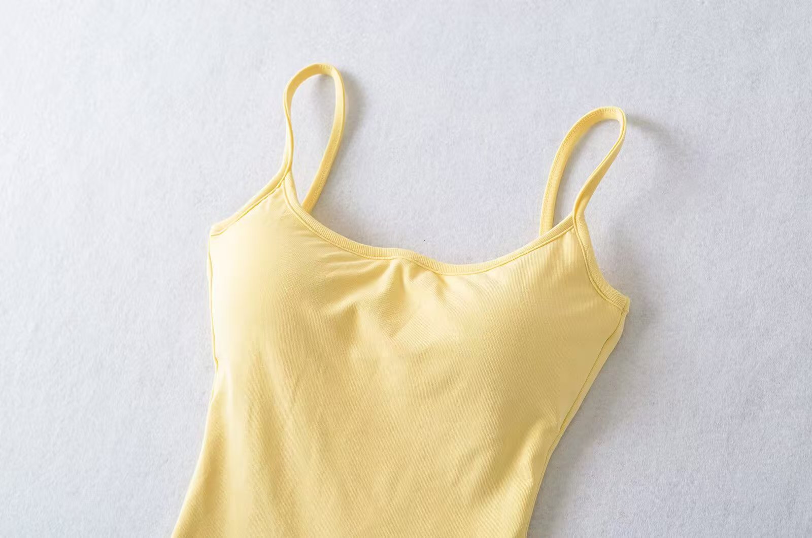 여성용 가슴 패드가 있는 단색 작은 캐미솔, 봄 다용도 아름다운 등 스포츠 요가 조끼 스포츠 조끼스토어 가기