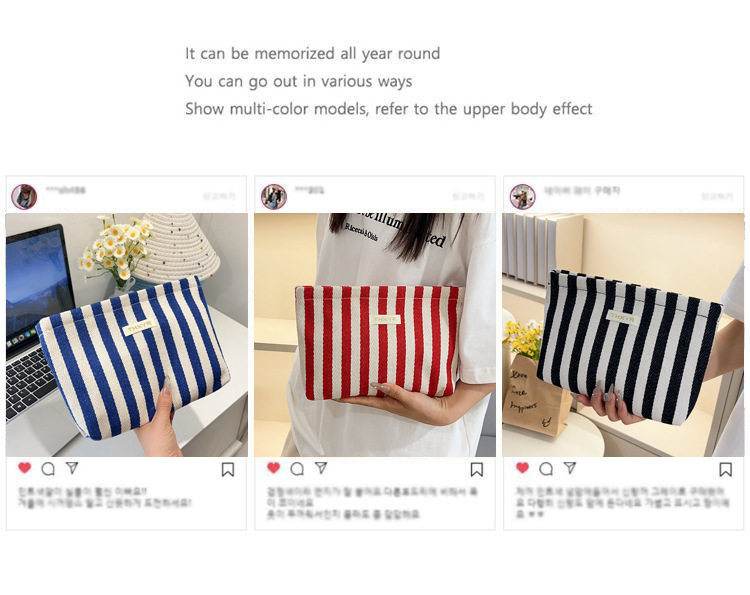 국경을 넘는 새로운 줄무늬 화장품 가방, 스킨 케어 제품 보관 가방, 냅킨 동전 지갑, 세면 용품 가방, 클러치 백, 휴대용 가방스토어 가기