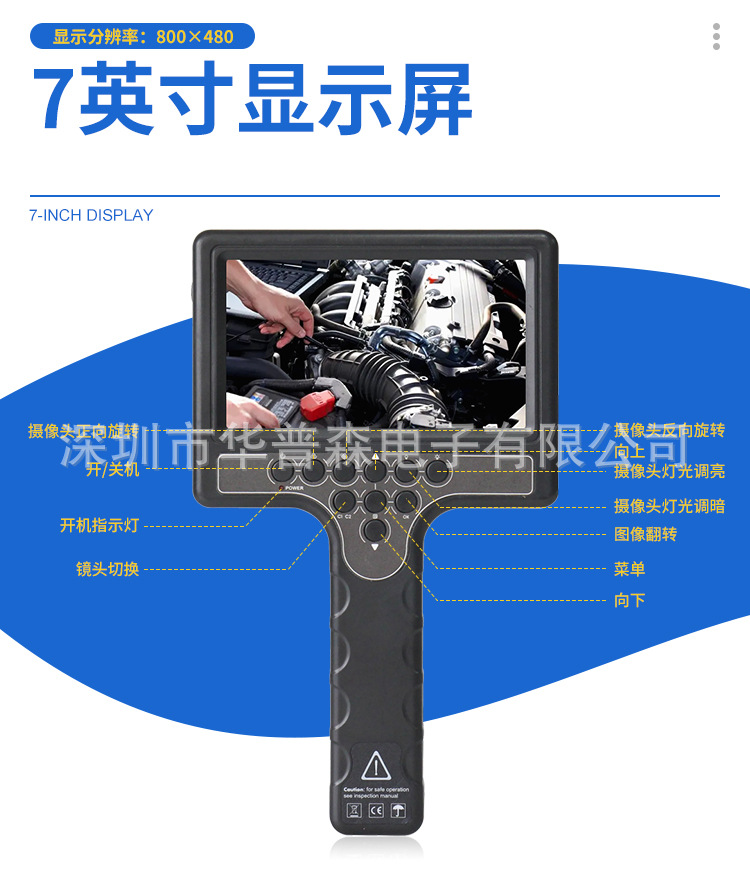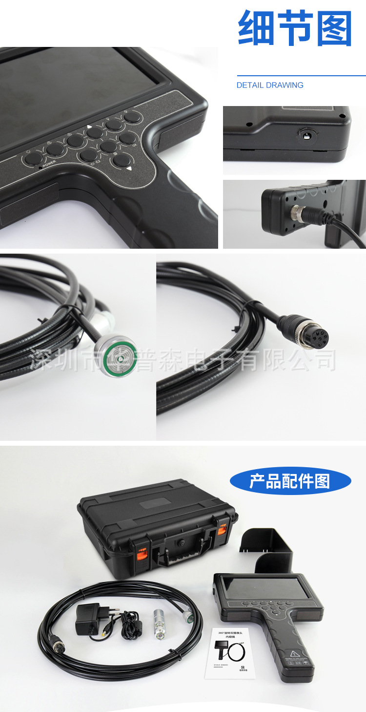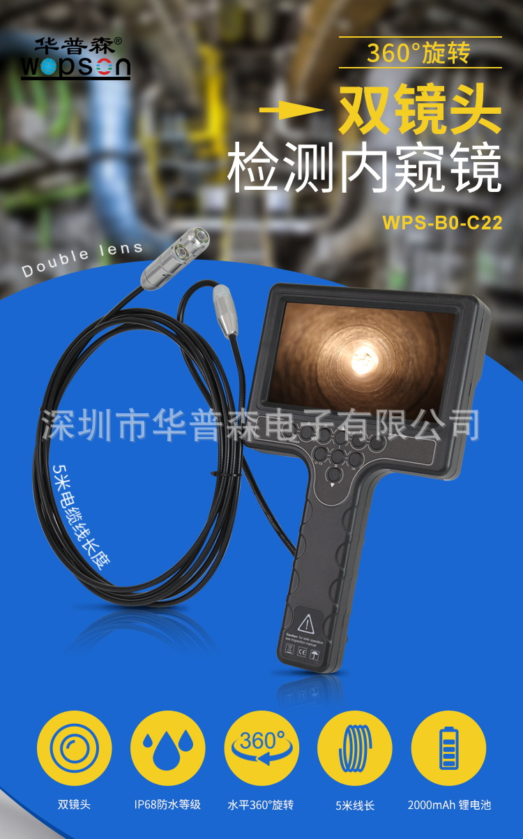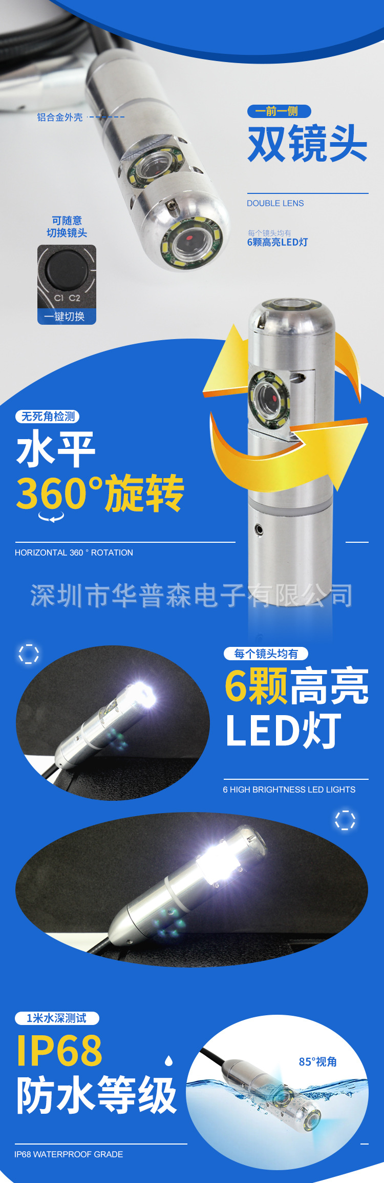 7inch 고화질 720P 파이프 내시경 전면 360도 회전 듀얼 카메라 방수 듀얼 렌즈 비주얼 카메라스토어 가기