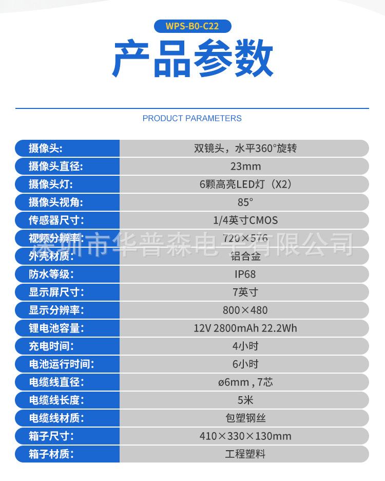 7inch 고화질 720P 파이프 내시경 전면 360도 회전 듀얼 카메라 방수 듀얼 렌즈 비주얼 카메라