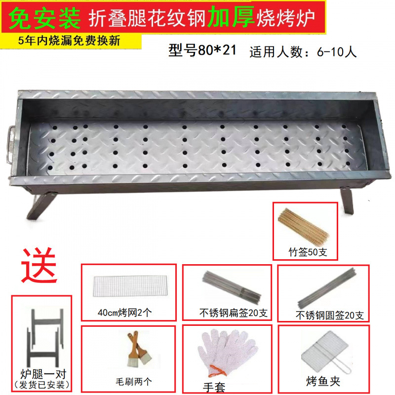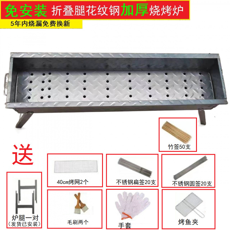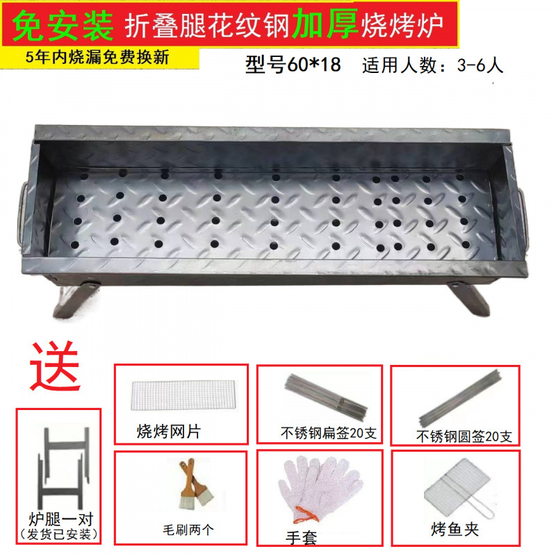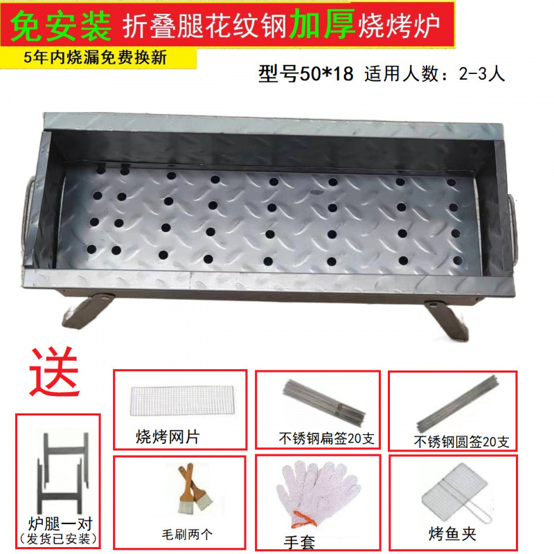 두꺼운 BBQ 스토브 가정용 BBQ 선반 야외 숯 케밥 휴대용 탄소 오븐 패턴 스틸 피크닉