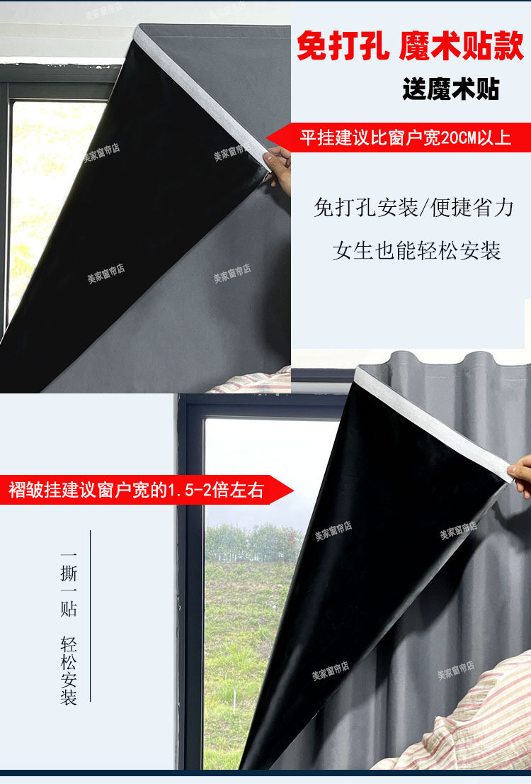펀치 무료 풀 그늘 천 커튼 그늘 단열 침실 발코니 매직 스티커 기숙사 쉬운 교차 설치 테두리