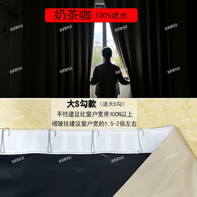 • 밀크티 컬러 [4개의 후크와 주름이 있는 겸용 행잉 심지] 뒷면에 블랙 필름